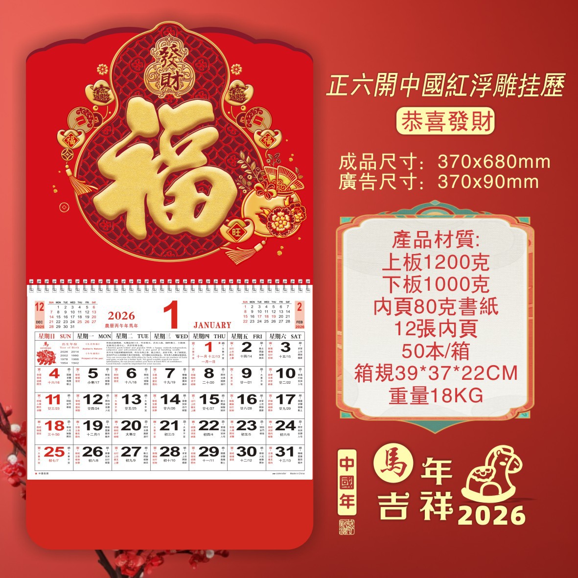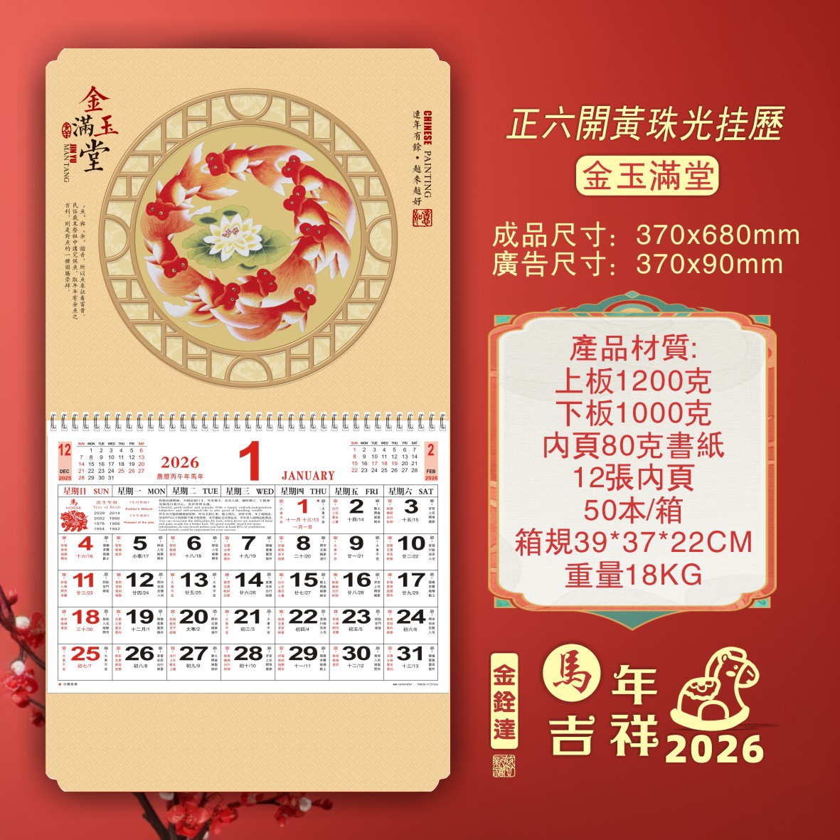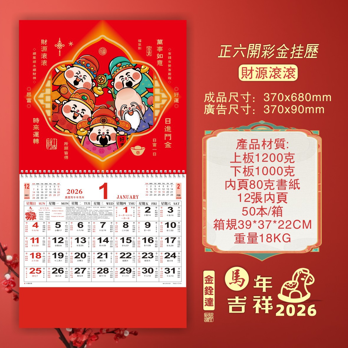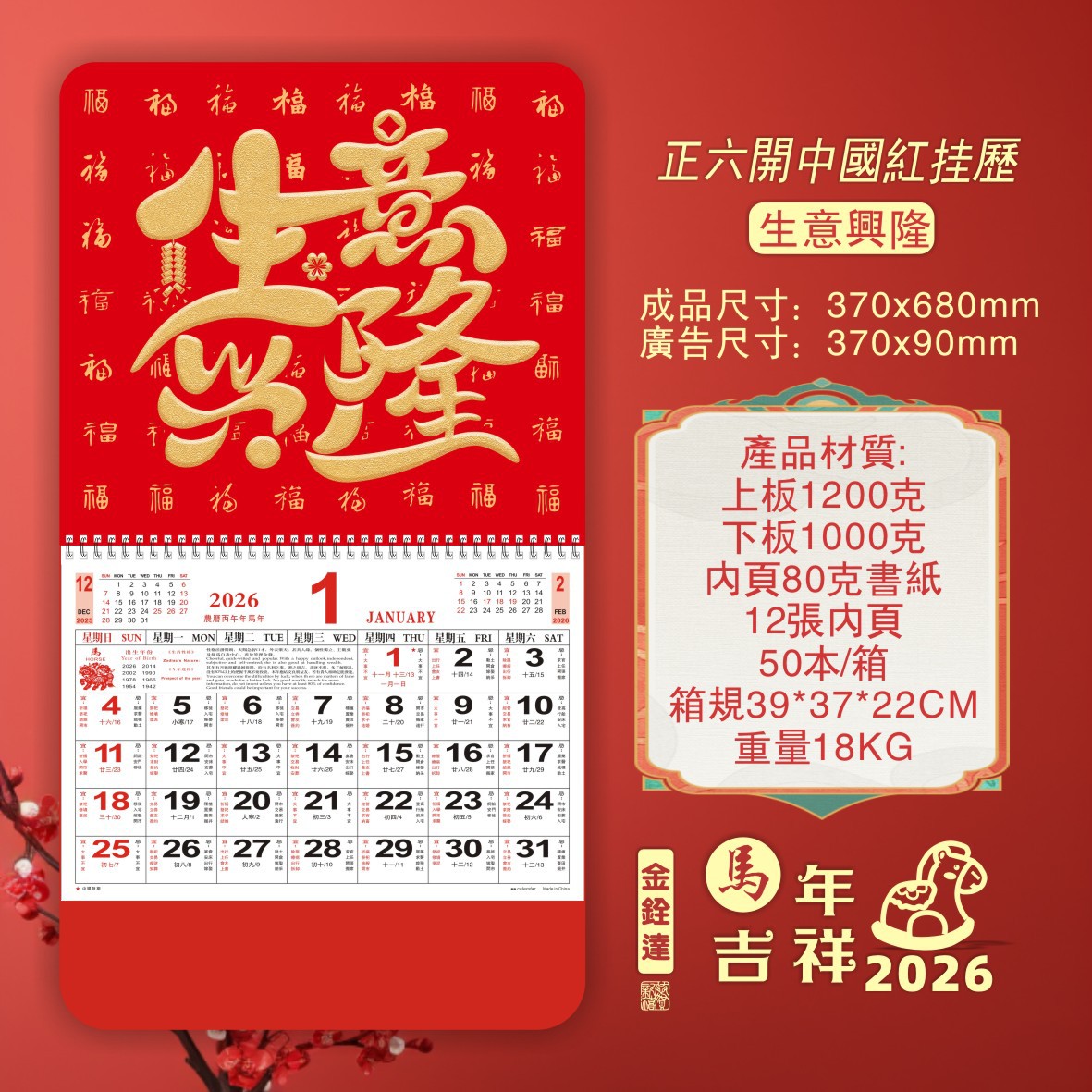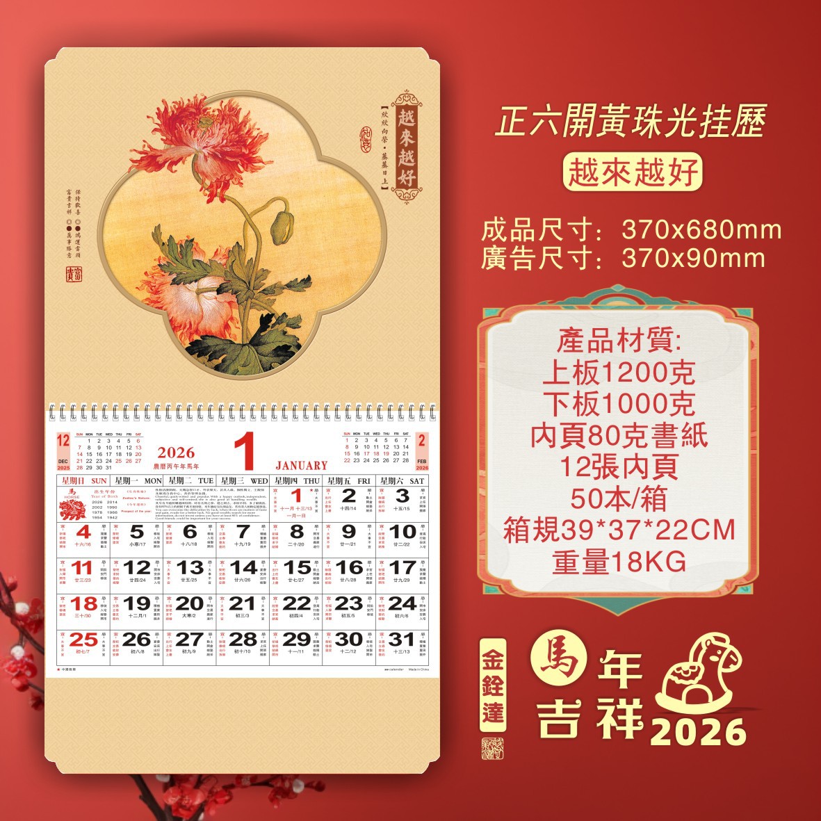 挂历2026马年新款创意英文日历国际美国香港假期挂墙日历跨境月历