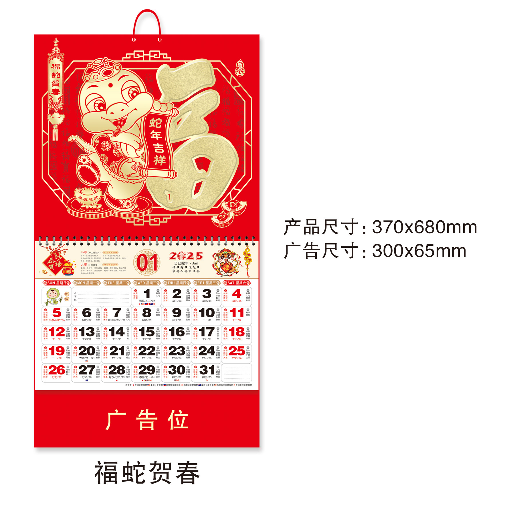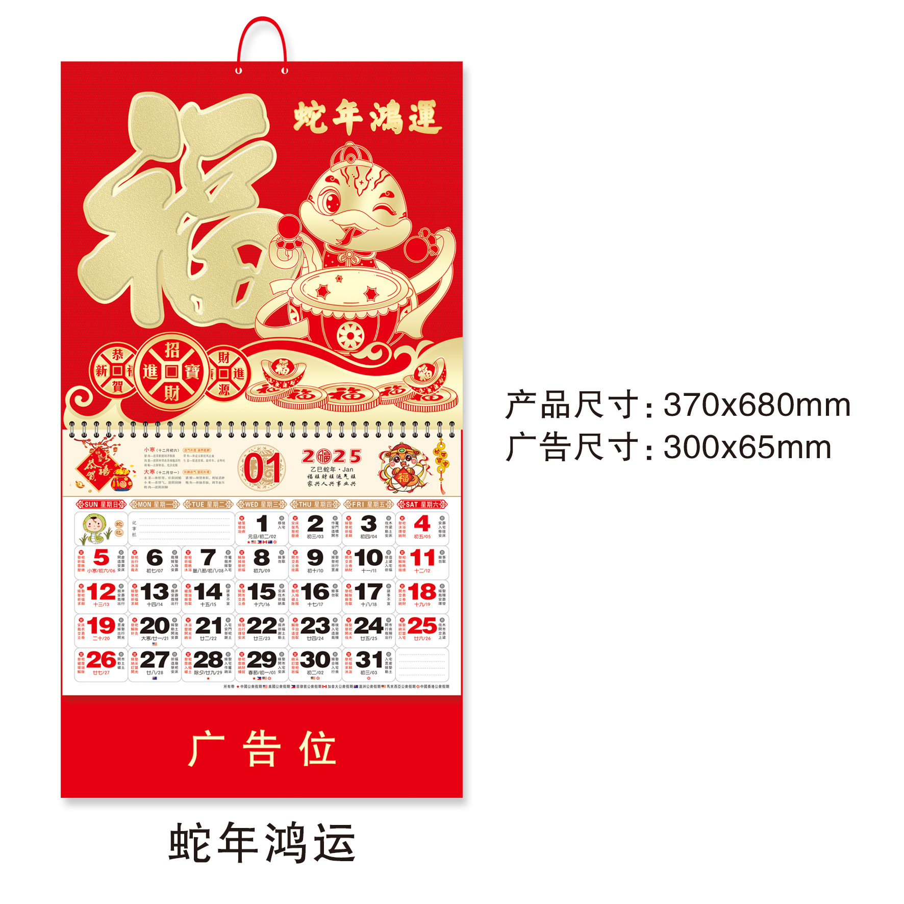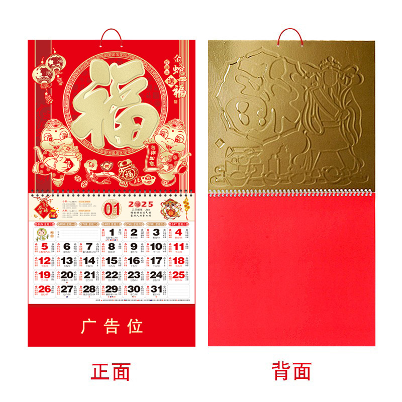 2025年金箔挂历定 福牌挂历月历专版做 蛇年新款广告挂历台历制