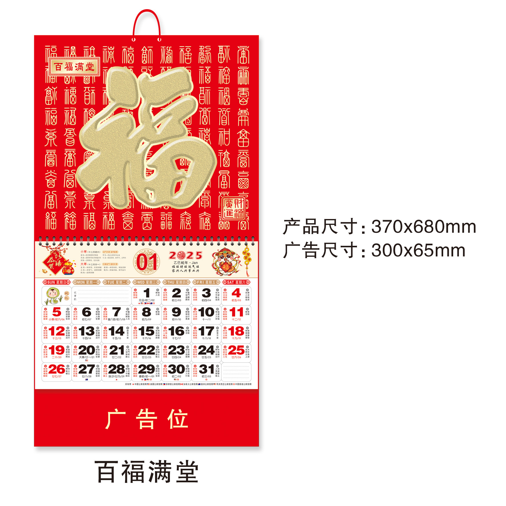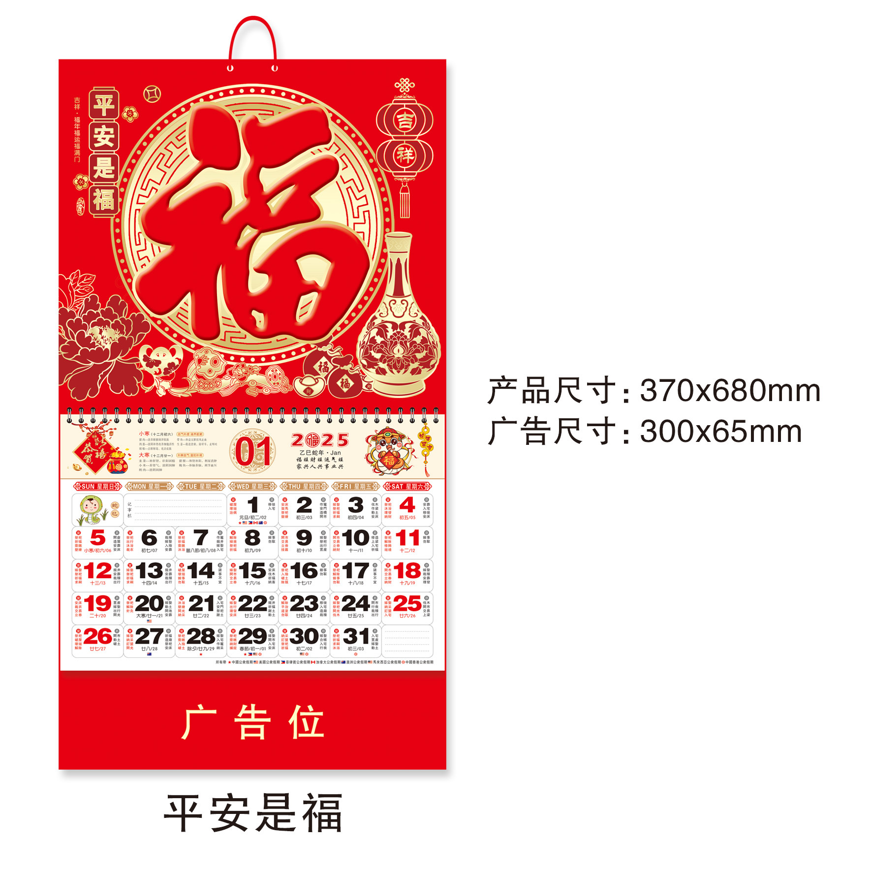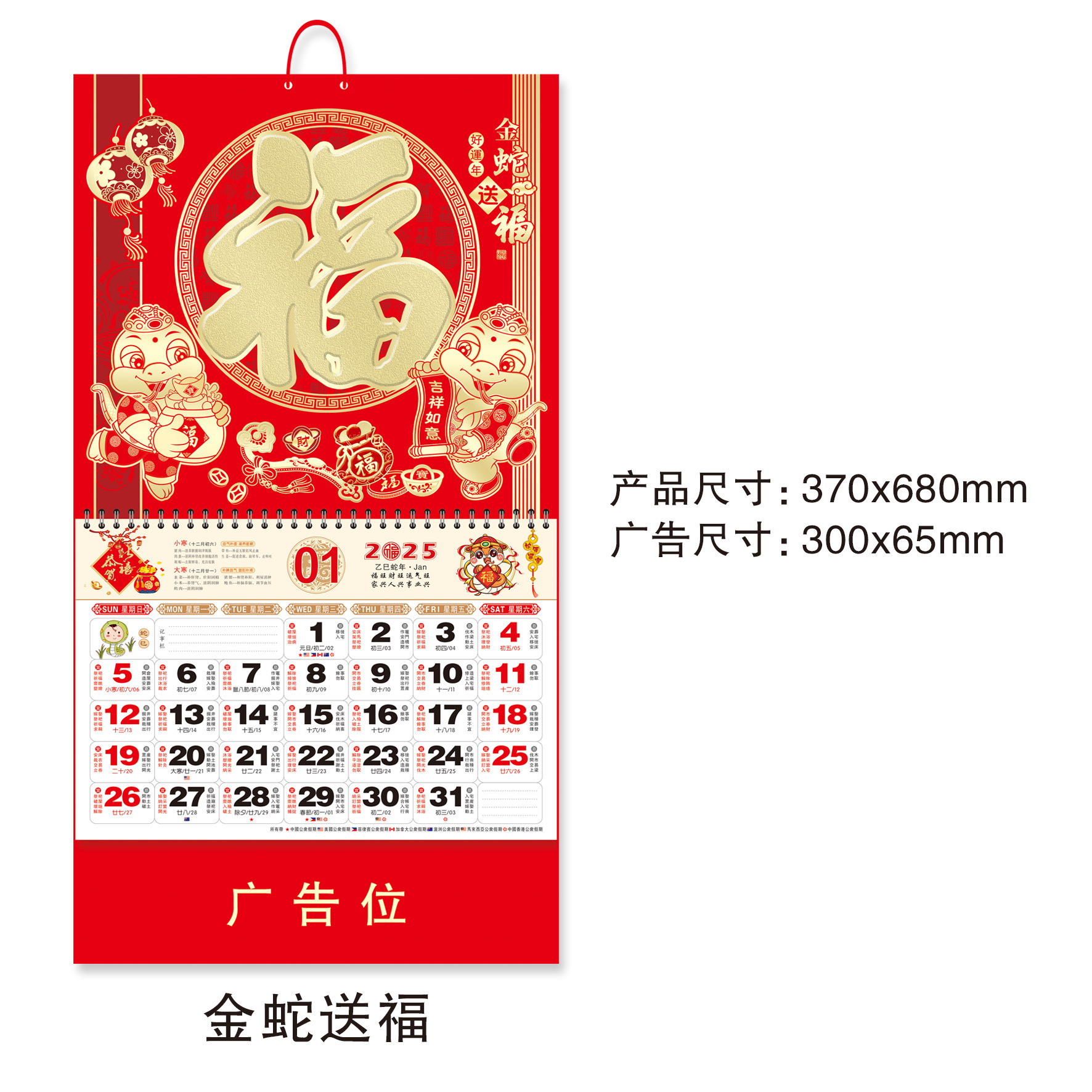 2025年金箔挂历定 福牌挂历月历专版做 蛇年新款广告挂历台历制