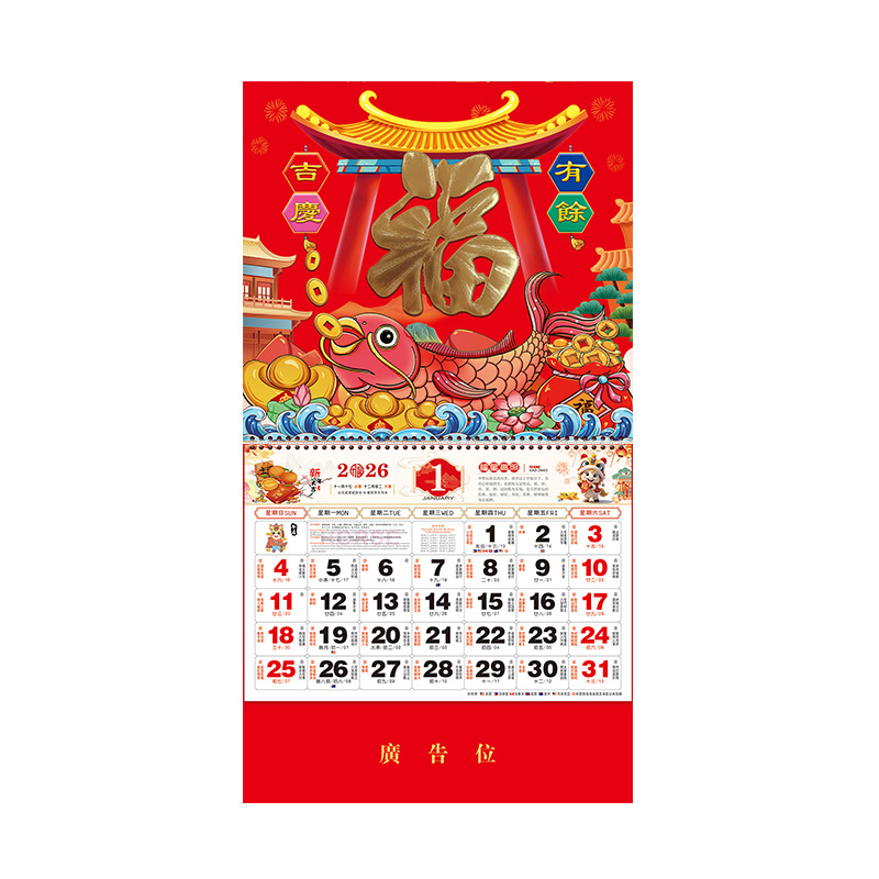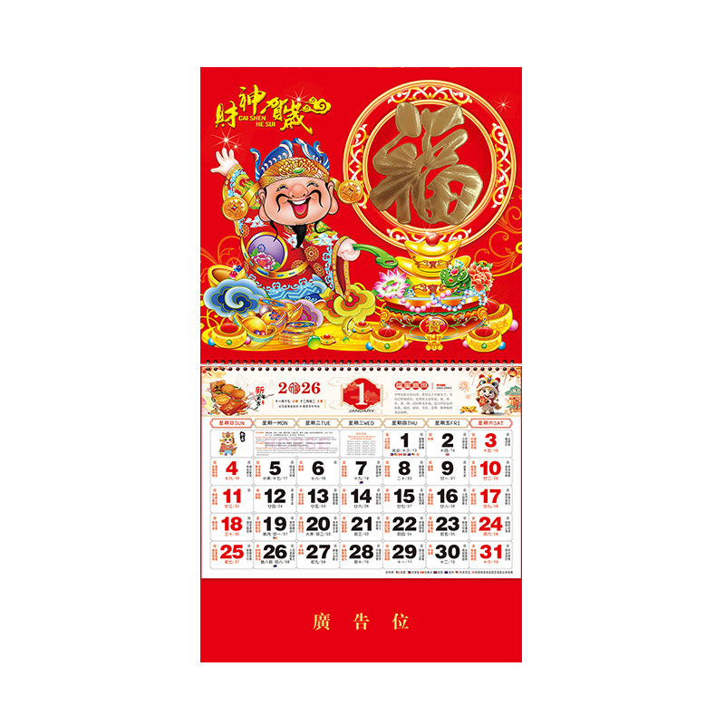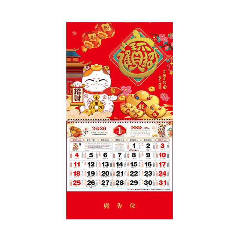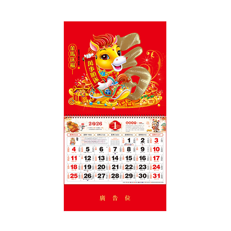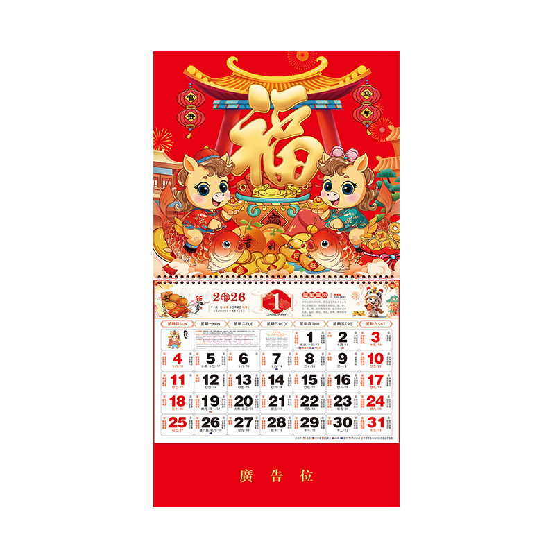 2026挂历马年福字挂历定制正六开中国红通胜福牌订做广告烫金logo