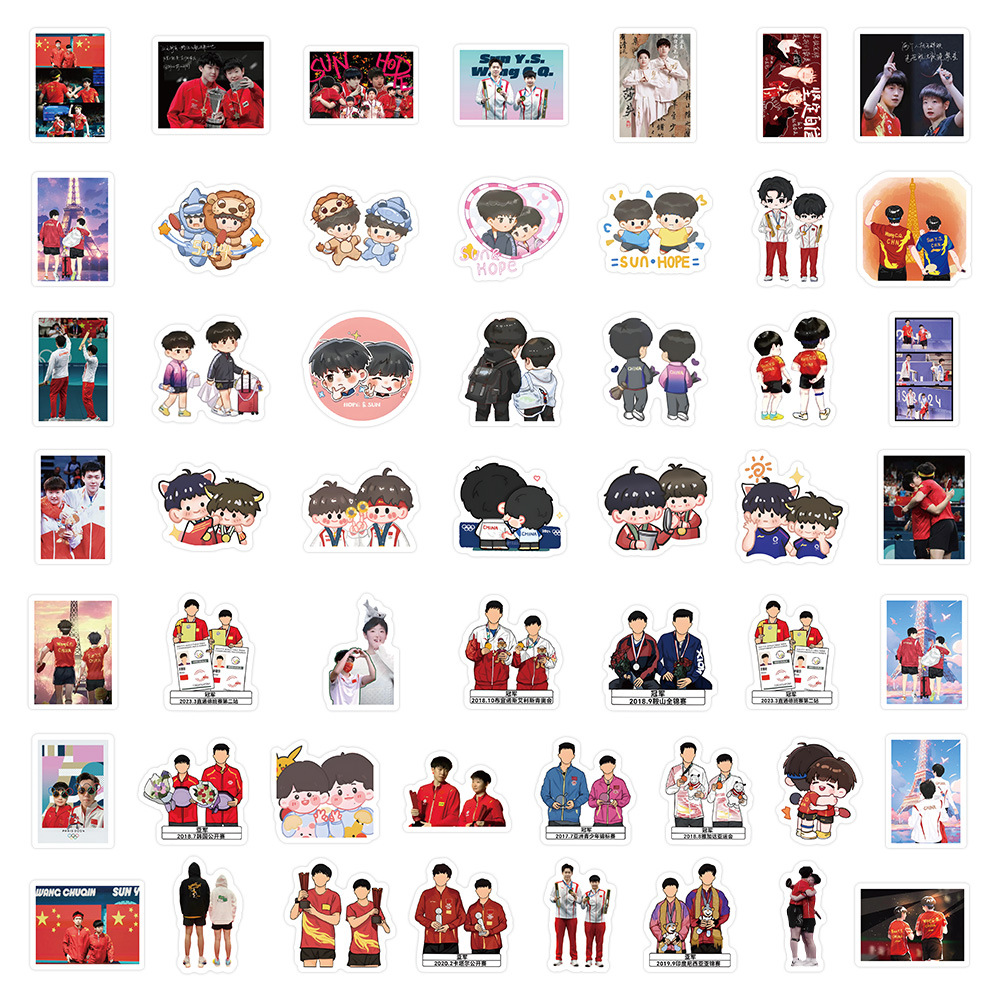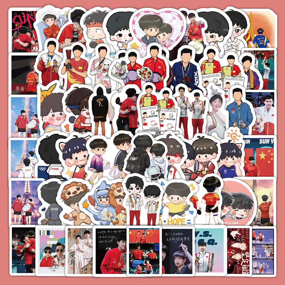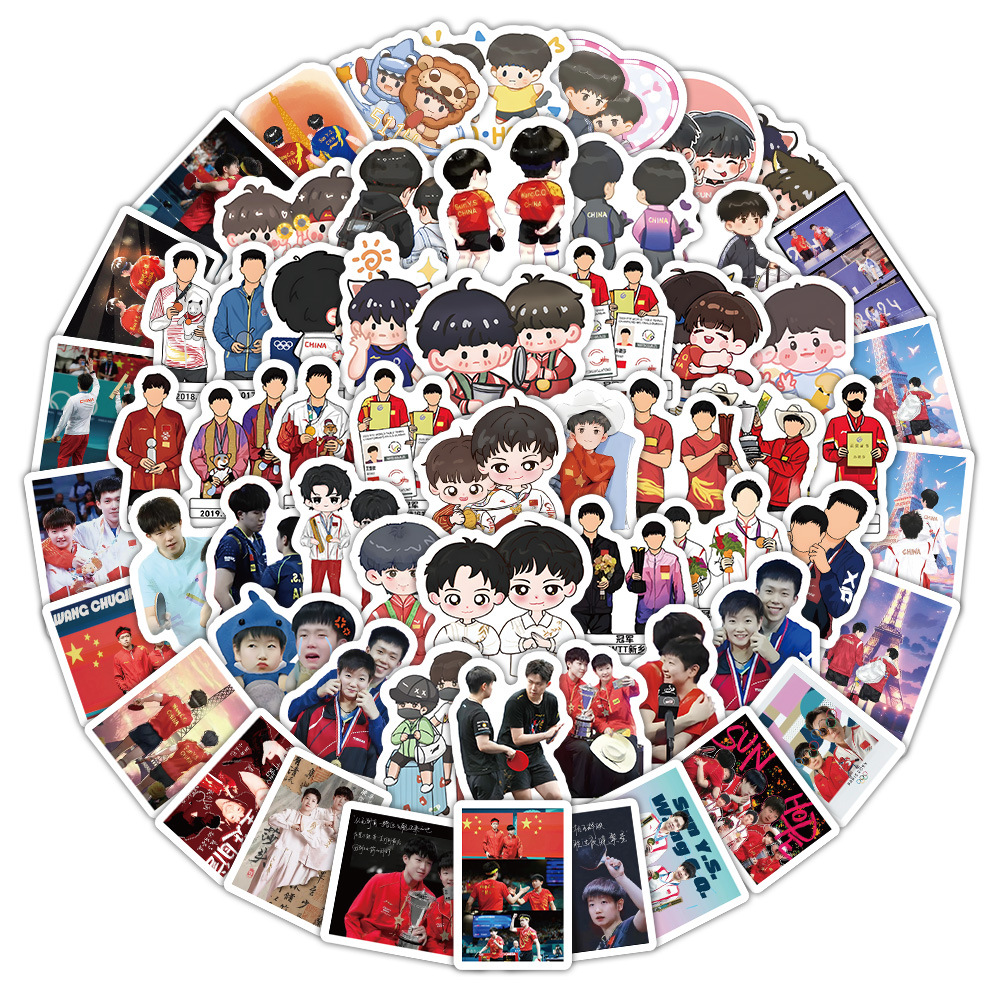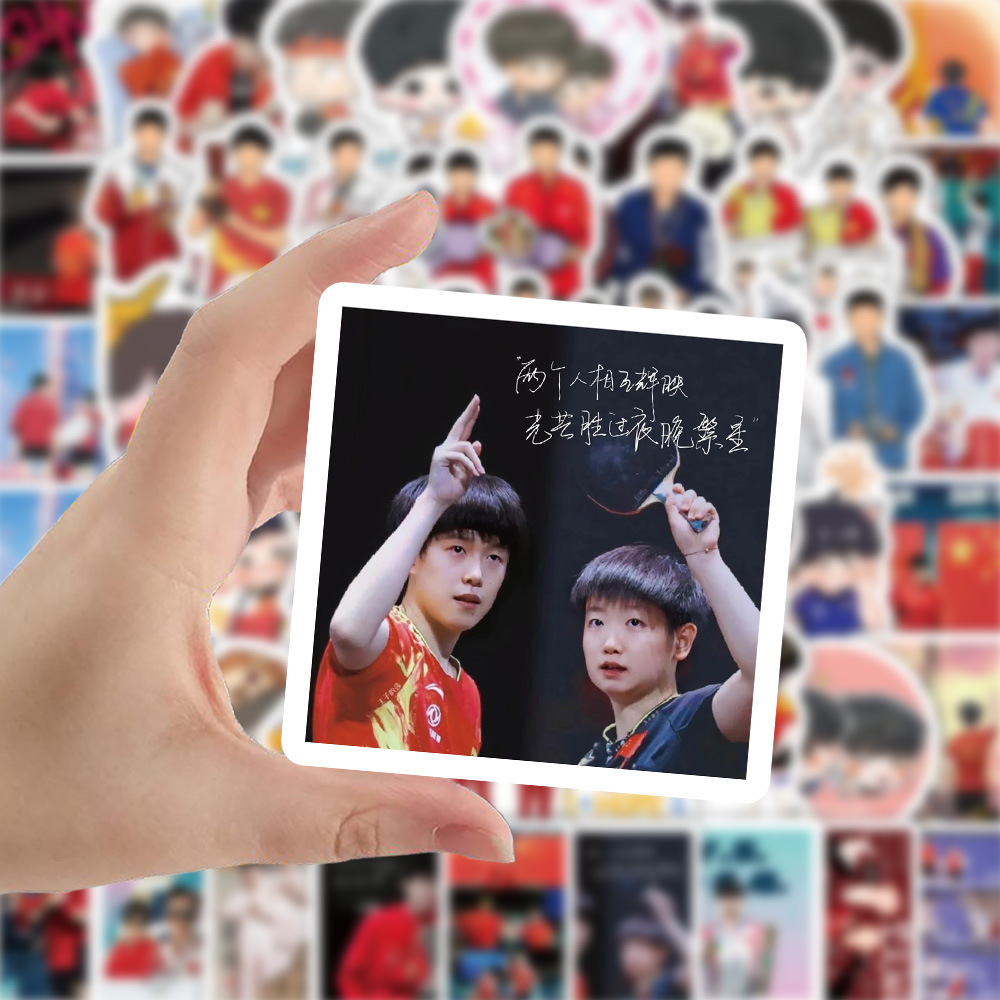 103张新款乒乓球混双冠军孙颖莎王楚钦贴纸手机水杯冰箱装饰贴画