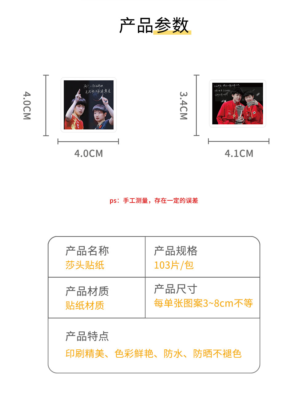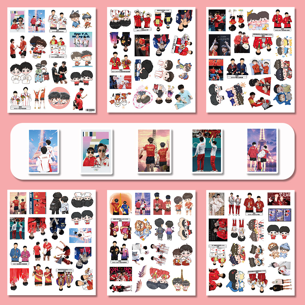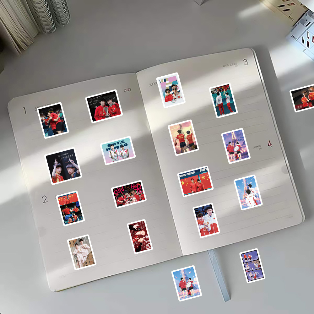 103张新款乒乓球混双冠军孙颖莎王楚钦贴纸手机水杯冰箱装饰贴画