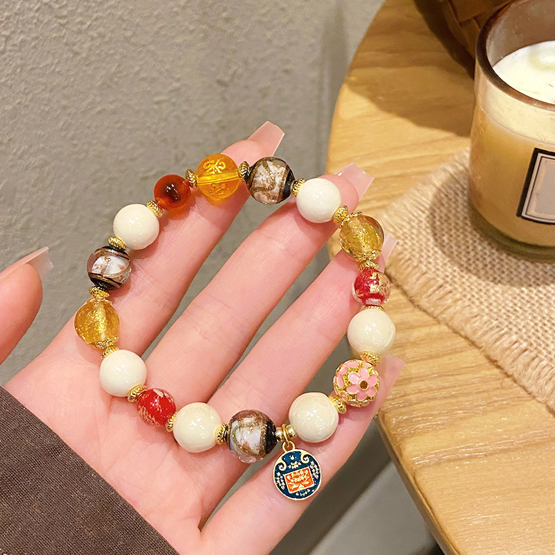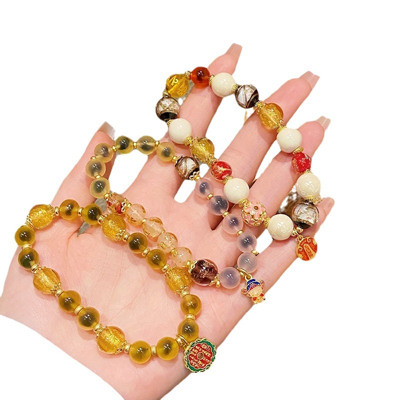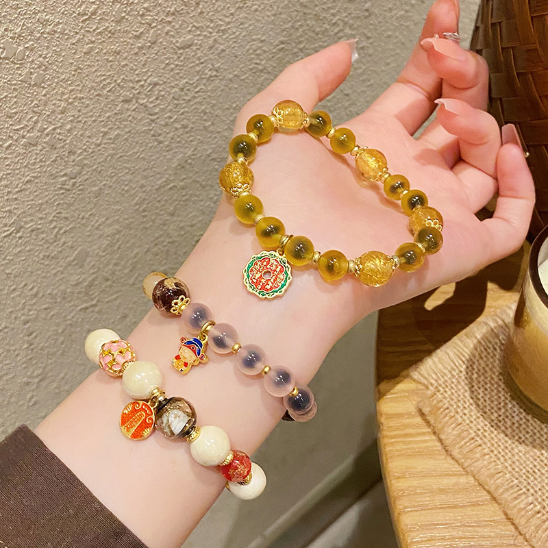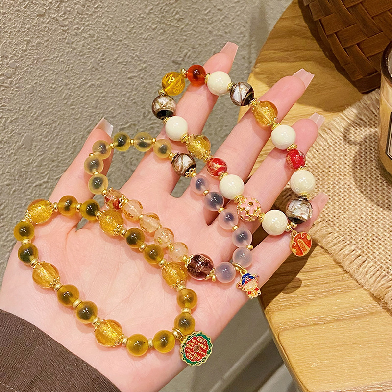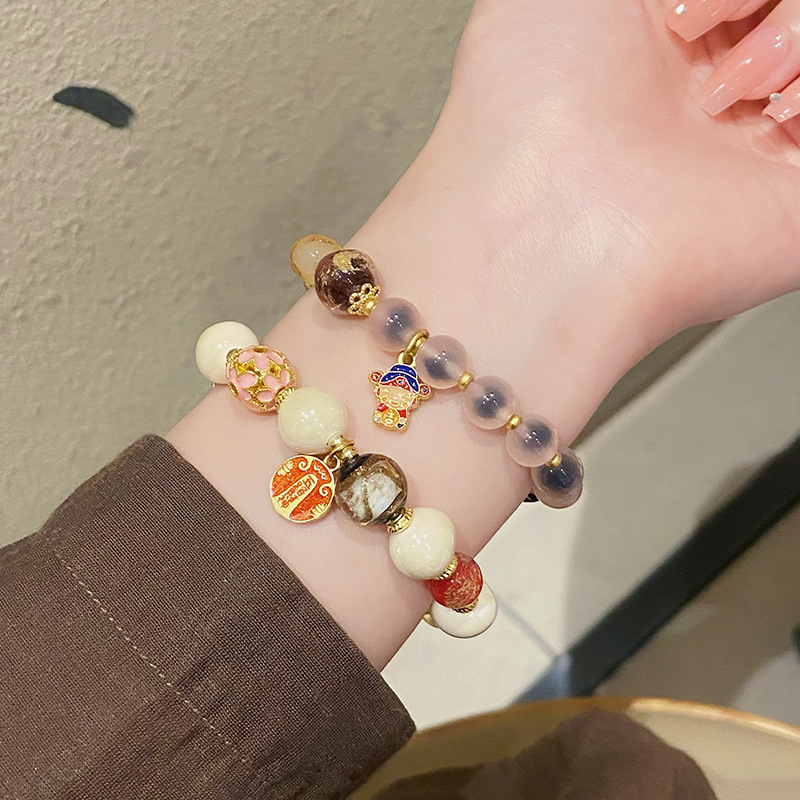 新中式寺庙风同款财神爷手链合集糖心玛瑙香灰琉璃陶瓷设计感手串