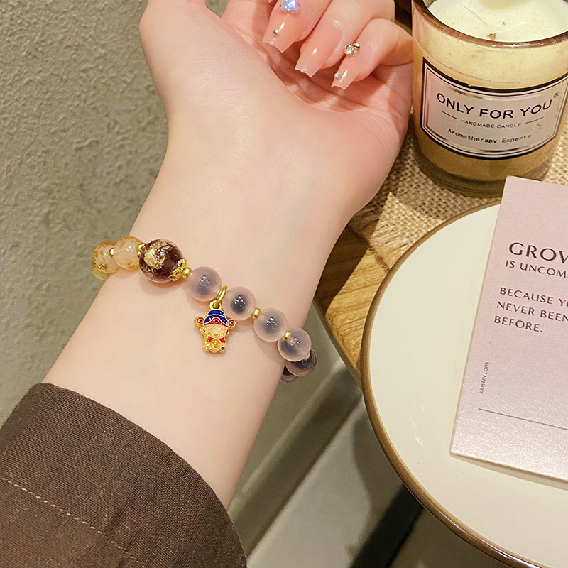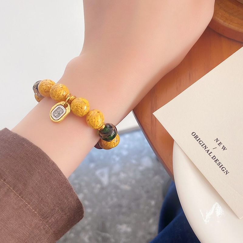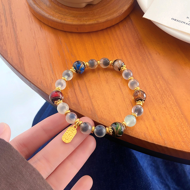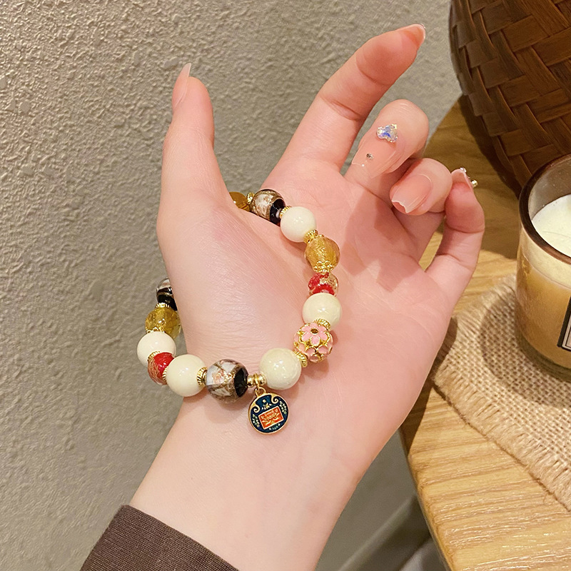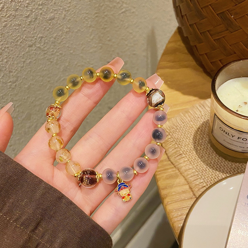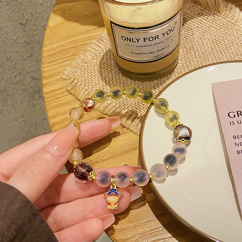 新中式寺庙风同款财神爷手链合集糖心玛瑙香灰琉璃陶瓷设计感手串