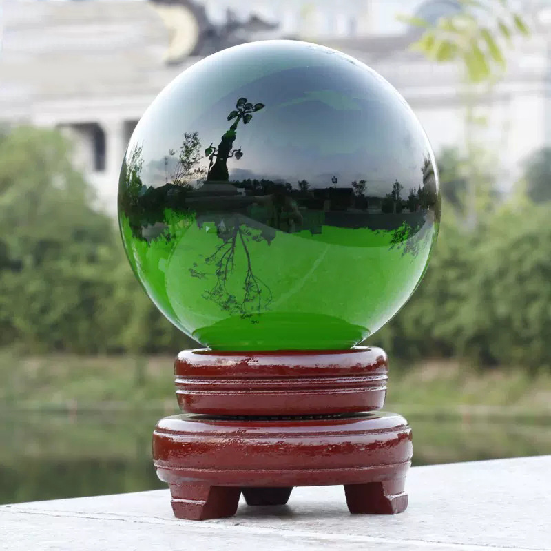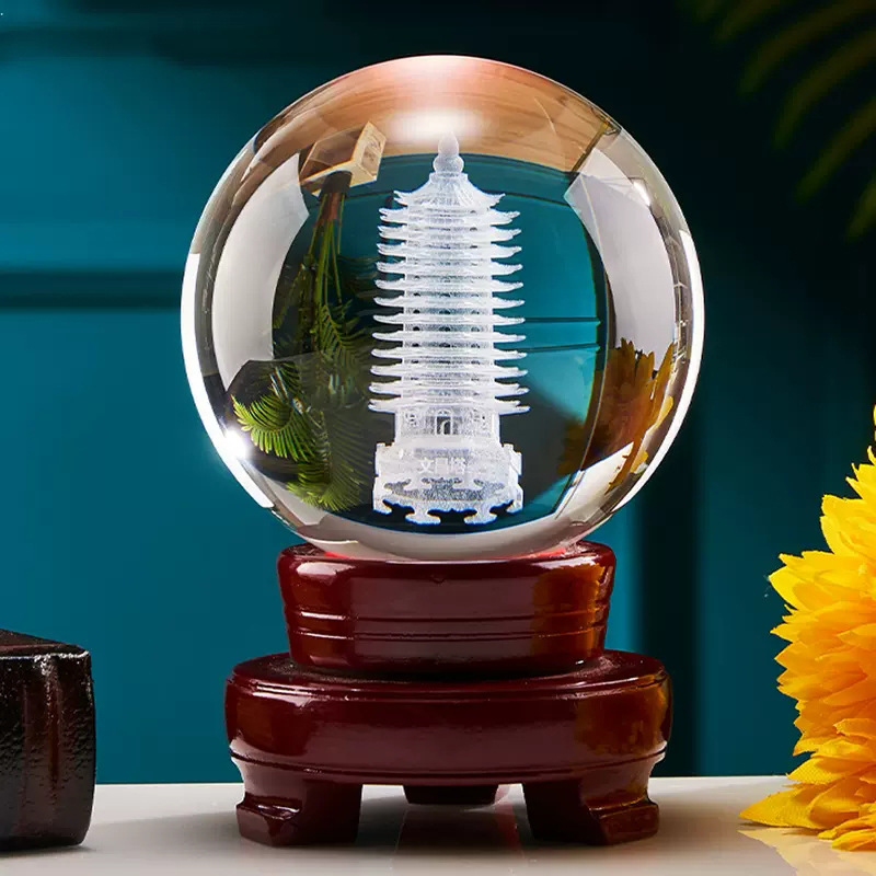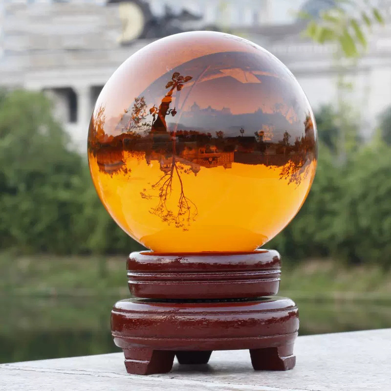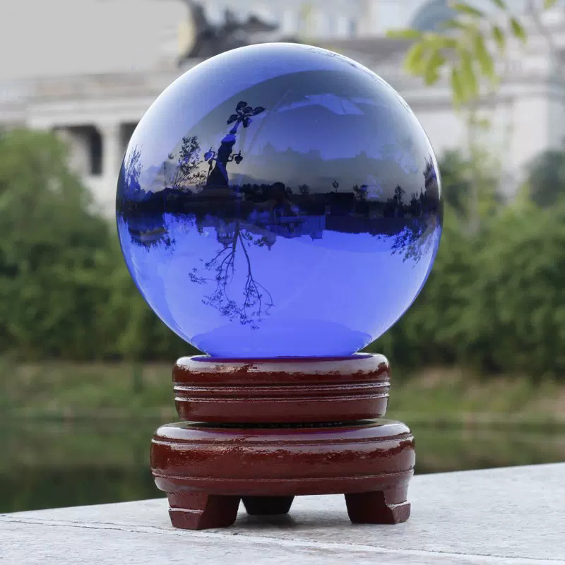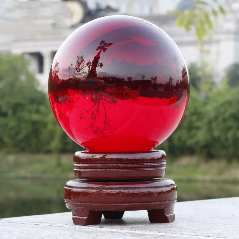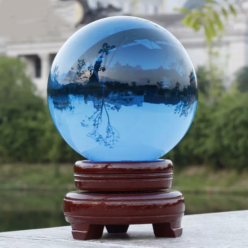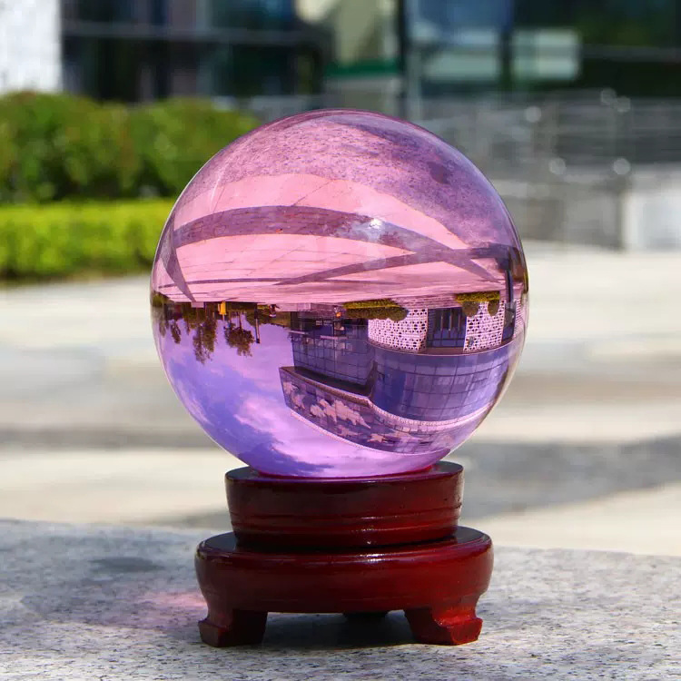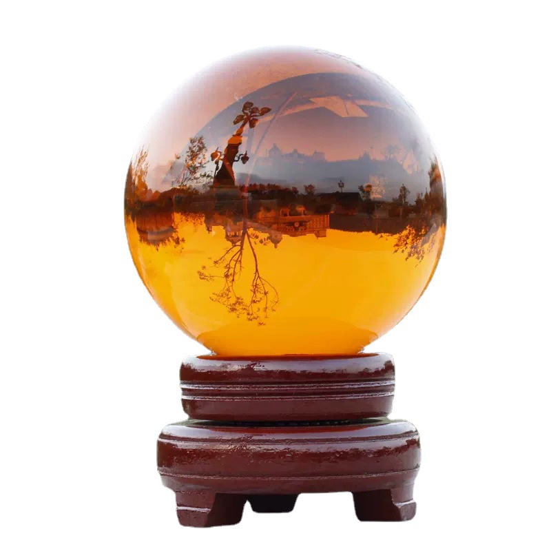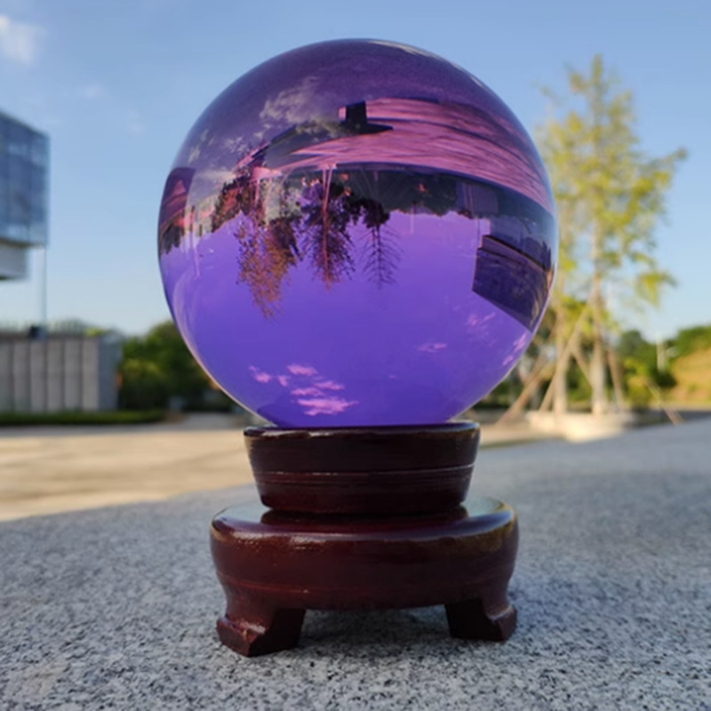 水晶球摆件透明人造彩色紫黄红粉蓝黑色水晶玻璃球装饰品内雕批发
