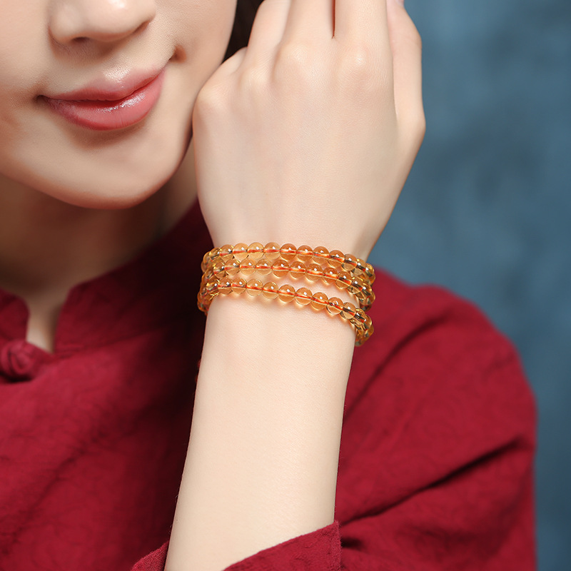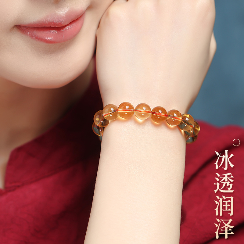天然巴西黄水晶暴力黄圆珠水晶手链批发7a级散珠半成品DIY饰品