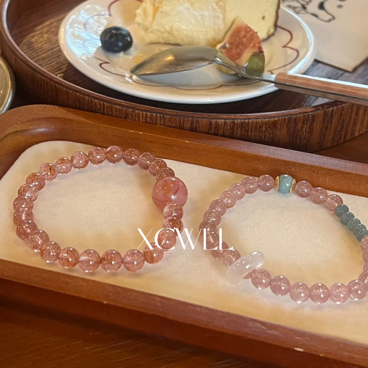 小众精致手串草莓晶高颜值蓝水新中式原创串珠手串七夕礼物学生版