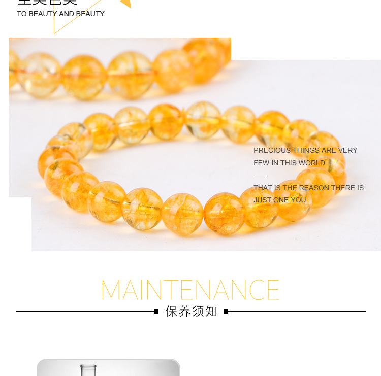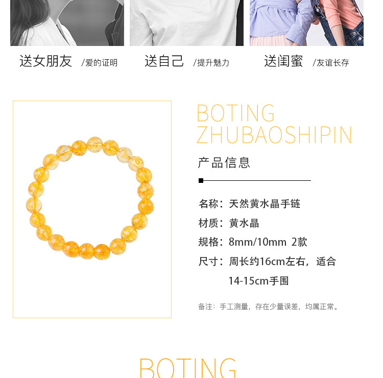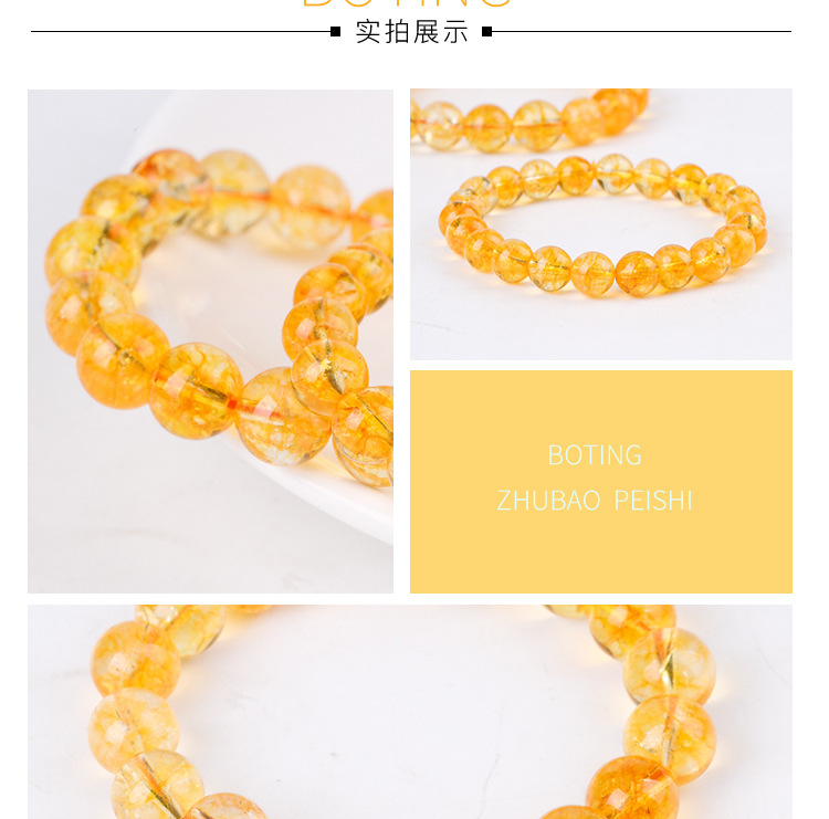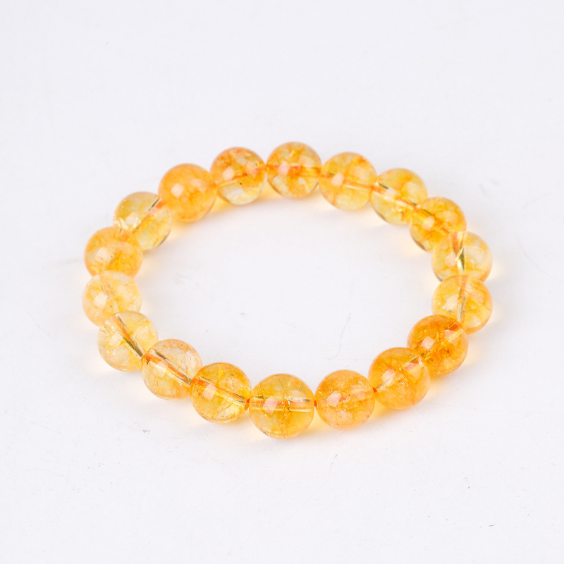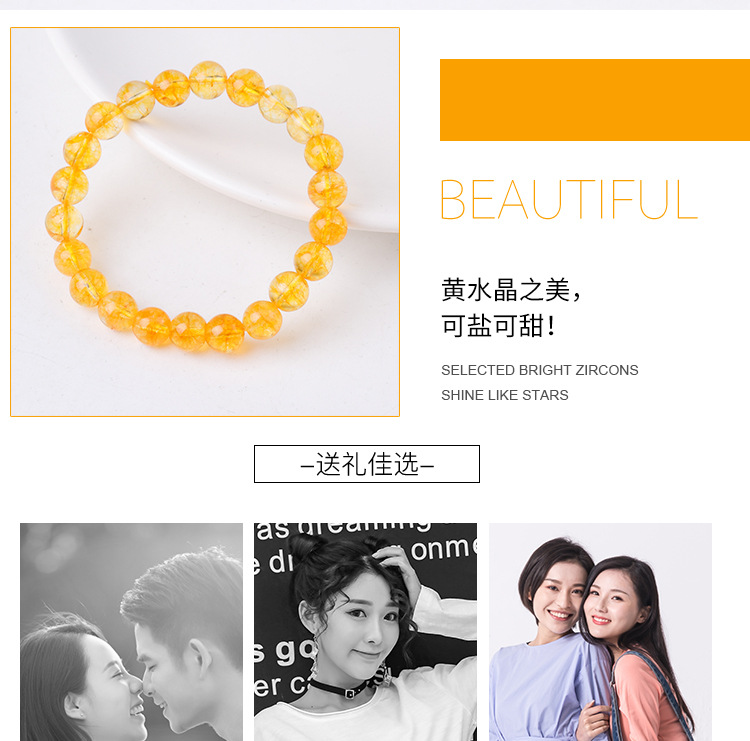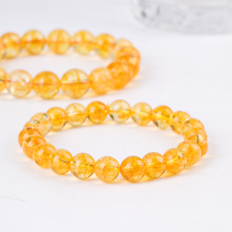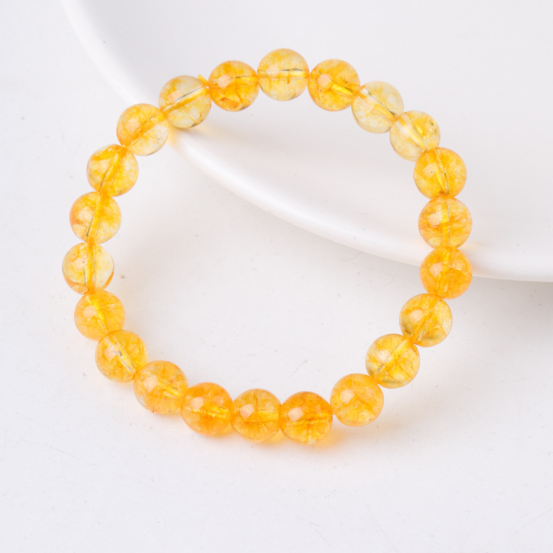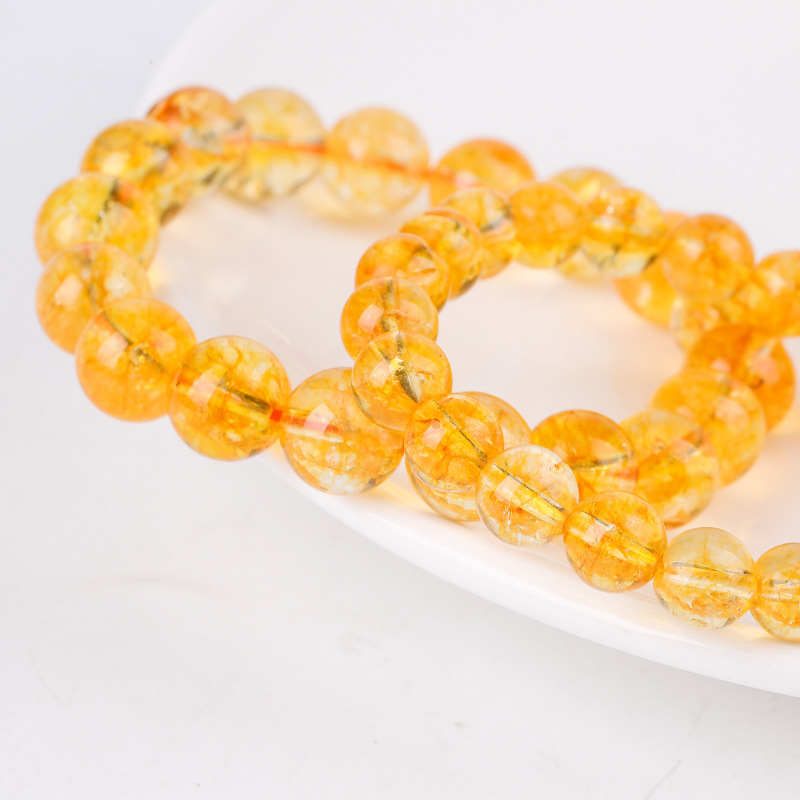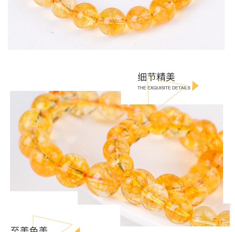 天然黄水晶手串直径8/10mm橘黄圆珠手串男女通用义乌爆款直销批发