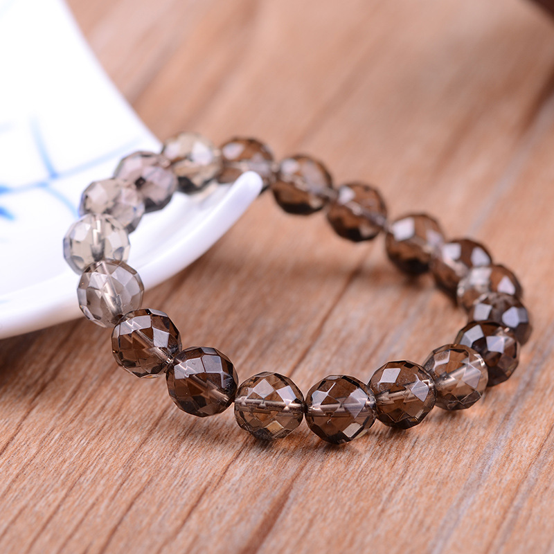 7A级天然茶水晶手链茶晶128面切面手串东海烟晶切面手串厂家批发