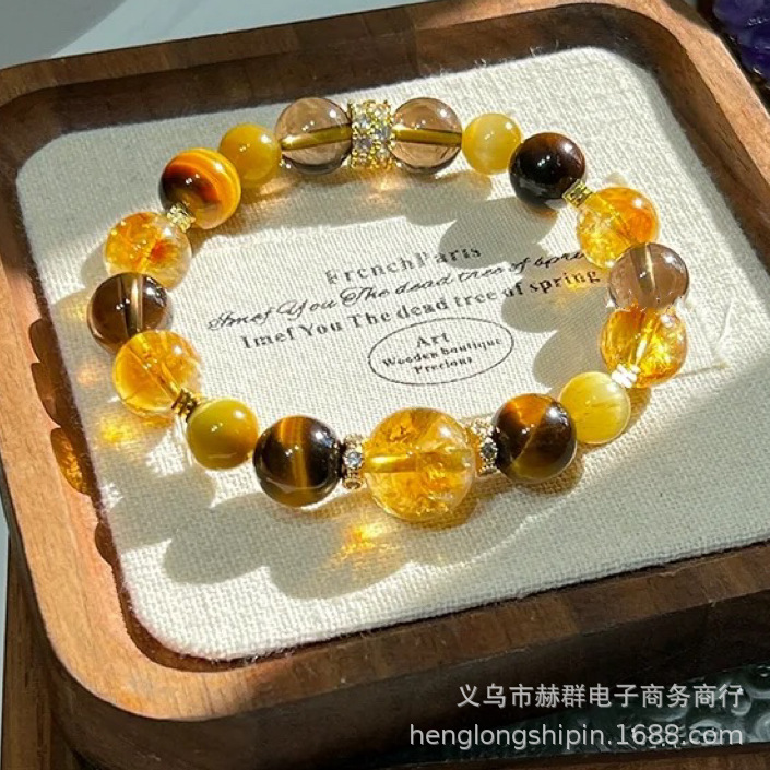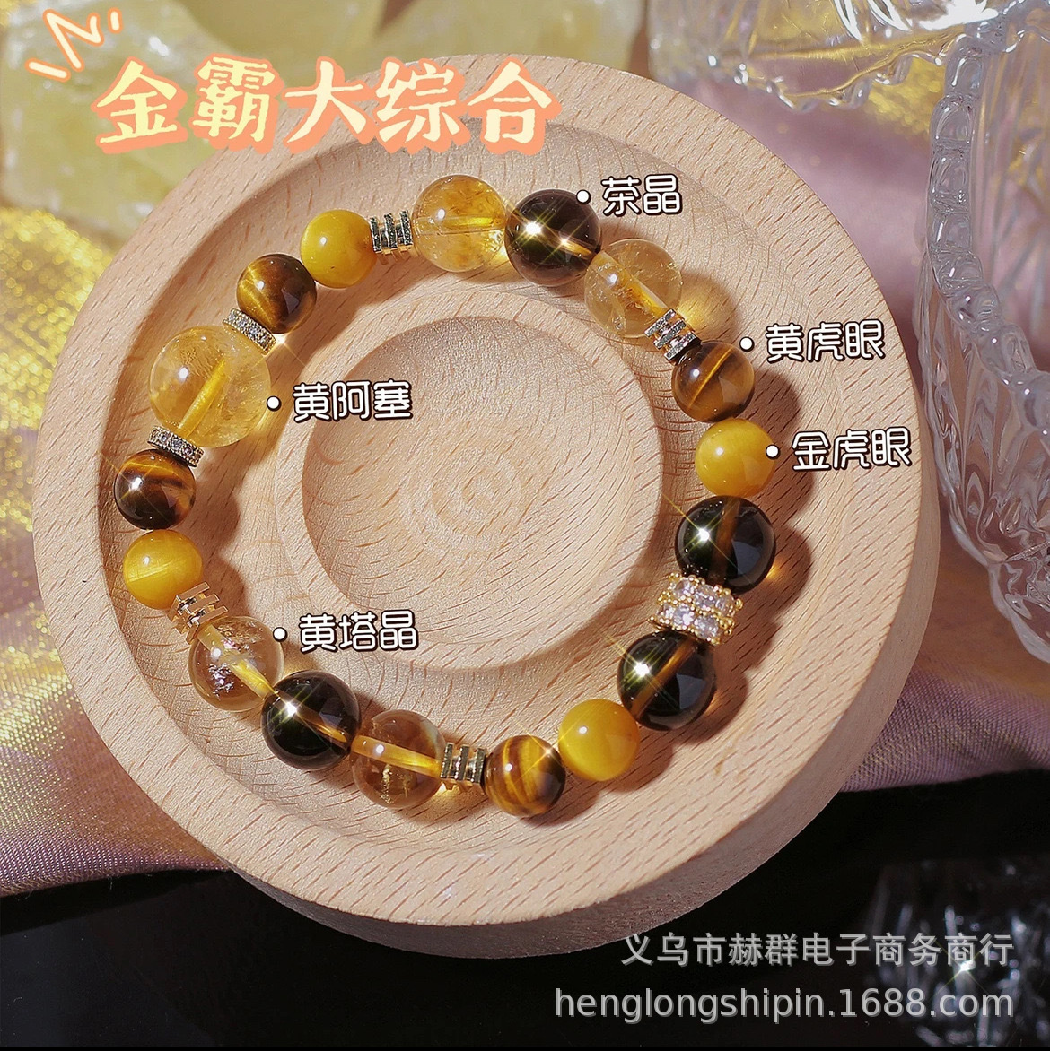 金霸大综合抖音爆款天然黄塔晶虎眼石水晶高级感手串消磁石套装