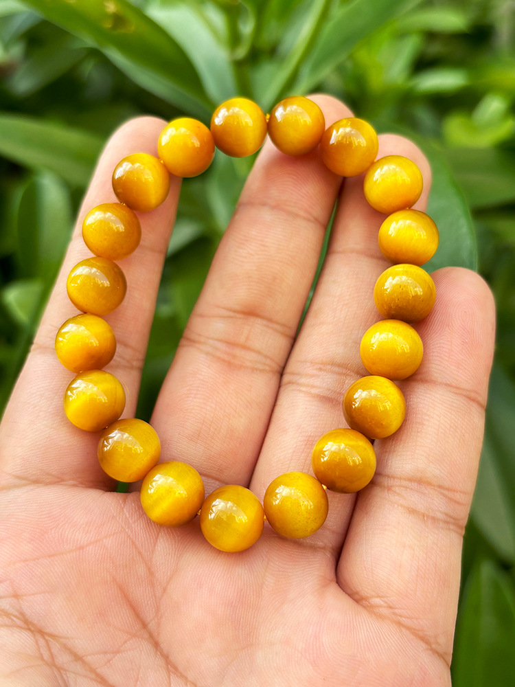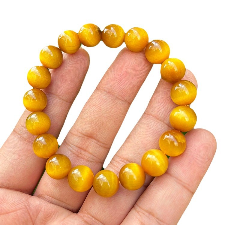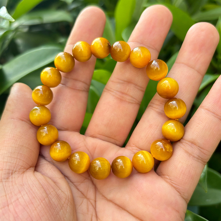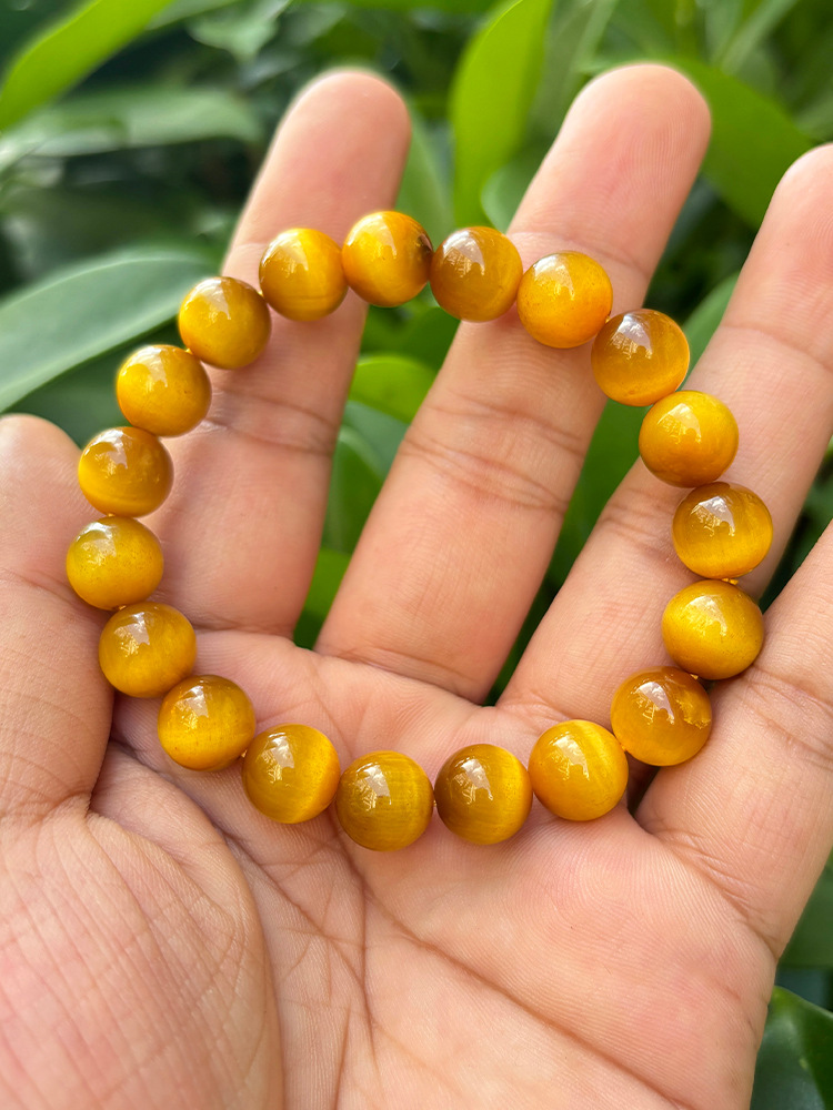 7A原石金虎眼石手串男士黄水晶猫眼石水晶旺事业佛珠金虎睛石手链