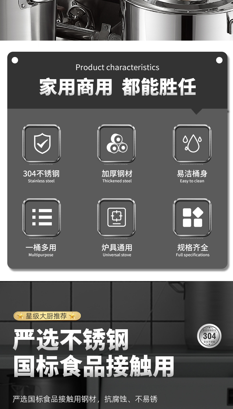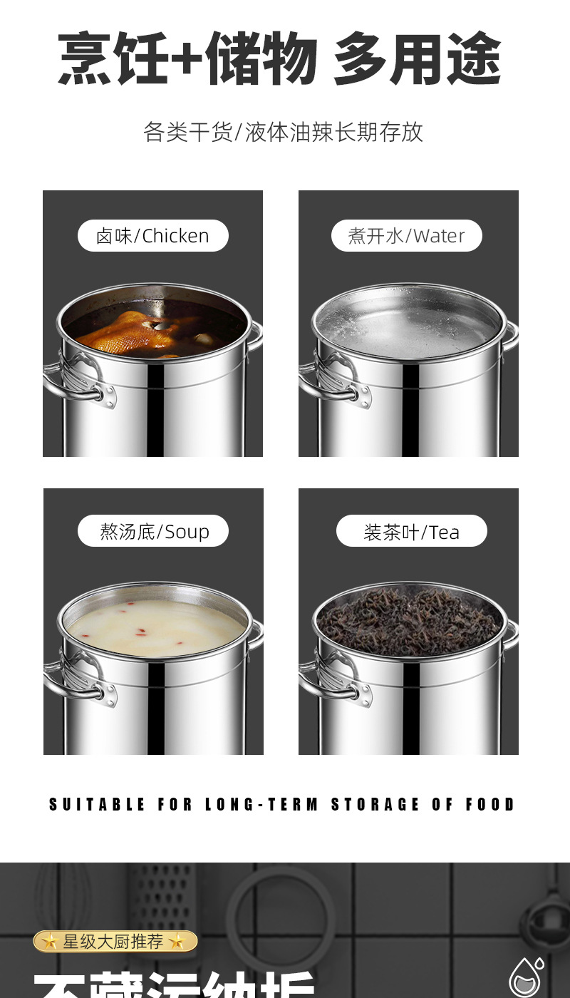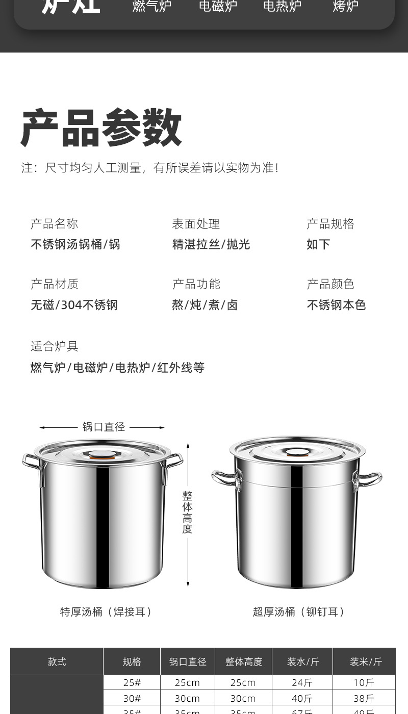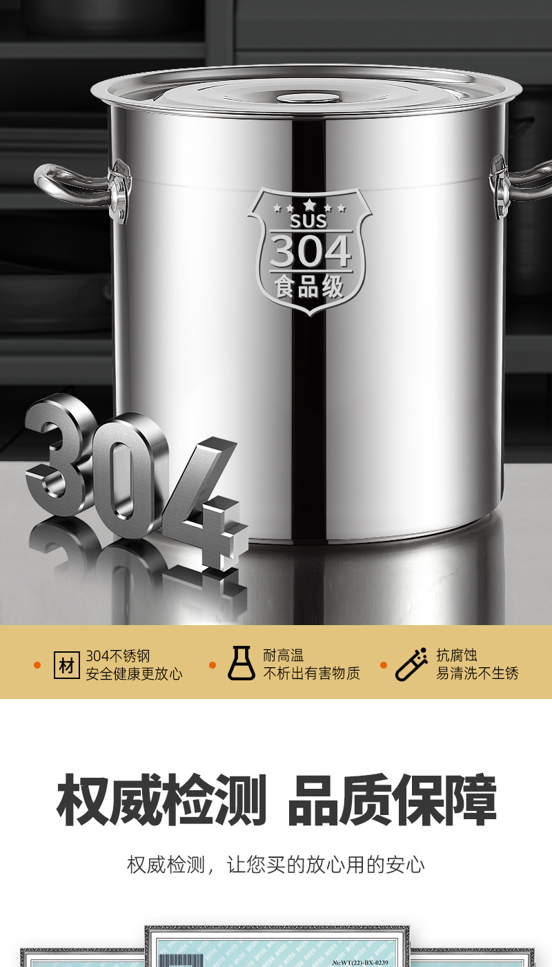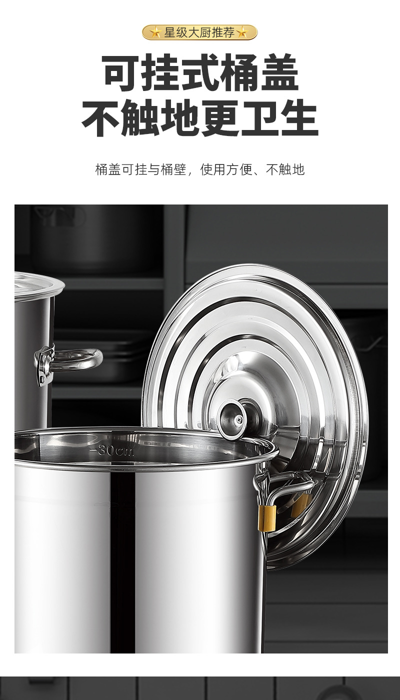 304食品级不锈钢桶圆桶大容量卤水汤桶商用加高带盖加厚家用汤锅