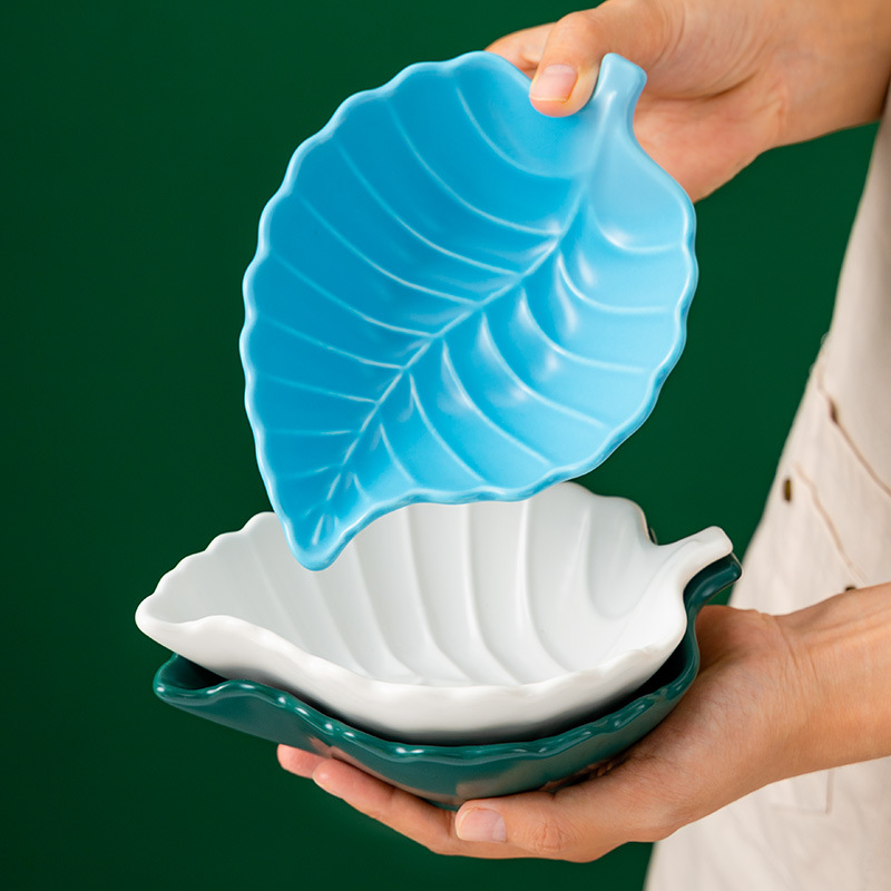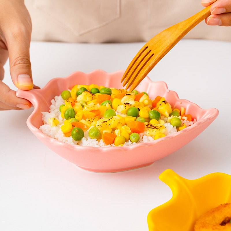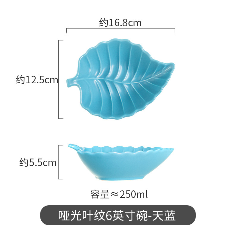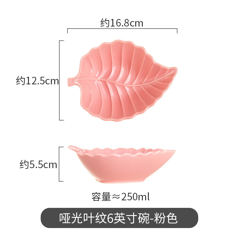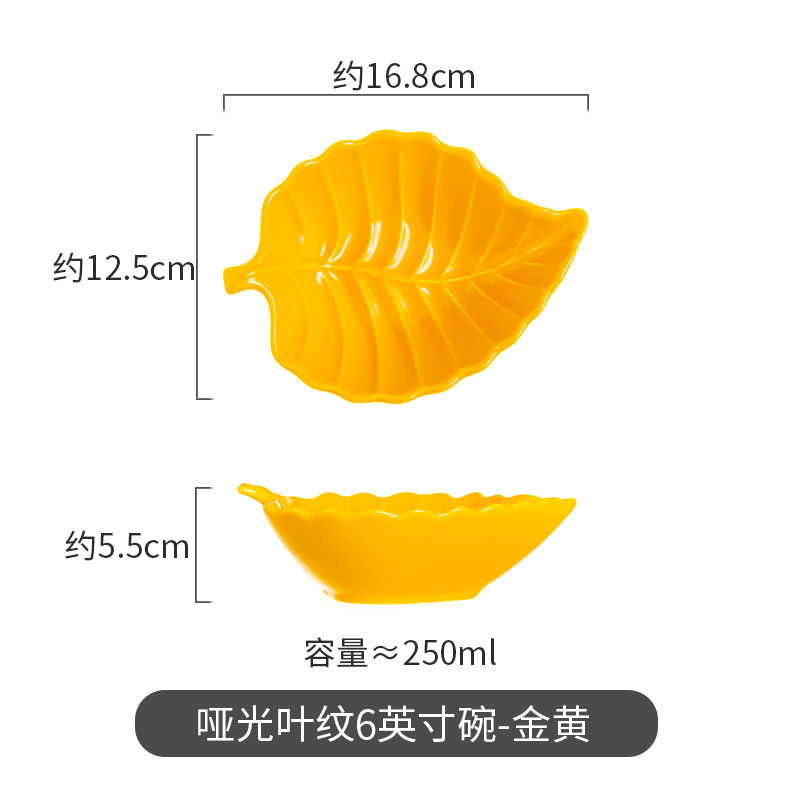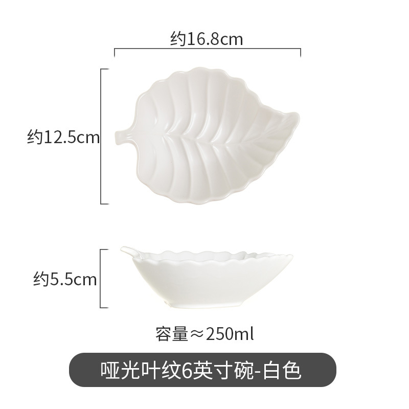 哑光叶纹6寸碗 网红餐具陶瓷烤碗儿童早餐树叶米饭碗厨房酒店用品