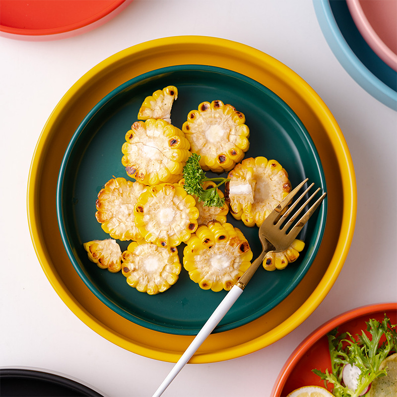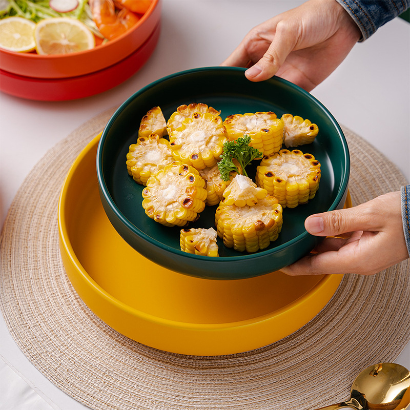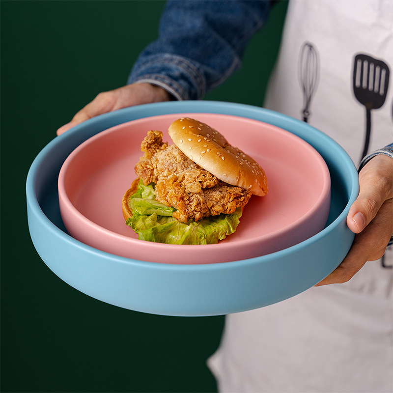 圆形菜盘子碟子陶瓷汤盘餐具简约创意菜盘深盘厨房酒店用品