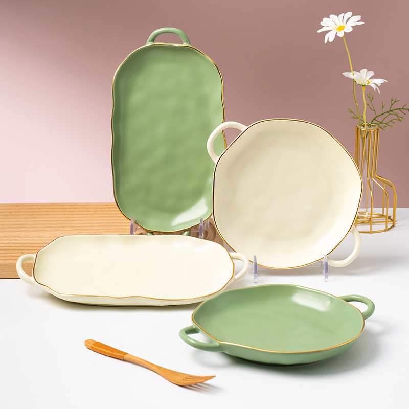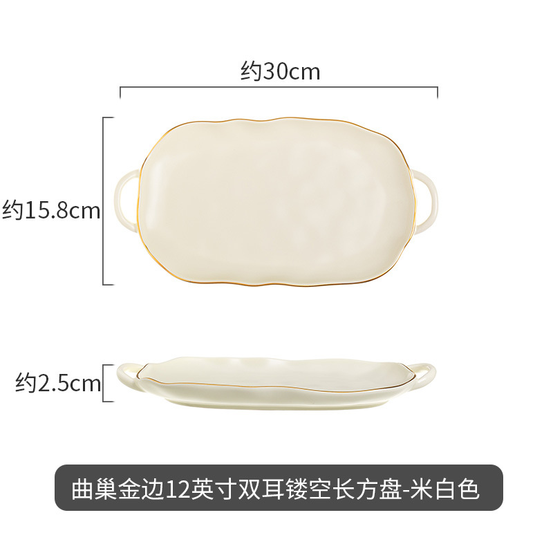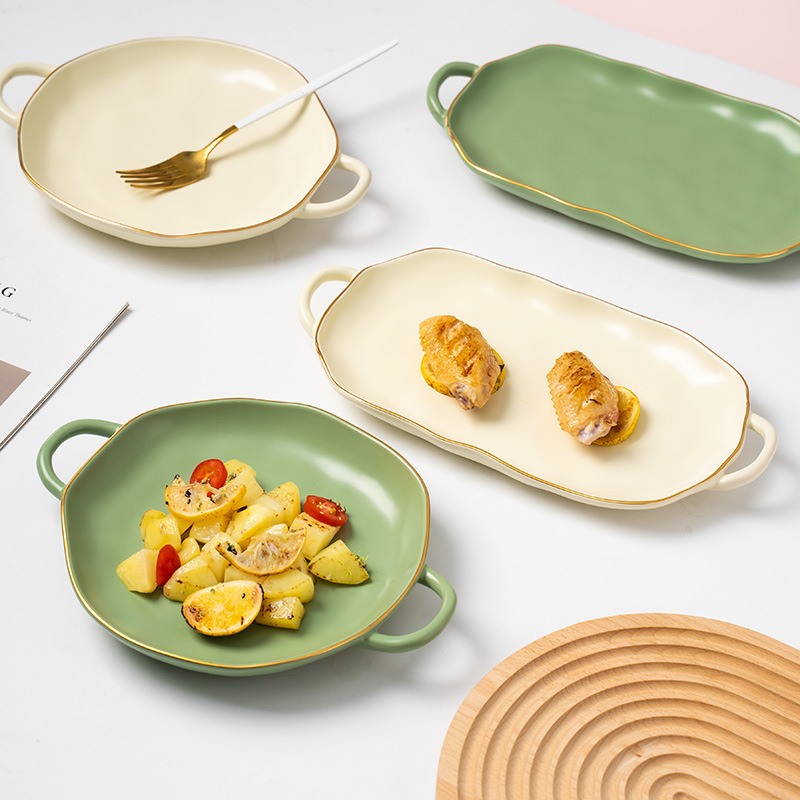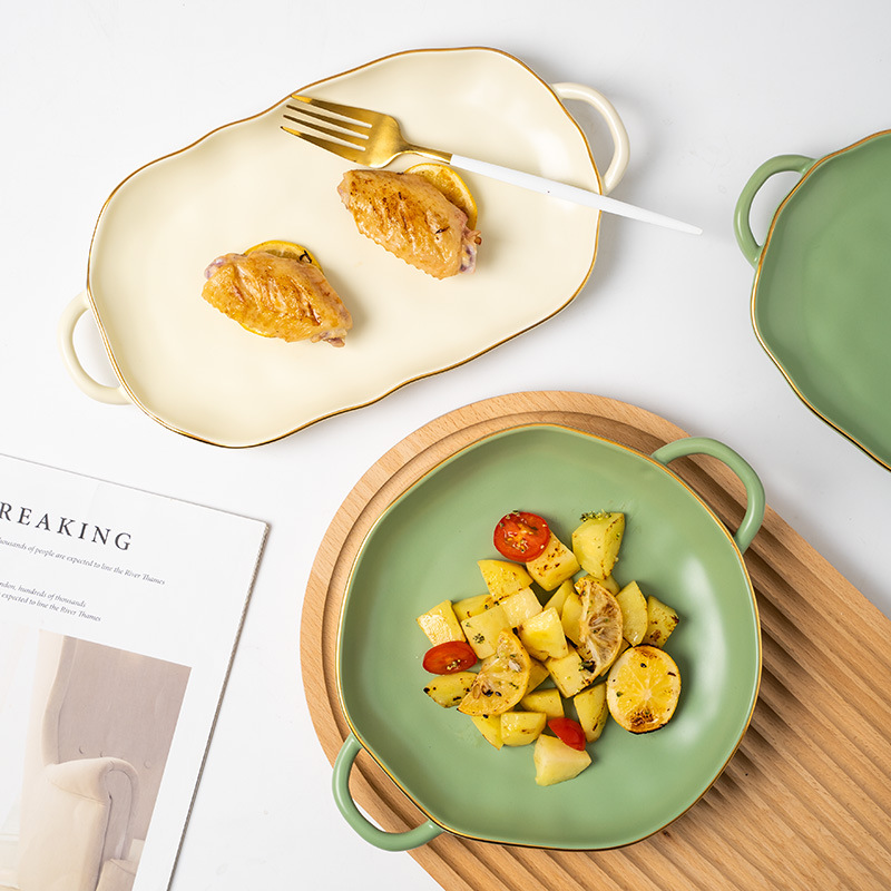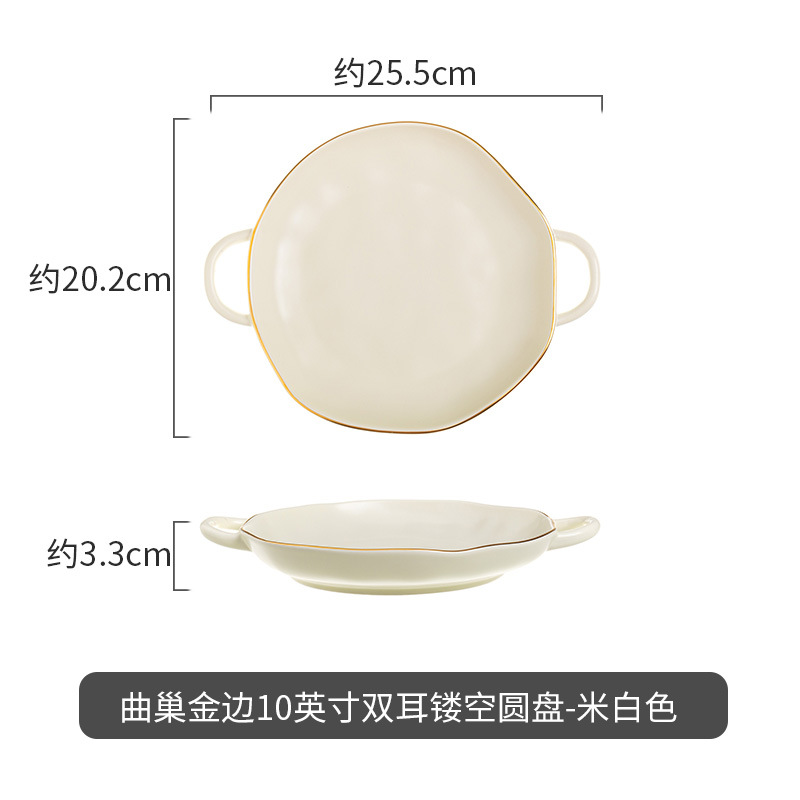 厨房酒店用品双耳陶瓷烤盘不规则创意菜盘意面盘平盘餐具