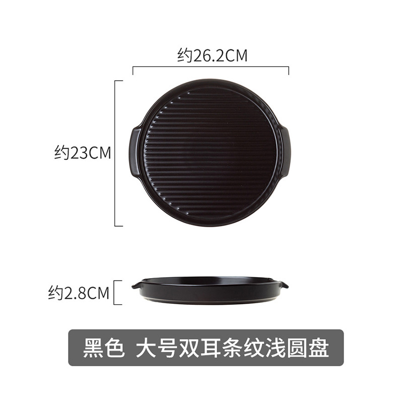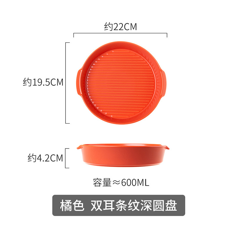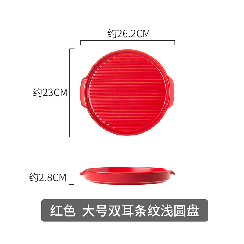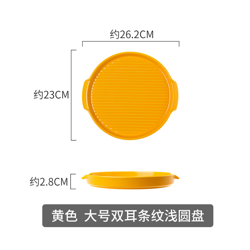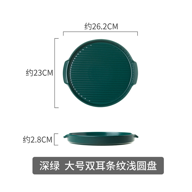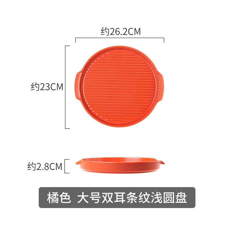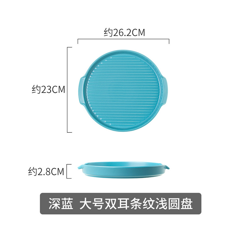 厨房酒店用品餐具彩色条纹双耳烤盘菜盘商用意面盘平盘外贸
