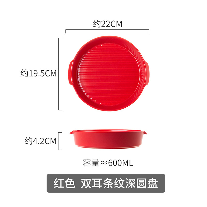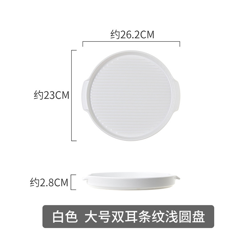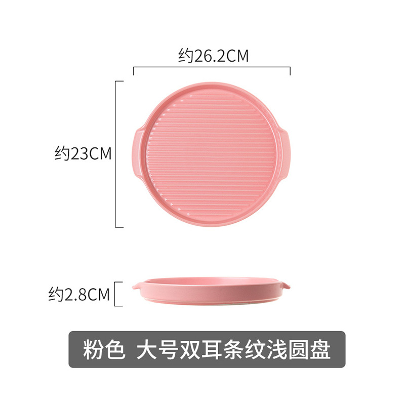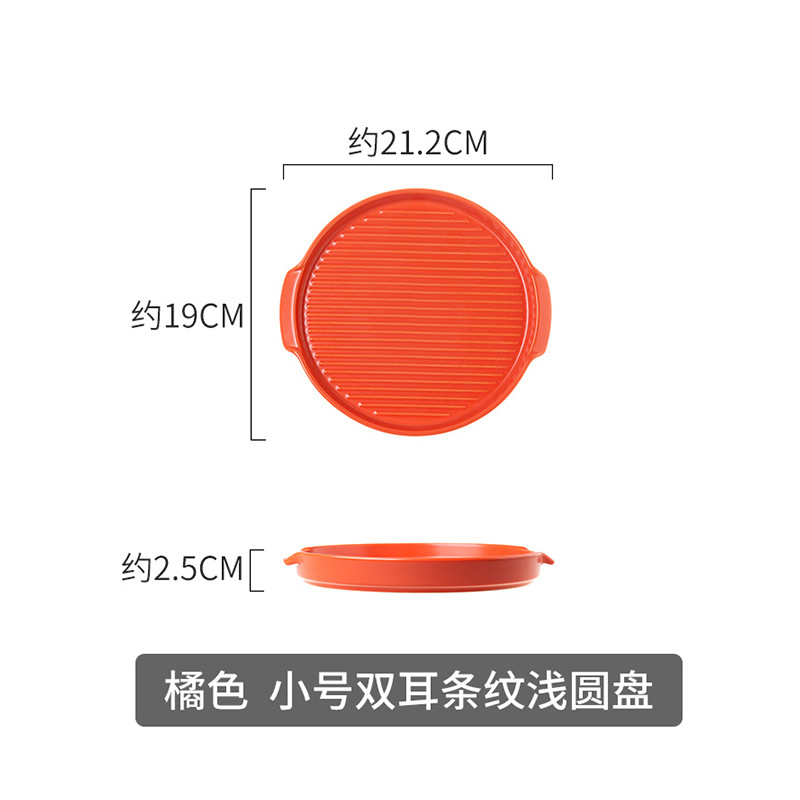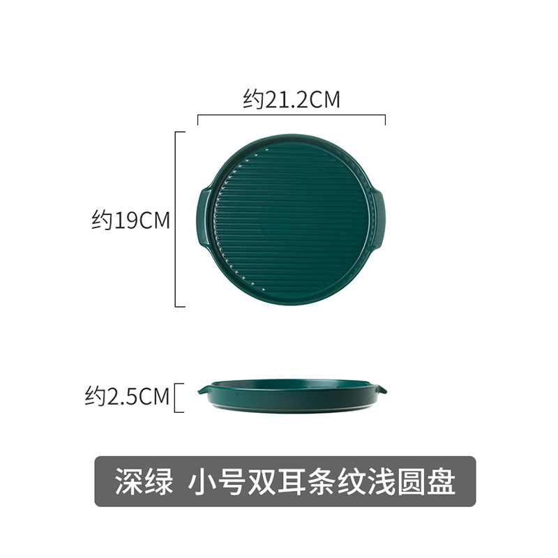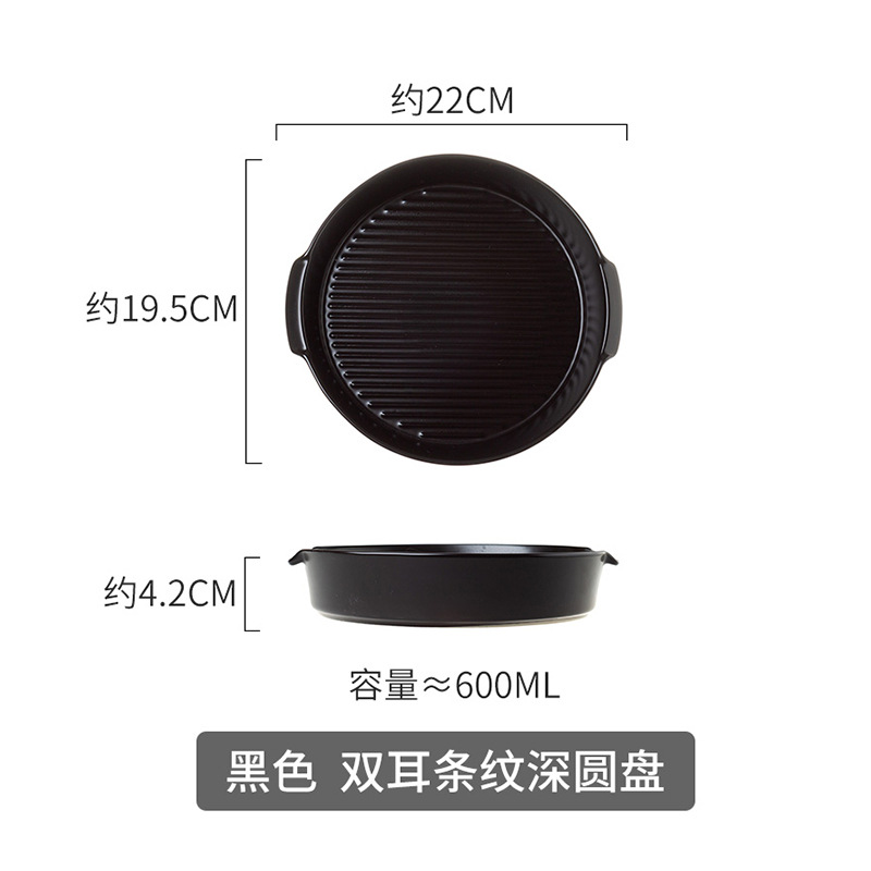 厨房酒店用品餐具彩色条纹双耳烤盘菜盘商用意面盘平盘外贸