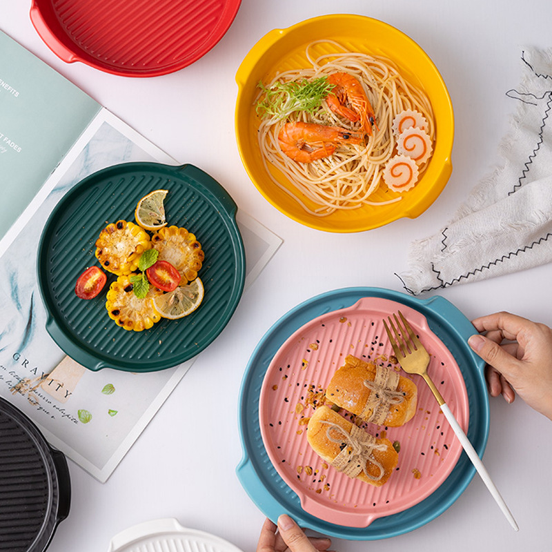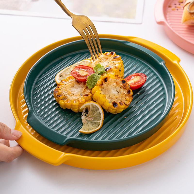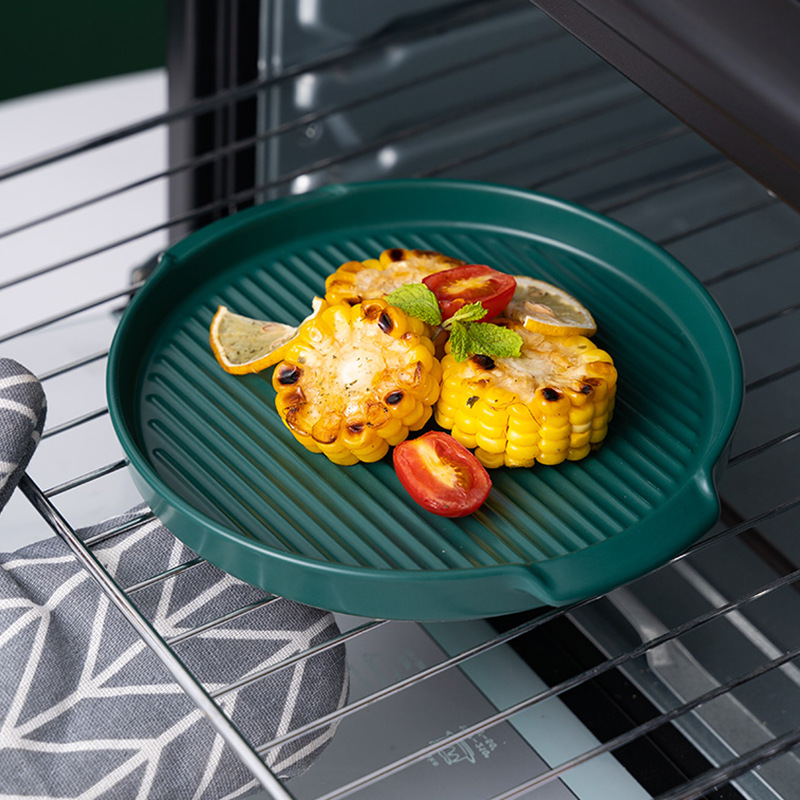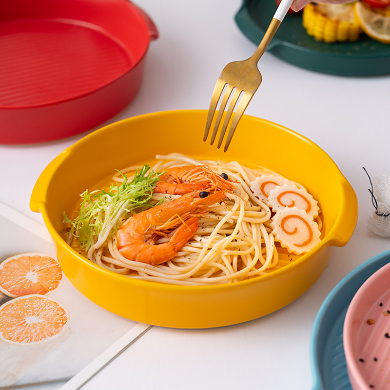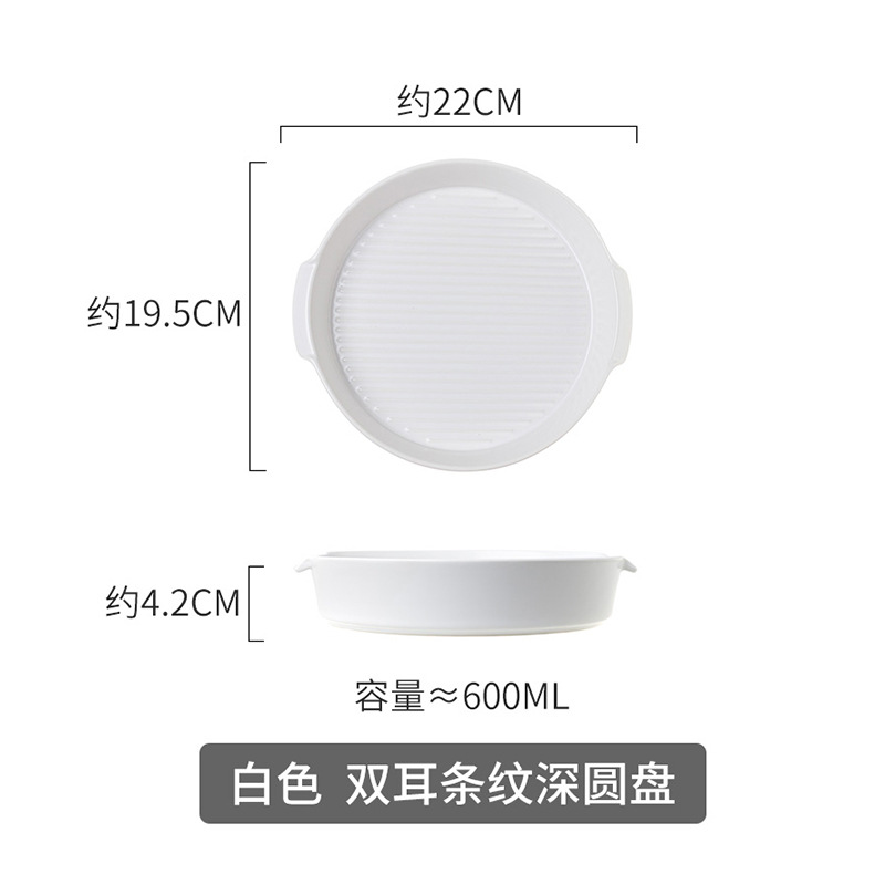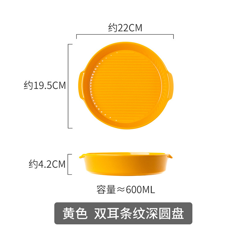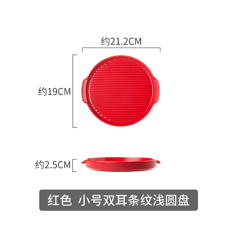 厨房酒店用品餐具彩色条纹双耳烤盘菜盘商用意面盘平盘外贸