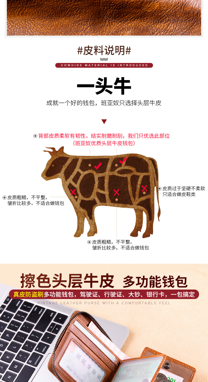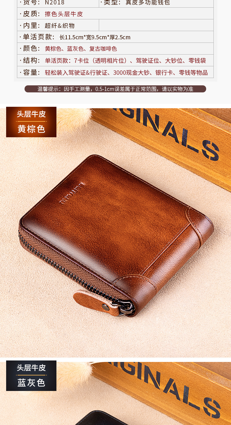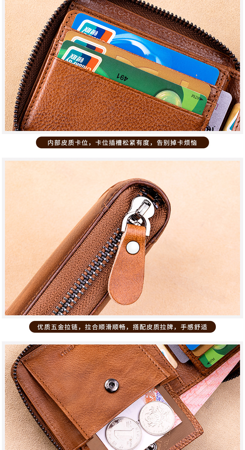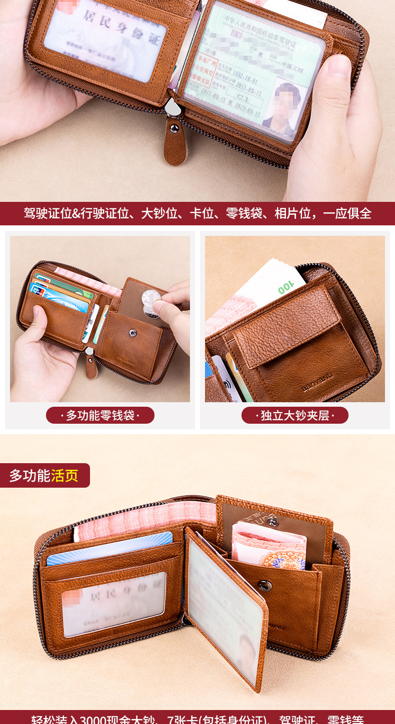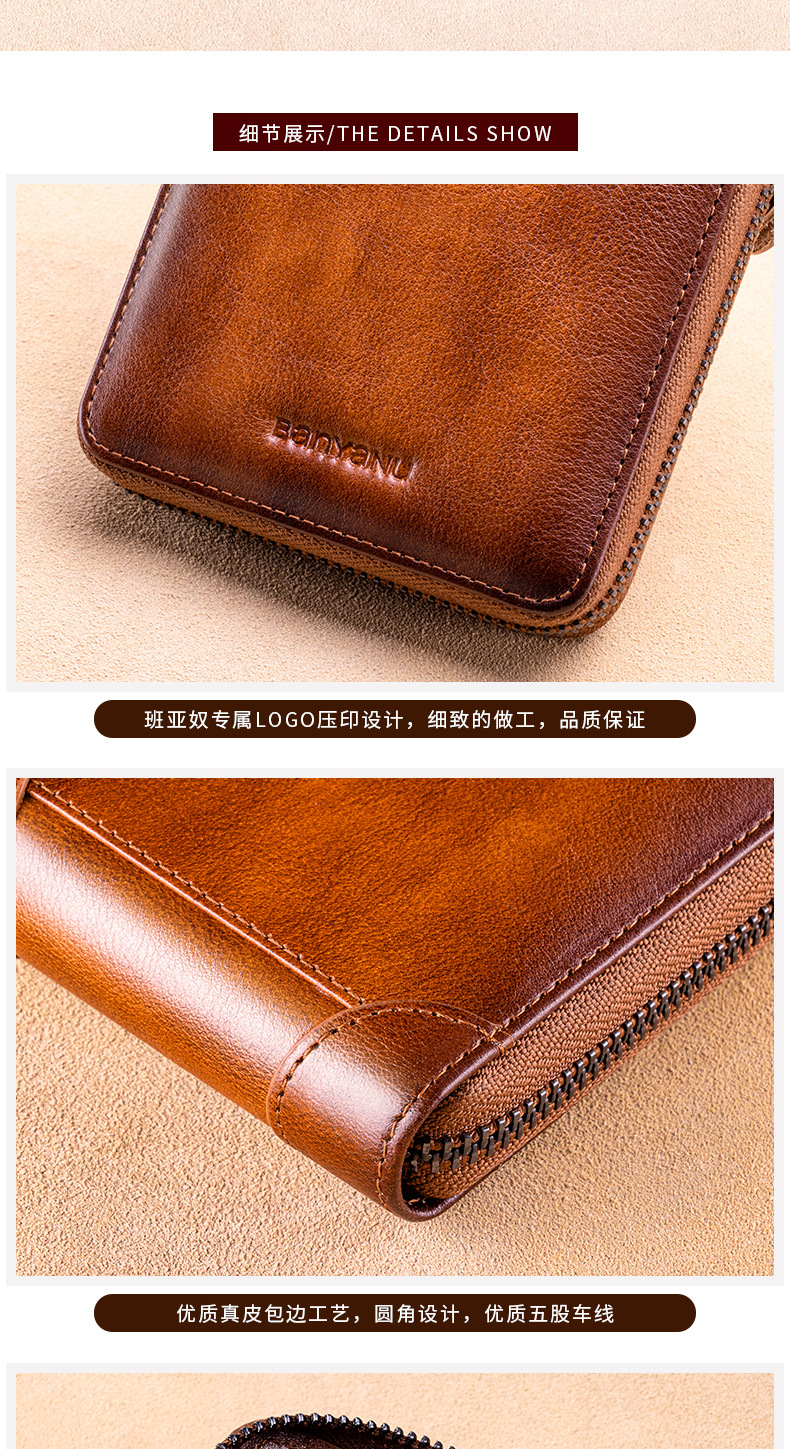 广州市班亚奴皮具厂男士钱包真皮短款拉链多功能皮夹大容量钱夹男