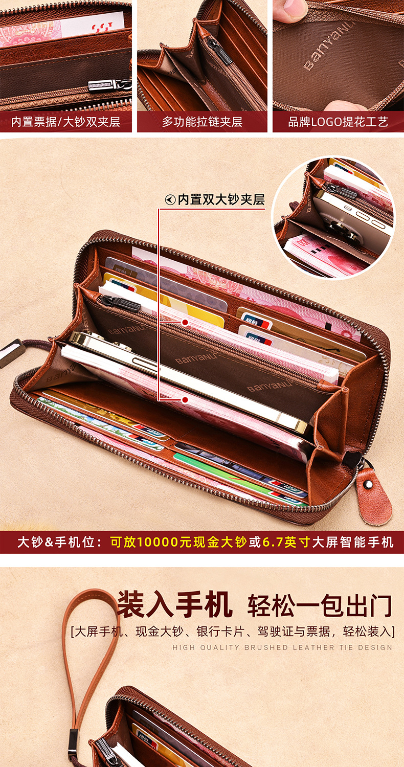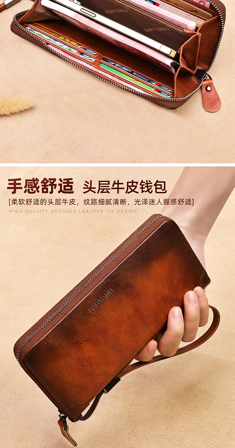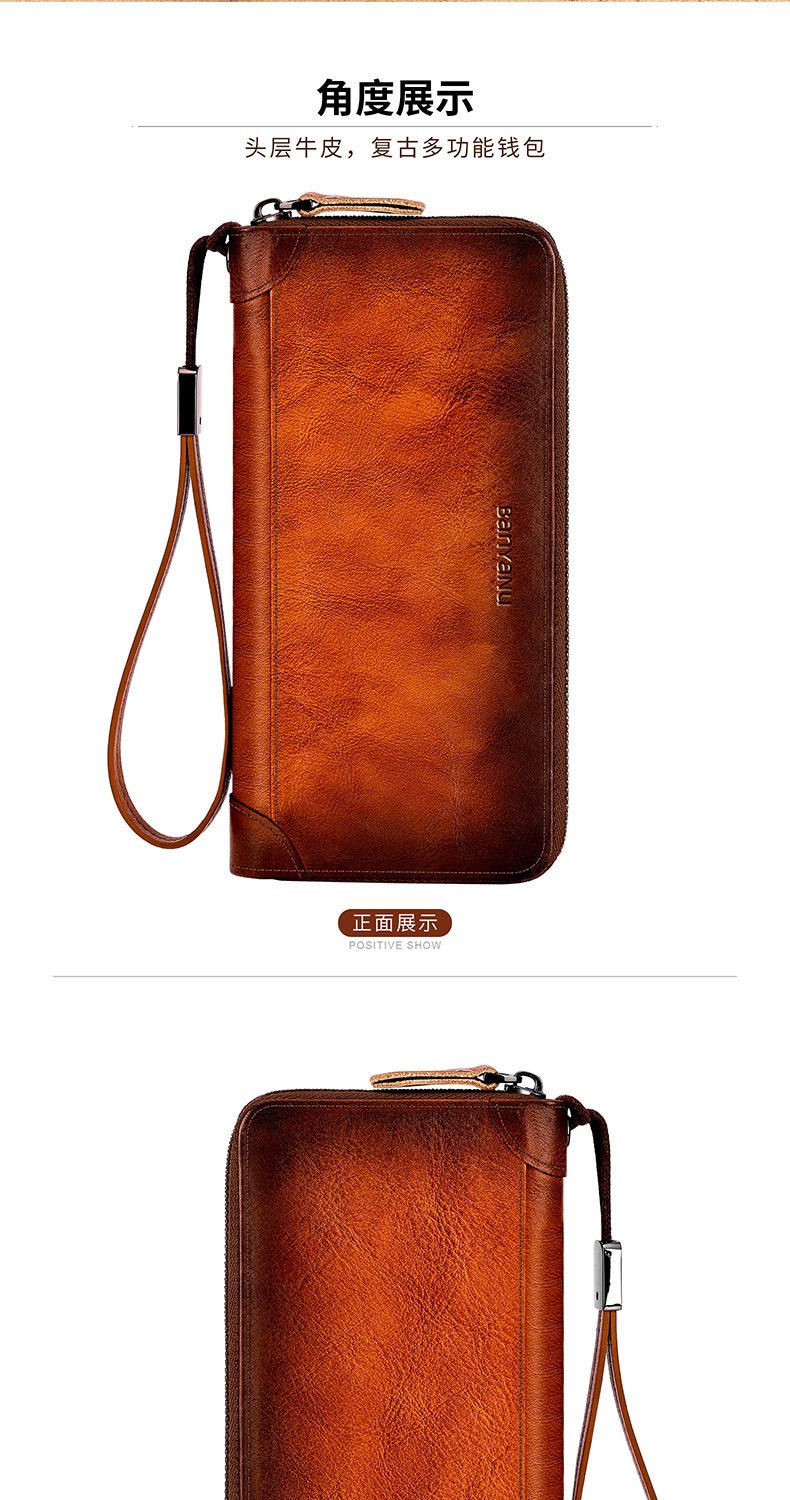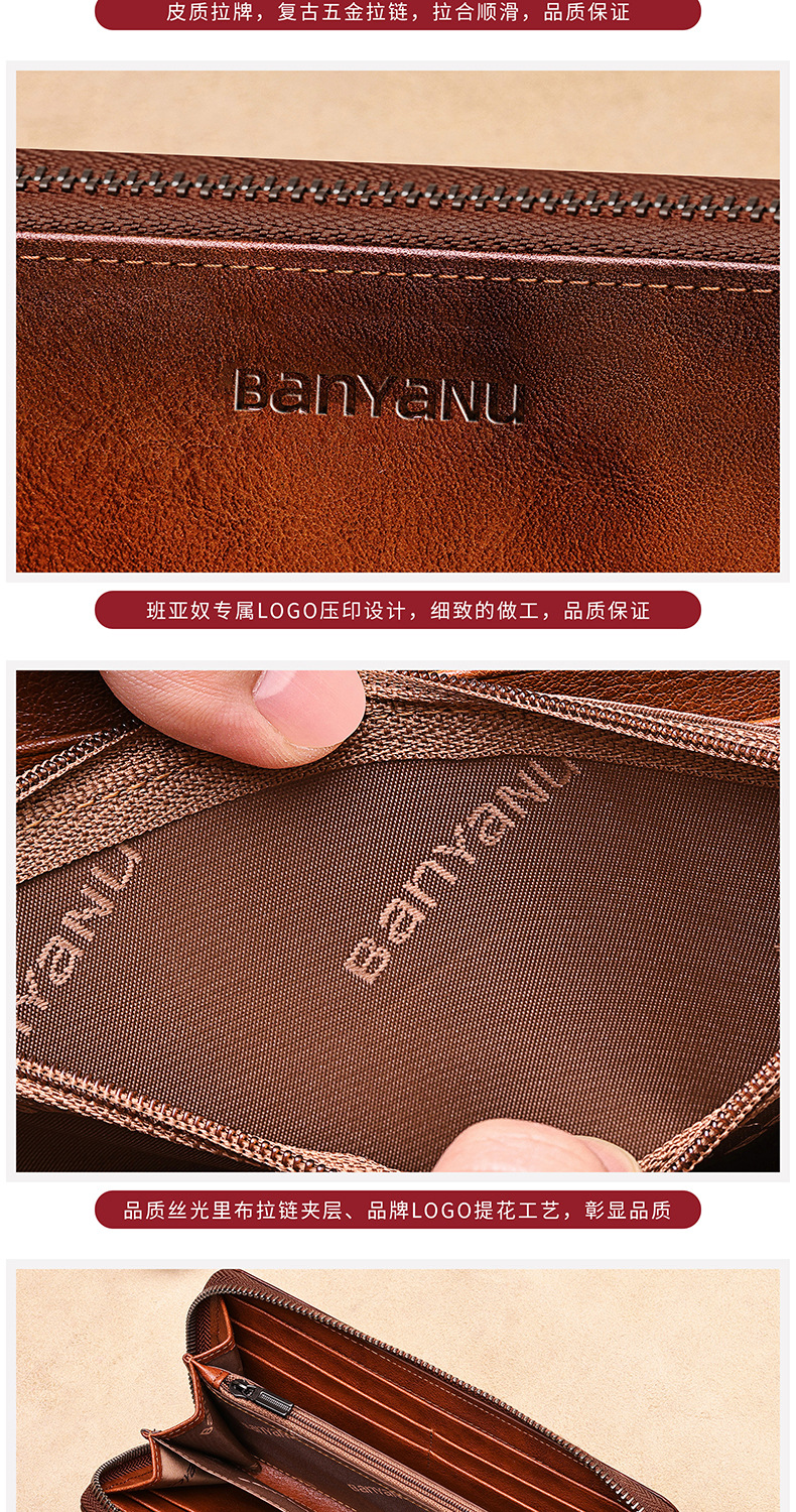 班亚奴广州工厂店男士钱包男款长款拉链大容量卡包收纳包真皮皮夹