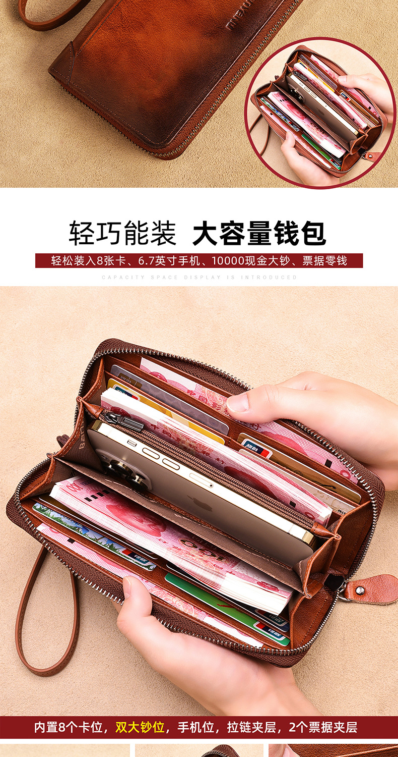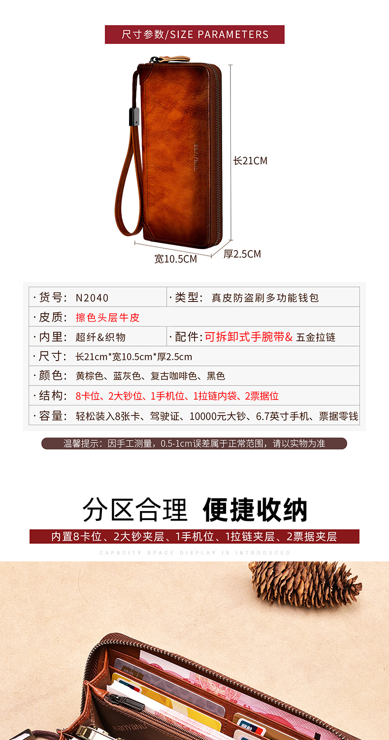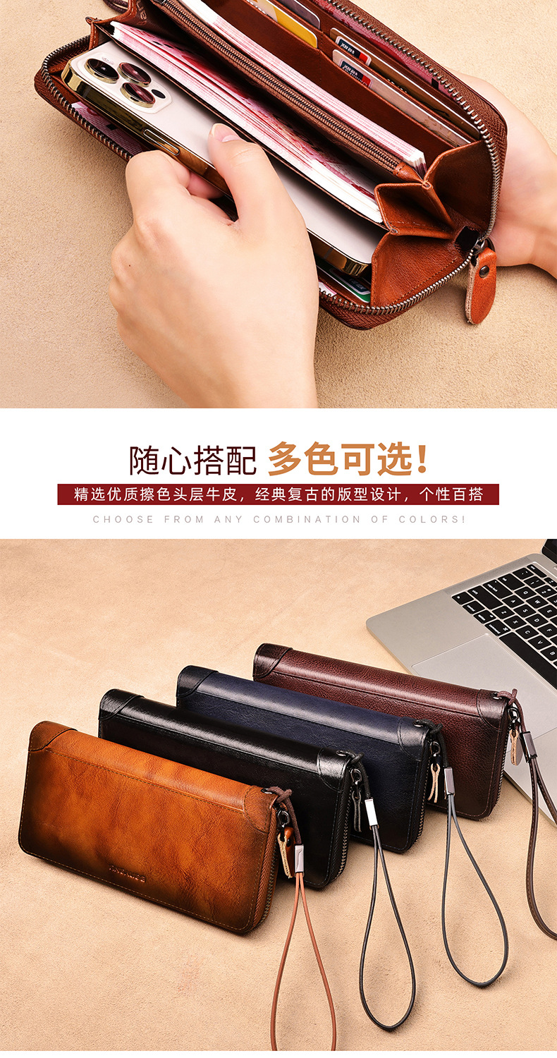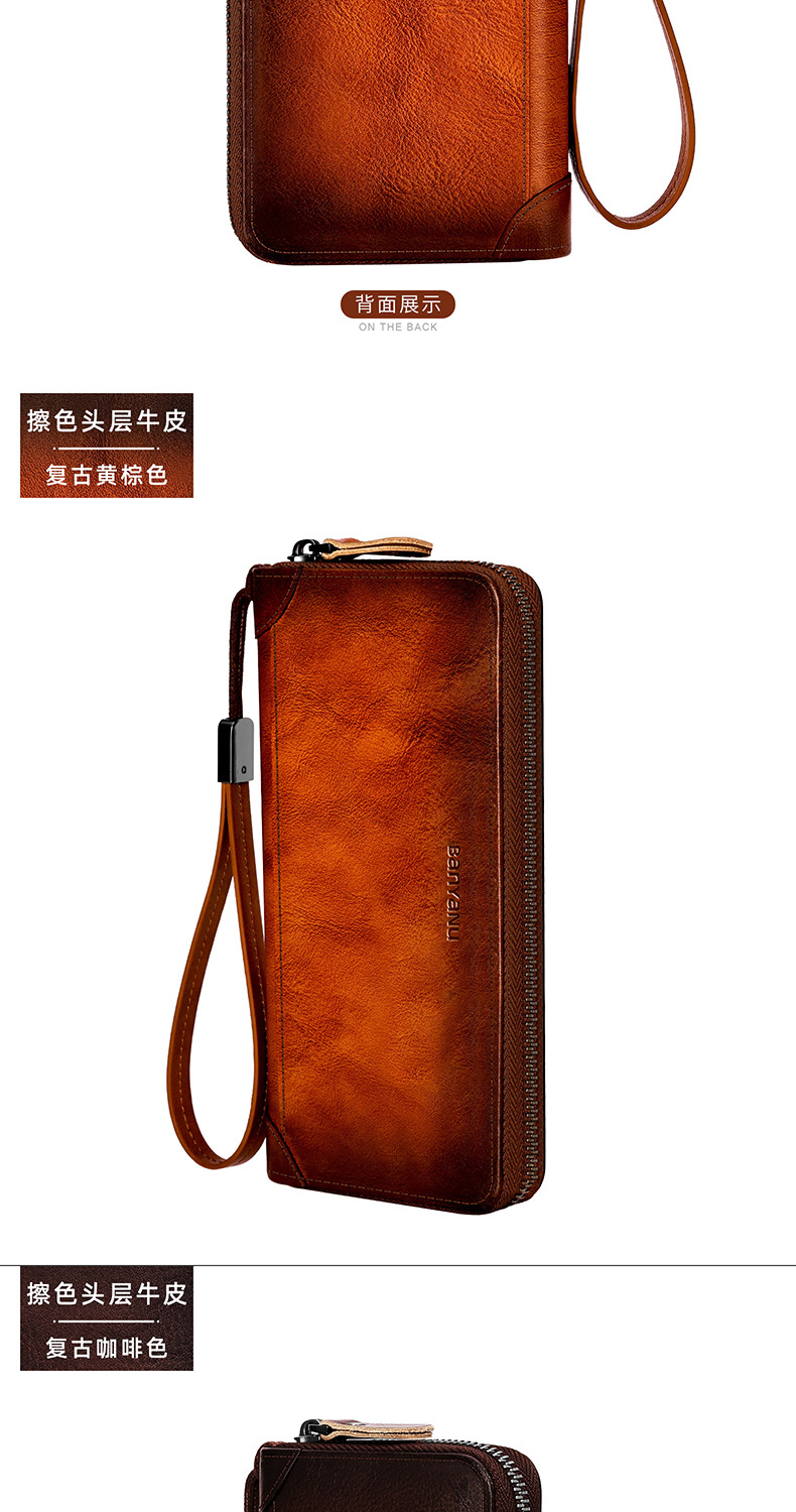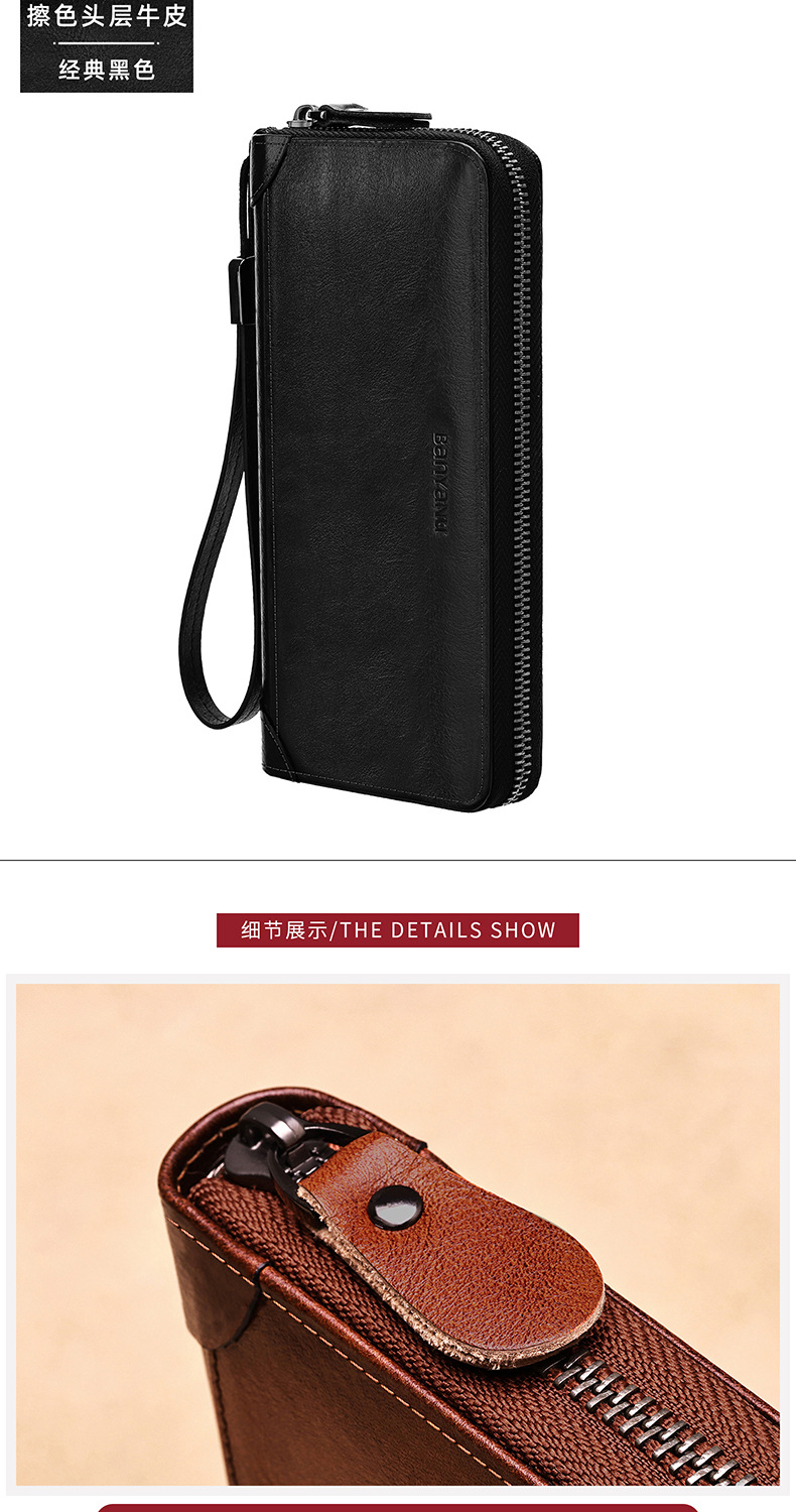 班亚奴广州工厂店男士钱包男款长款拉链大容量卡包收纳包真皮皮夹