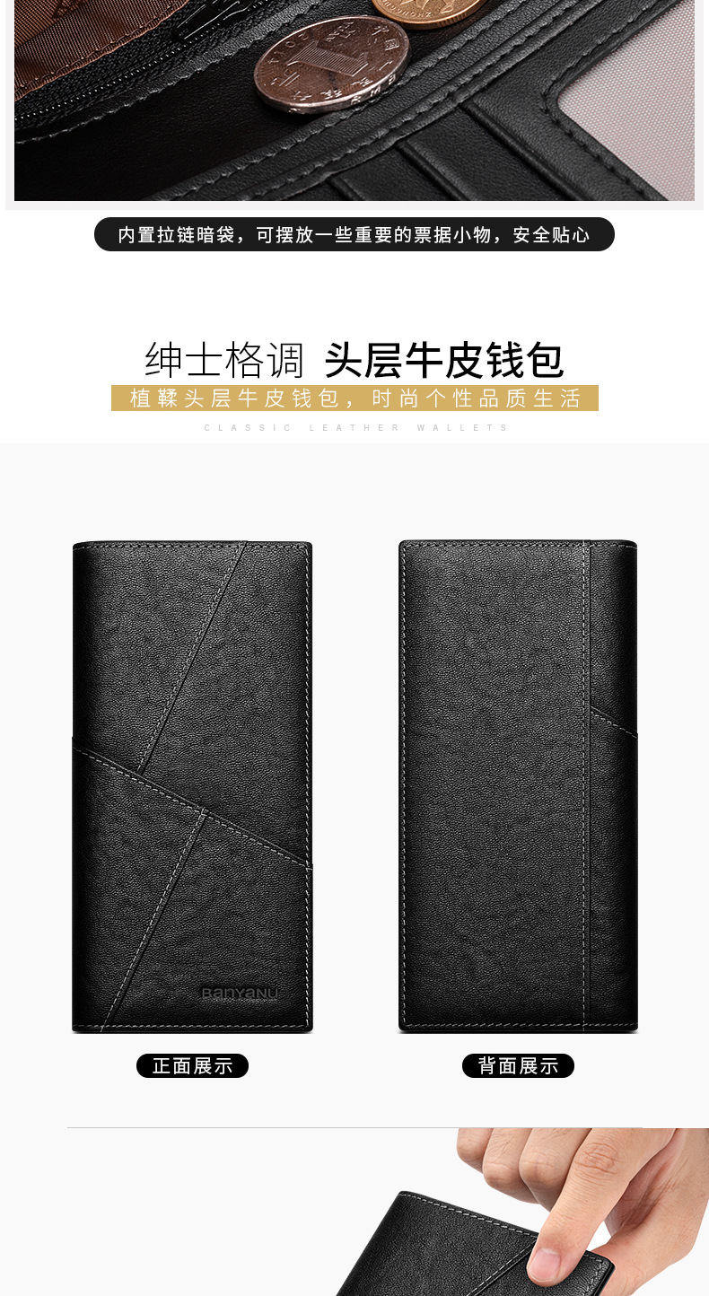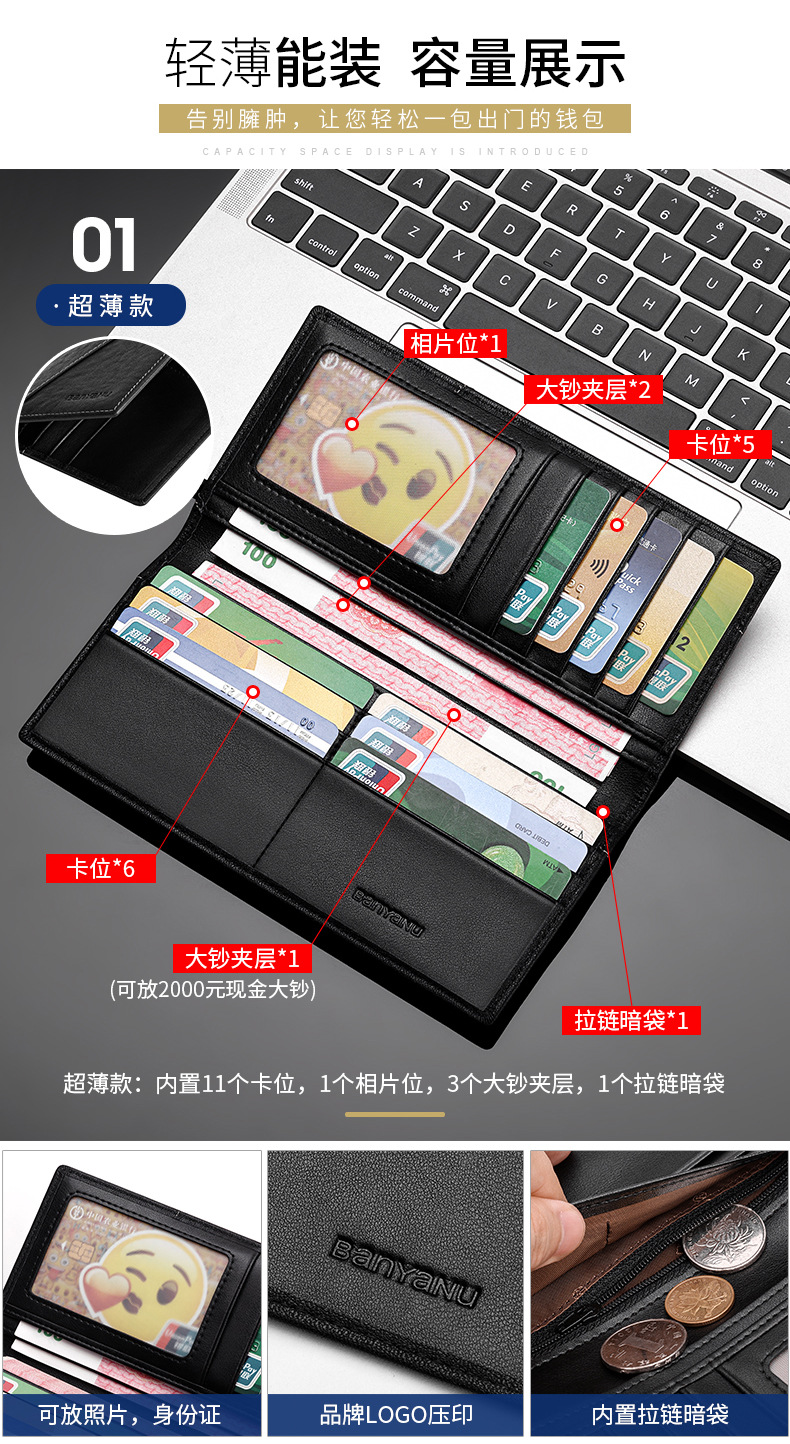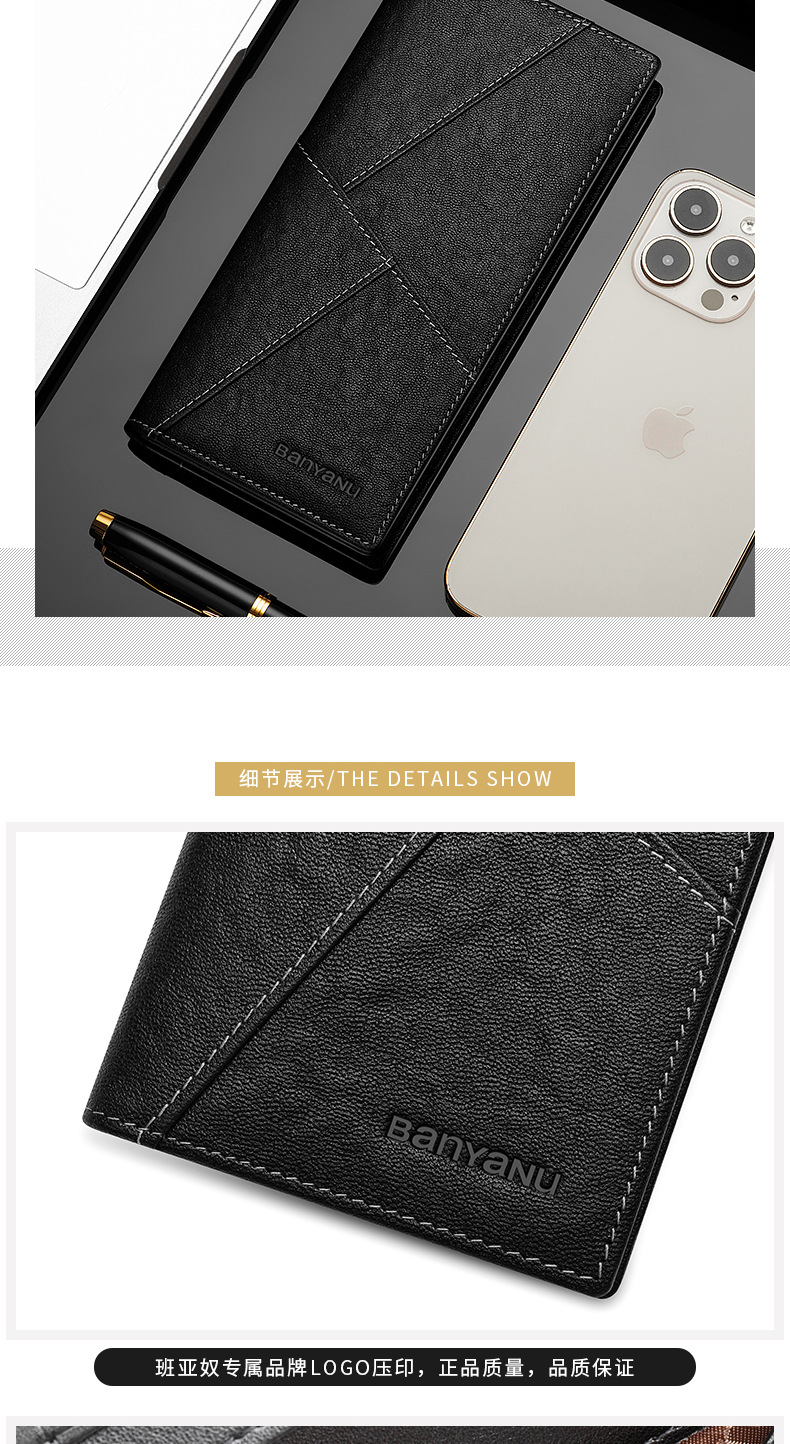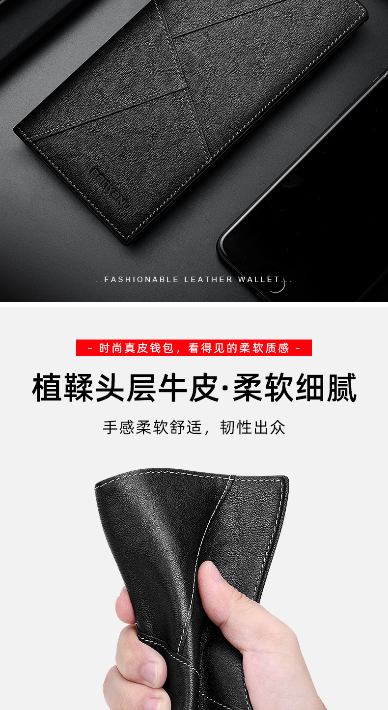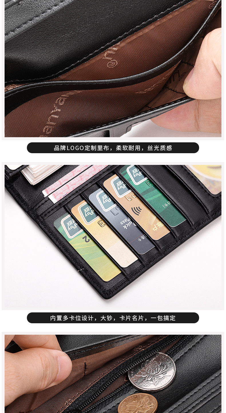 跨境新款欧美多功能防盗刷软皮夹长款超薄真皮二折大容量男士钱包