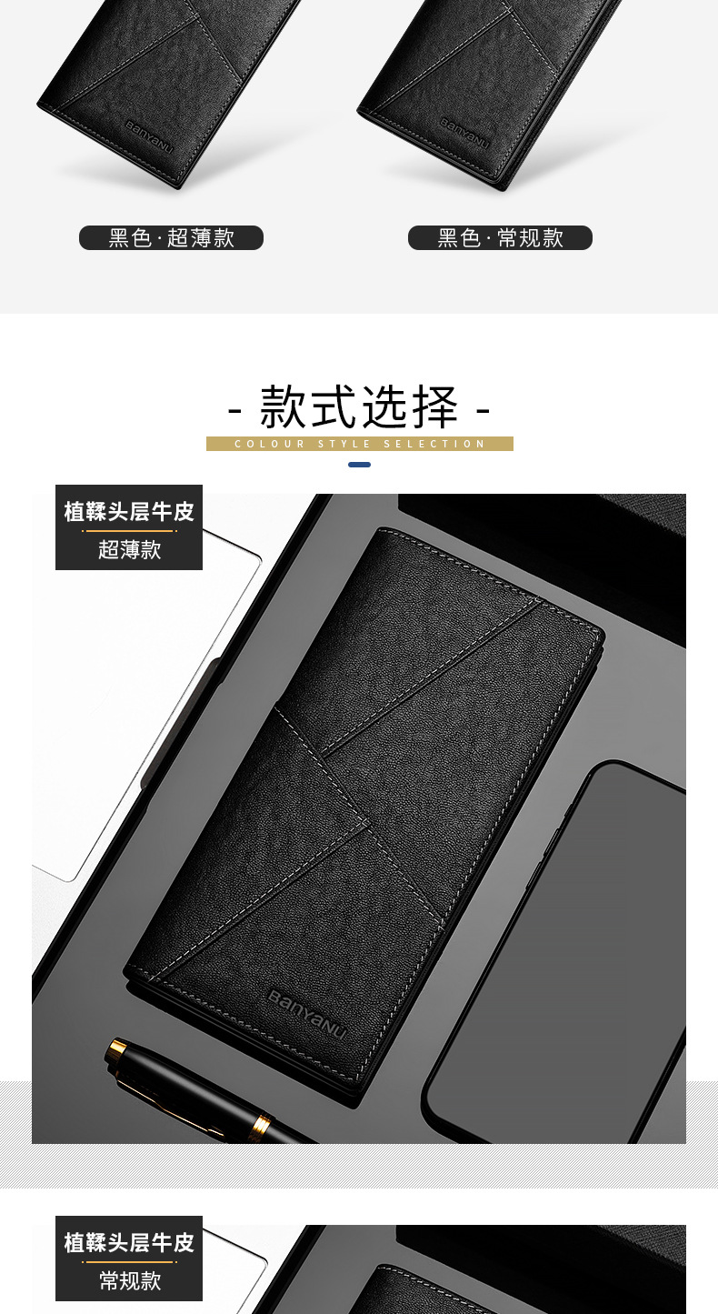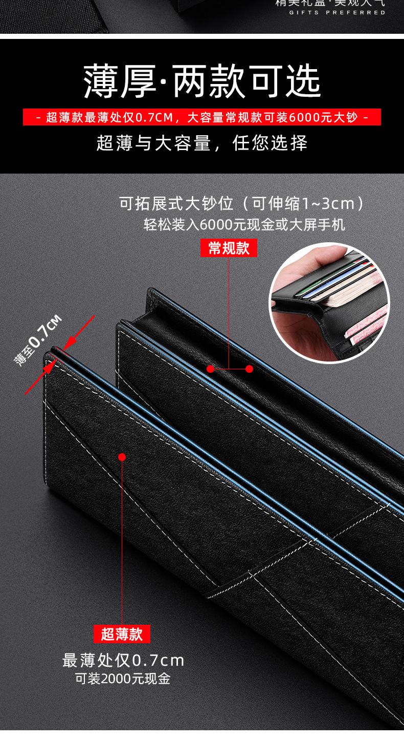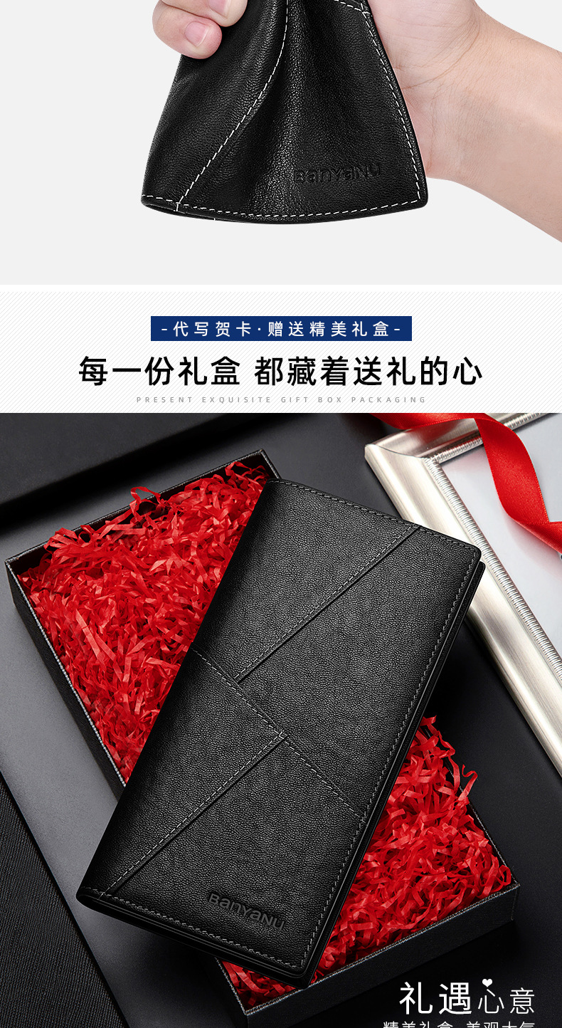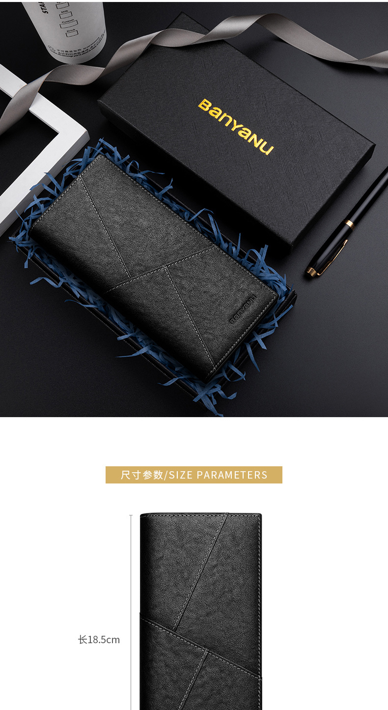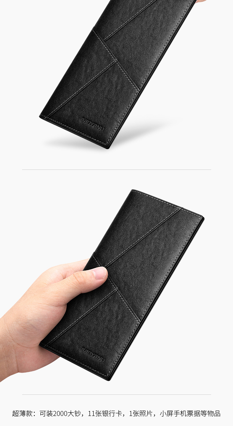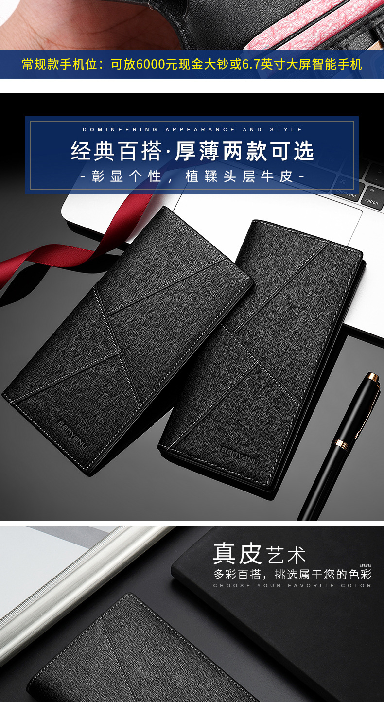 跨境新款欧美多功能防盗刷软皮夹长款超薄真皮二折大容量男士钱包