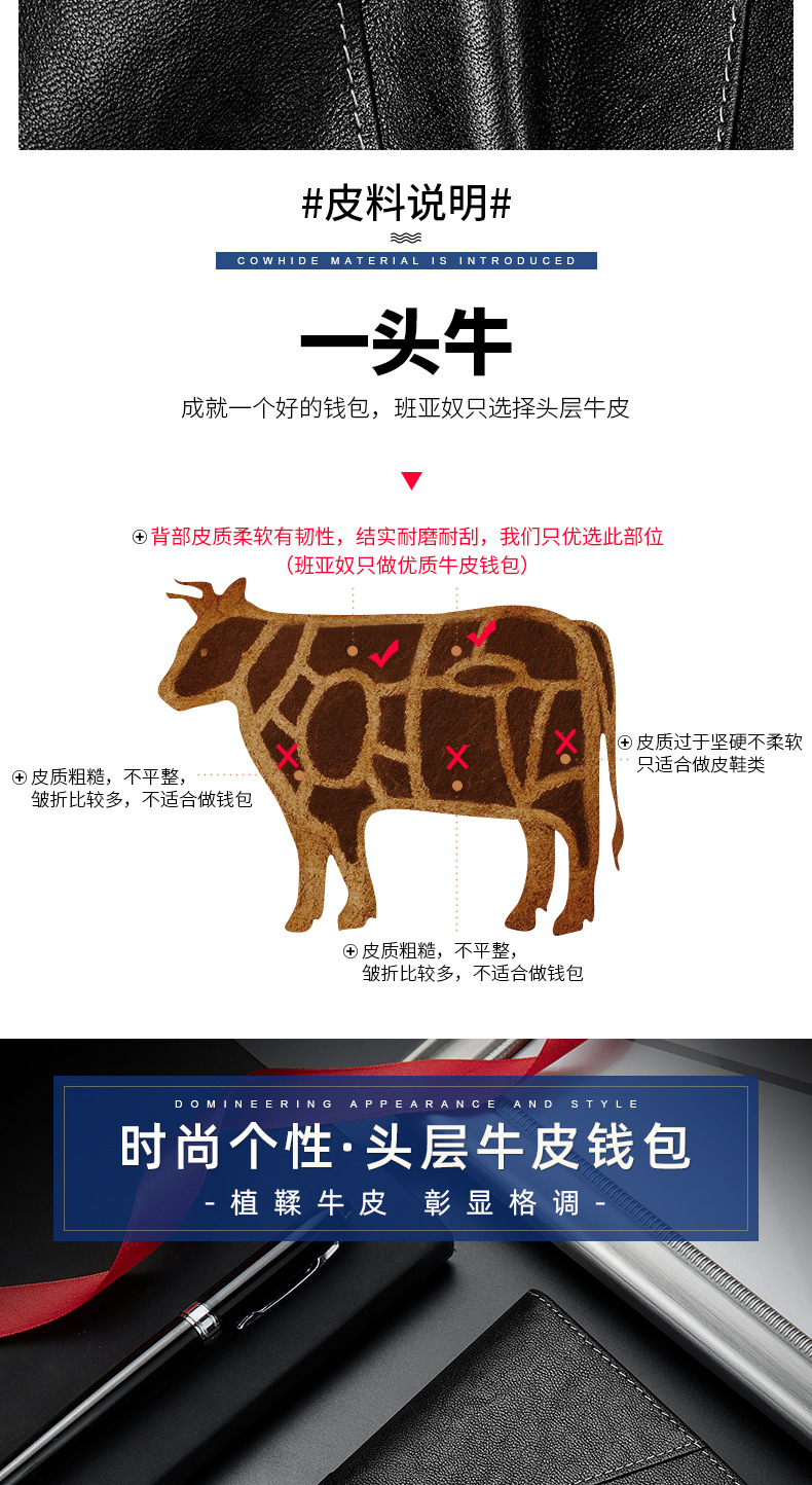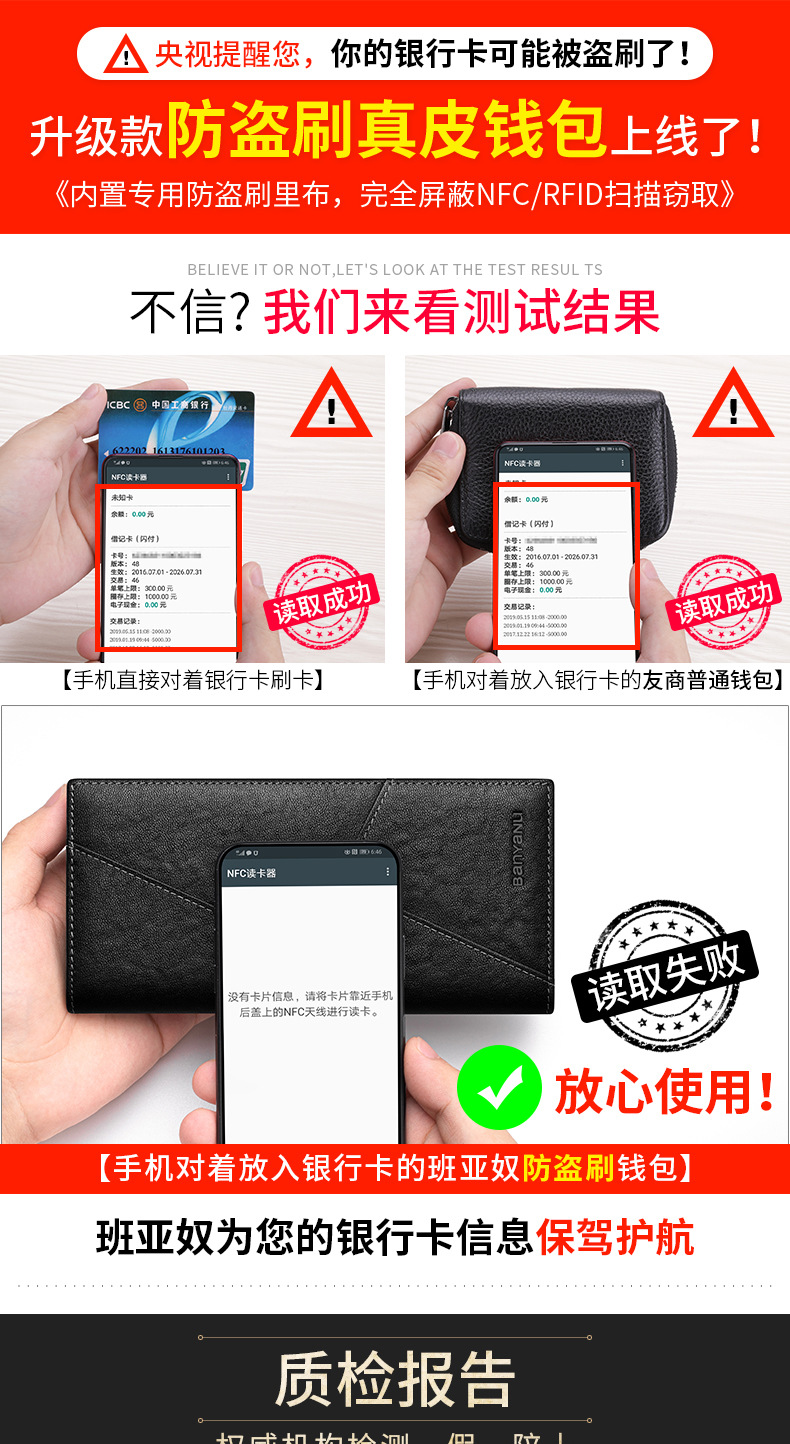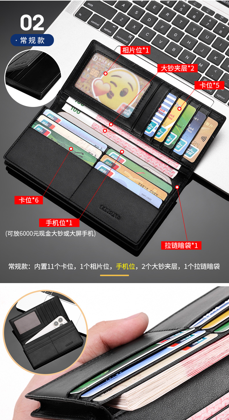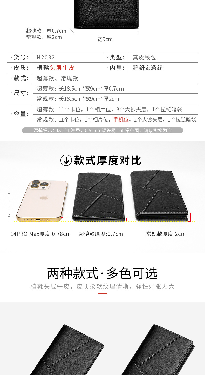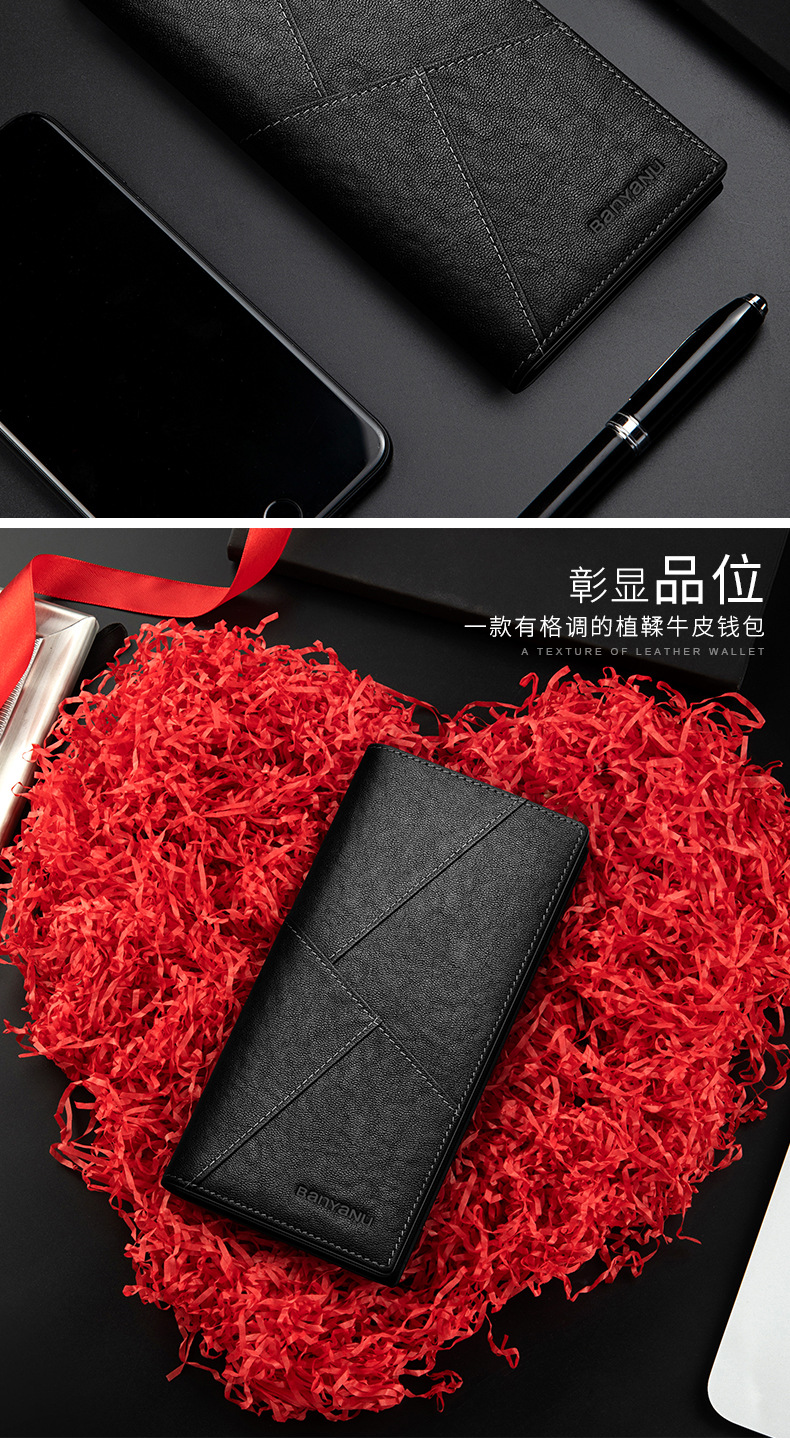 跨境新款欧美多功能防盗刷软皮夹长款超薄真皮二折大容量男士钱包