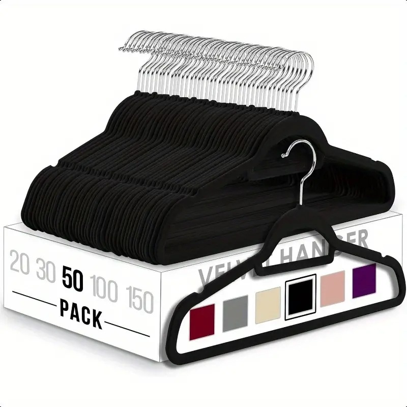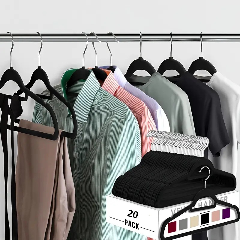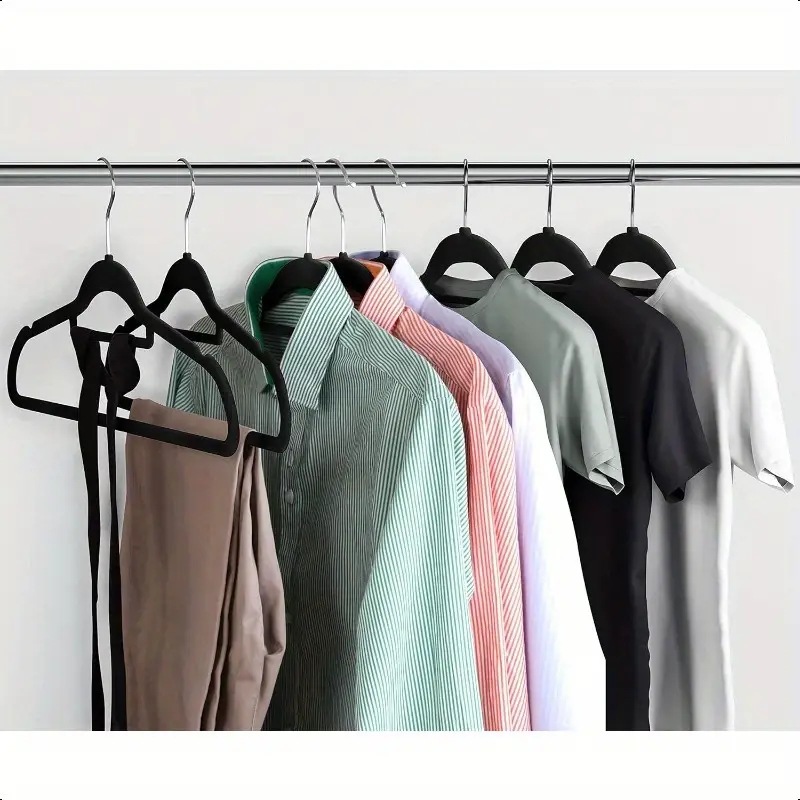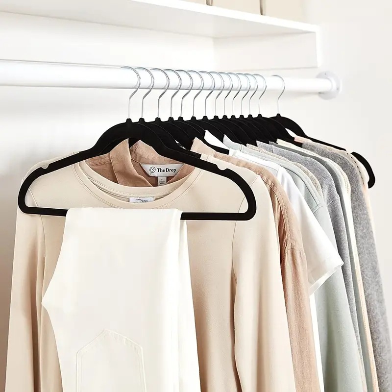 跨境植绒衣架45CM批发防滑塑料衣架成人衣挂收纳无痕收纳衣服架子