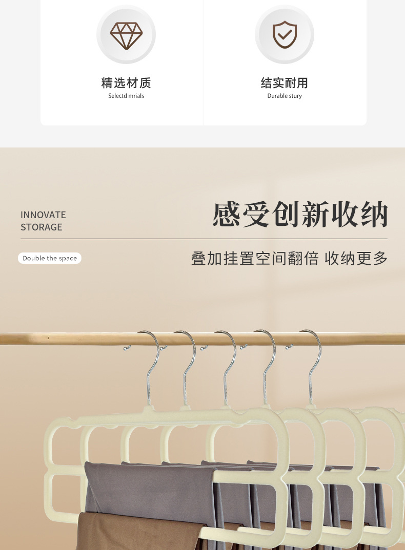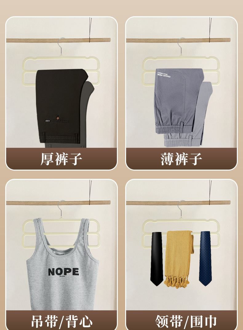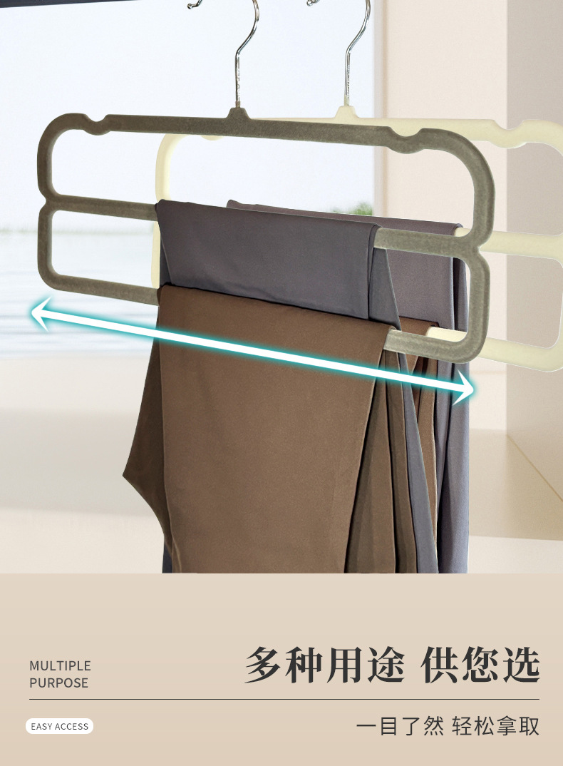 家用成人多层植绒裤架多功能无痕天鹅绒衣橱收纳防滑无痕衣架裤挂