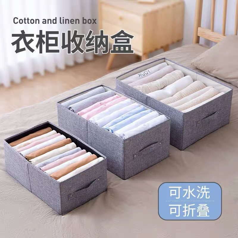 家用裤子衣服收纳盒整理师推荐加厚防棉麻布艺盒子玩具折叠储物箱