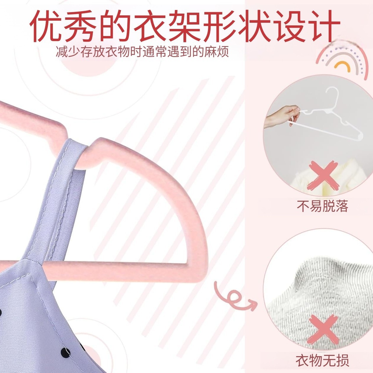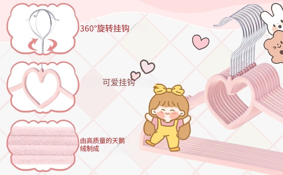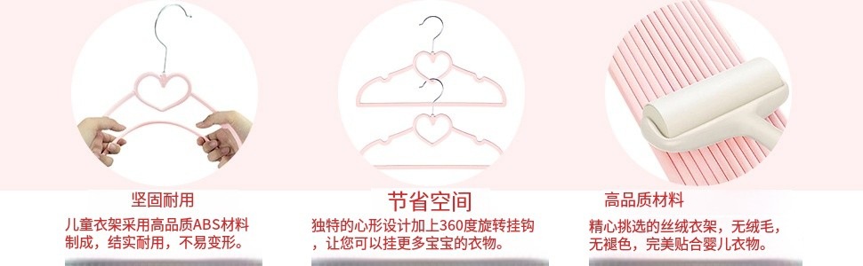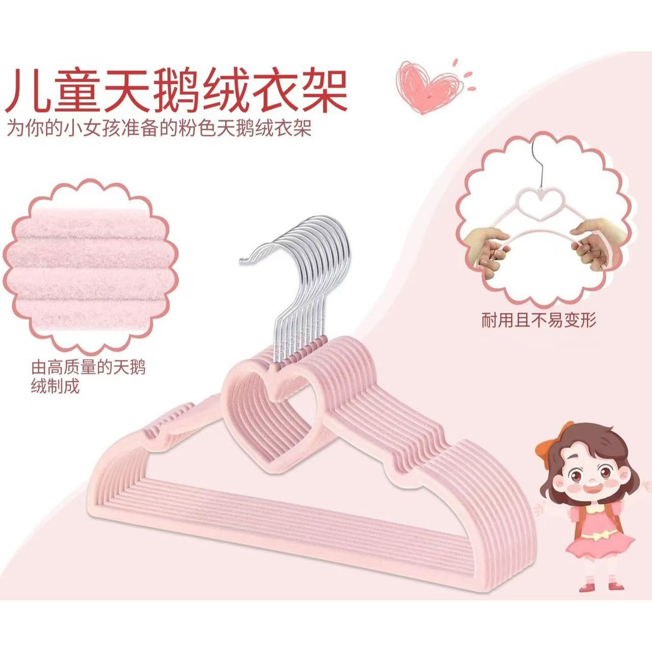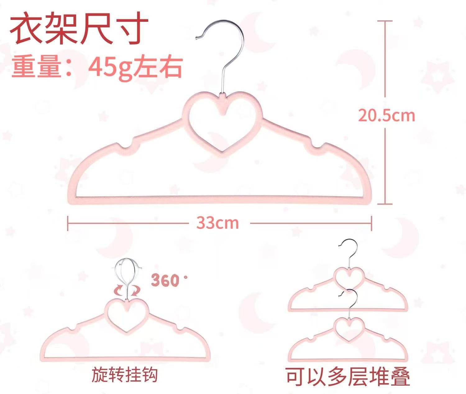 爱心型33CM多功能儿童防滑无痕植绒衣架服装店塑料少女心衣撑仳发