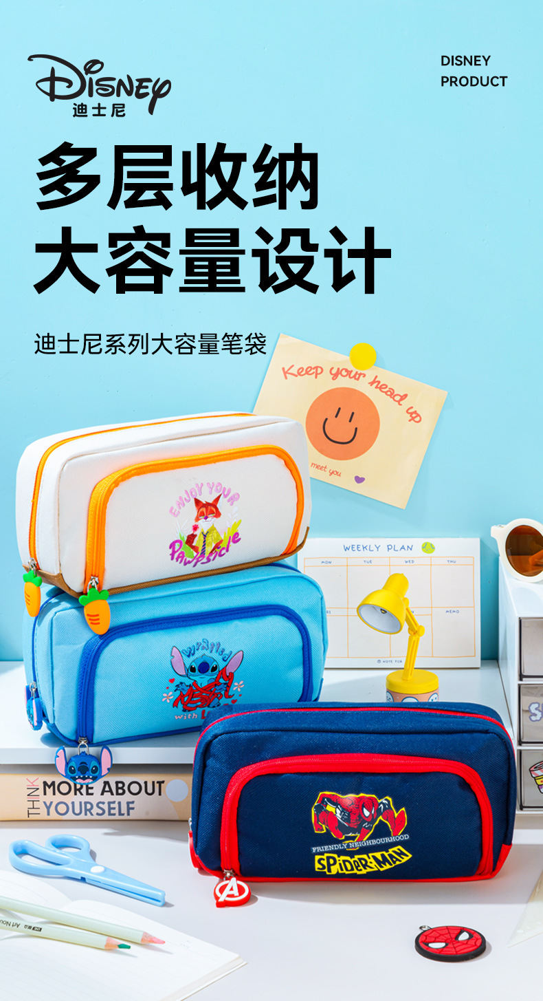 文具收纳袋小学生双层大容量蜘蛛侠笔袋儿童手提文具袋批发