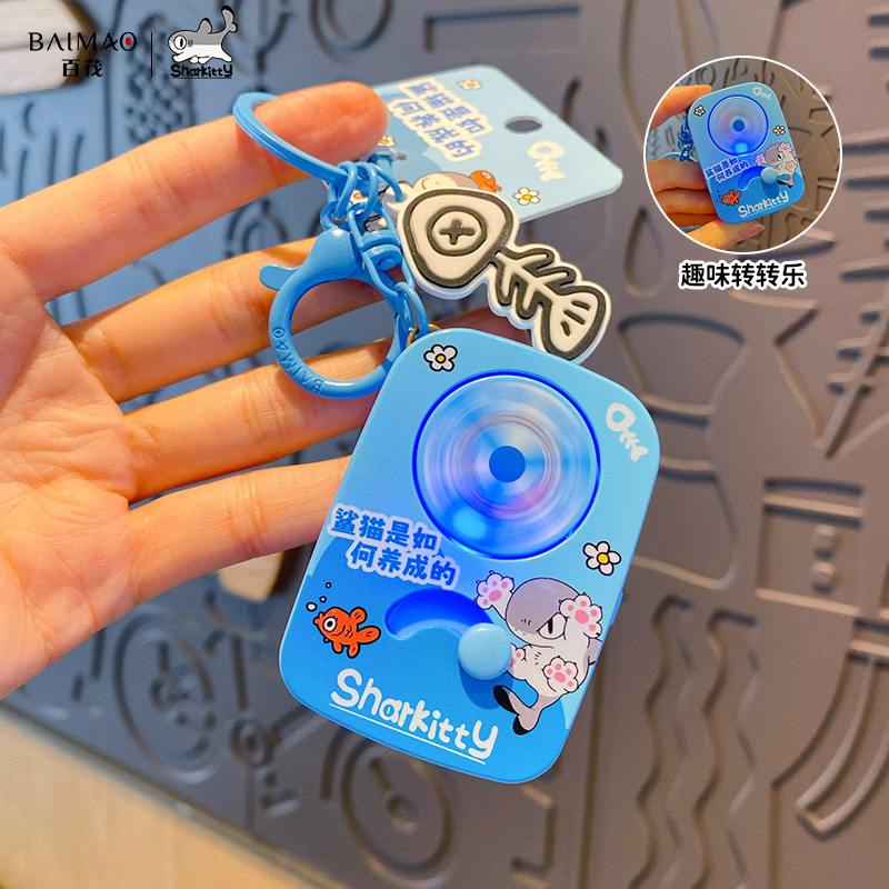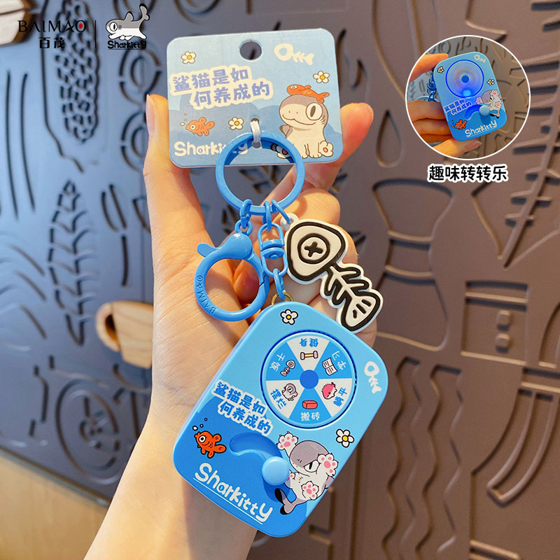 正版卡通鲨猫发光转转乐玩具钥匙扣趣味消消乐儿童玩具多功能包挂