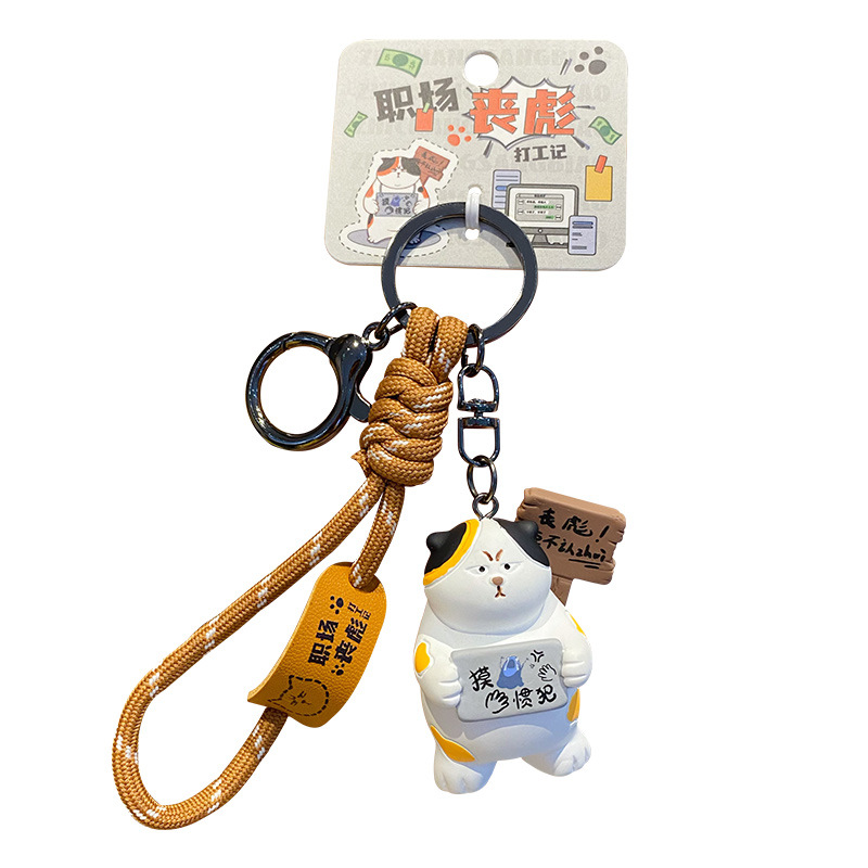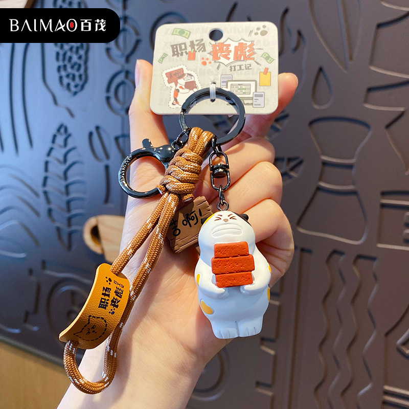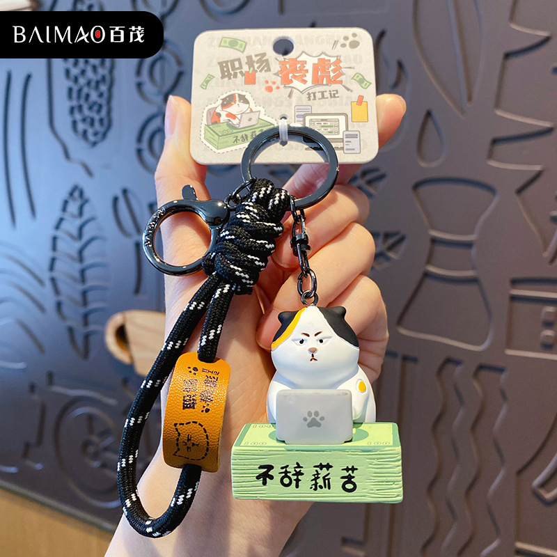 百茂原创职场丧彪打工系列钥匙扣创意树脂搞怪摸鱼猫钥匙链包挂件