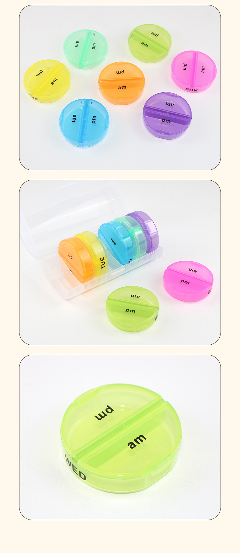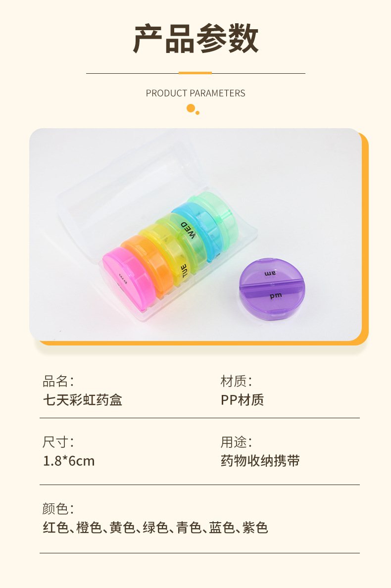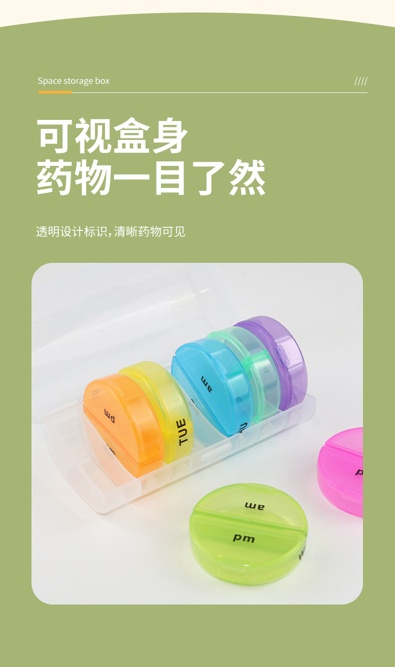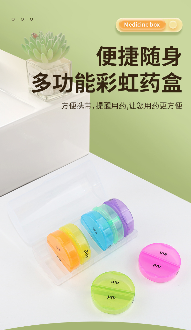 多功能彩色药盒一周七天独立分装药盒胶囊药丸收纳盒便携家用药盒