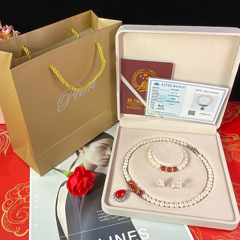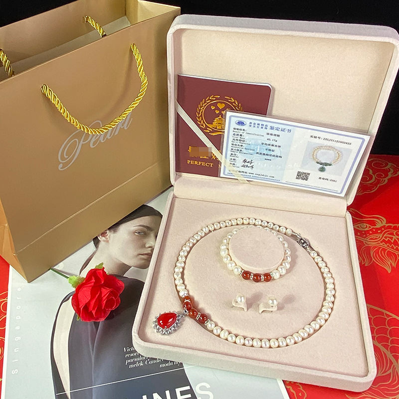 | necklace + bracelet + stud earrings + certificate + mom certificate + box + handbag(项链+手链+耳钉+证书+妈妈证+盒子+手提袋) | USD $17.9 | 49960 piece available |