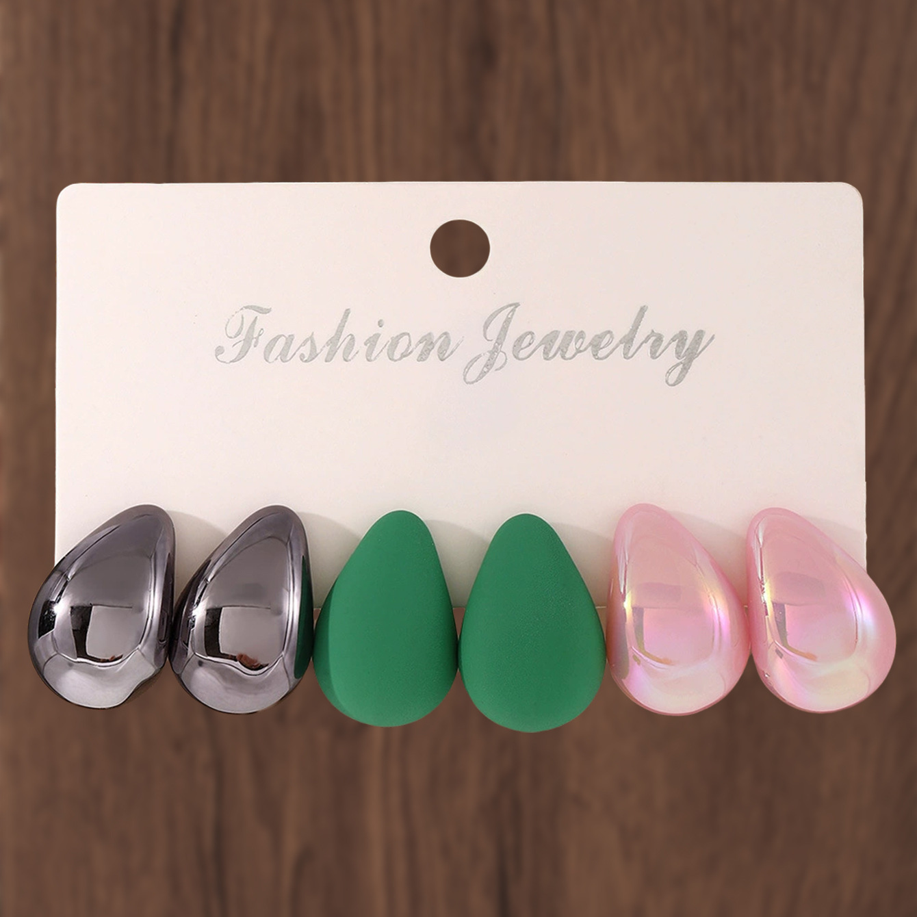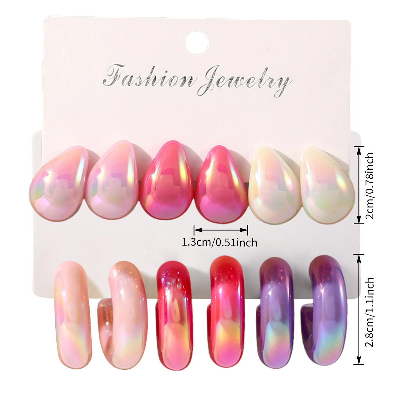 跨境新款春夏简约C形高级感树脂彩色水滴耳饰轻奢空心耳环女套装
