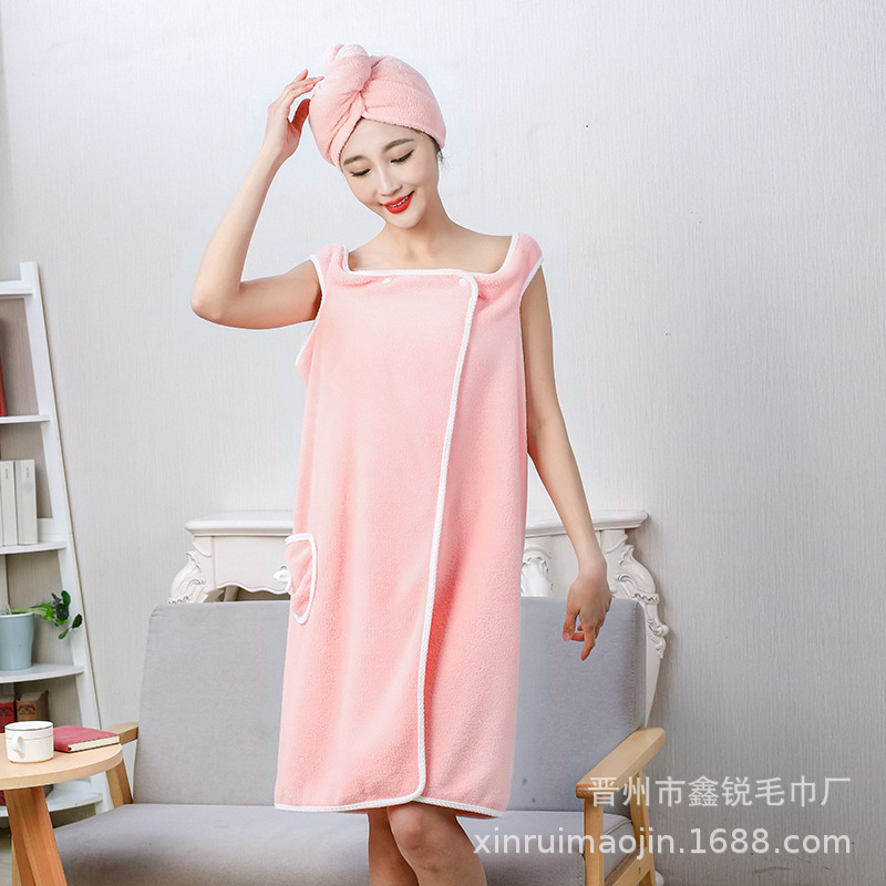 加厚珊瑚绒吊带浴裙女成人家用洗澡柔软吸水浴袍不掉毛可穿浴巾