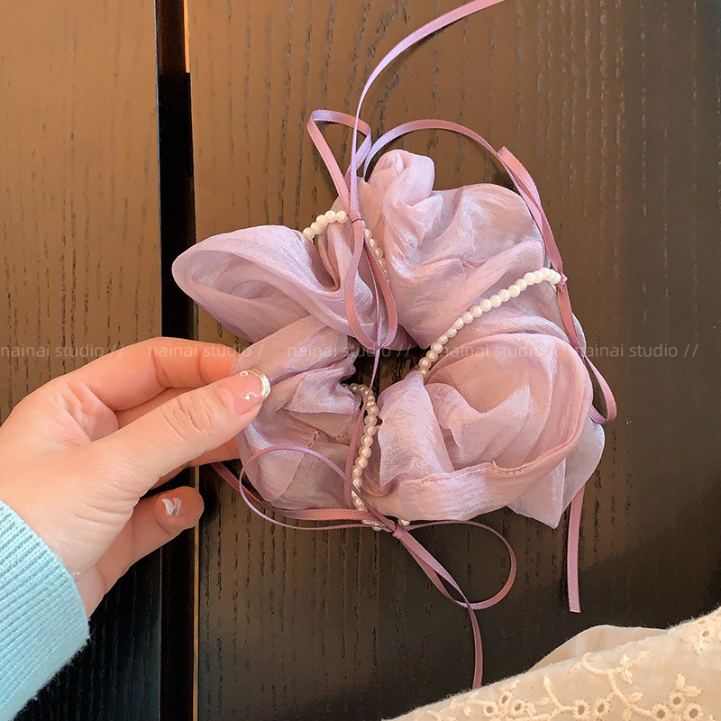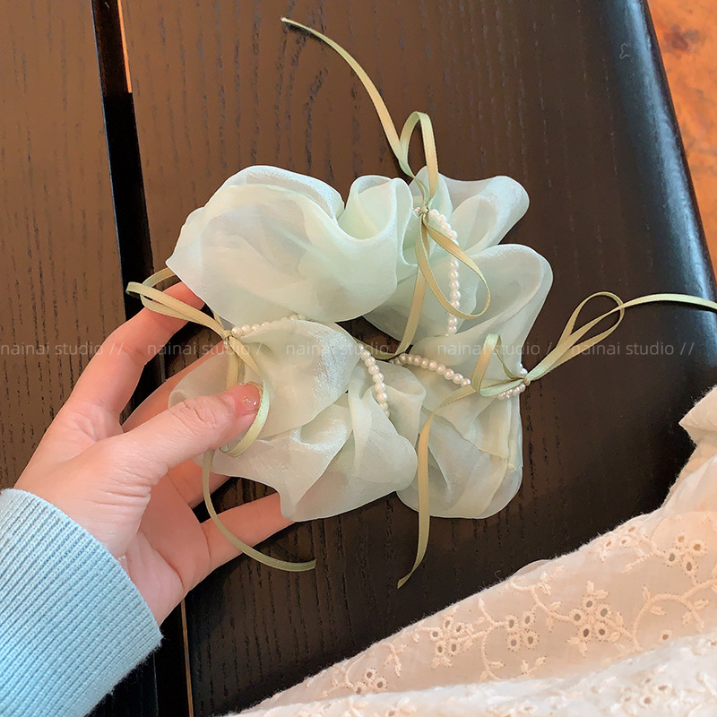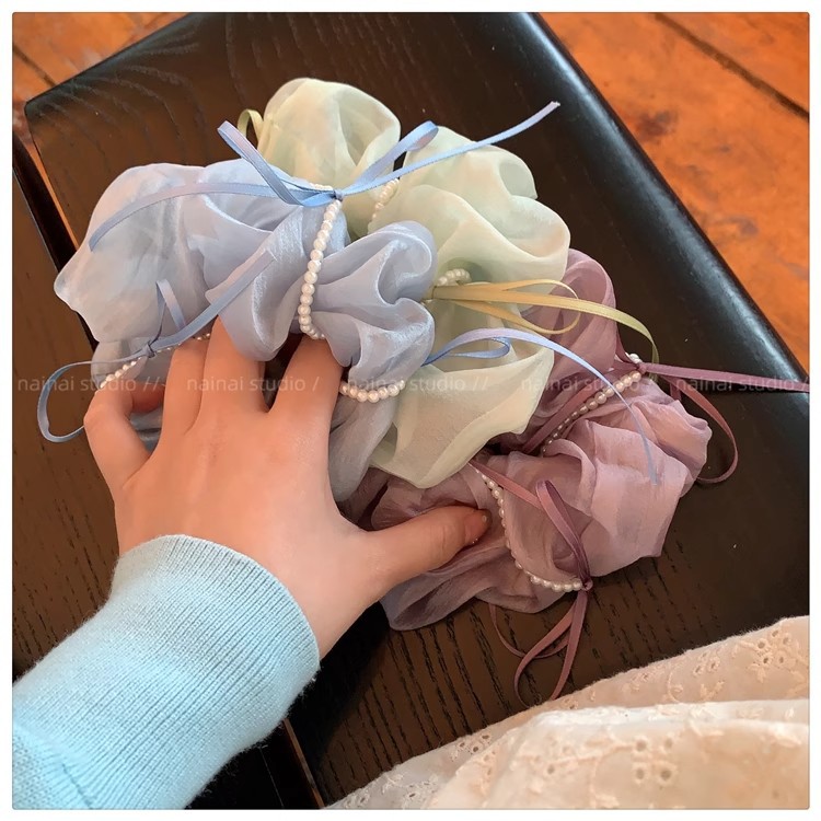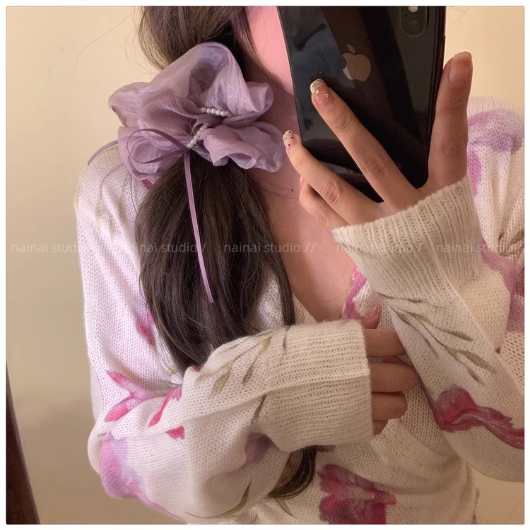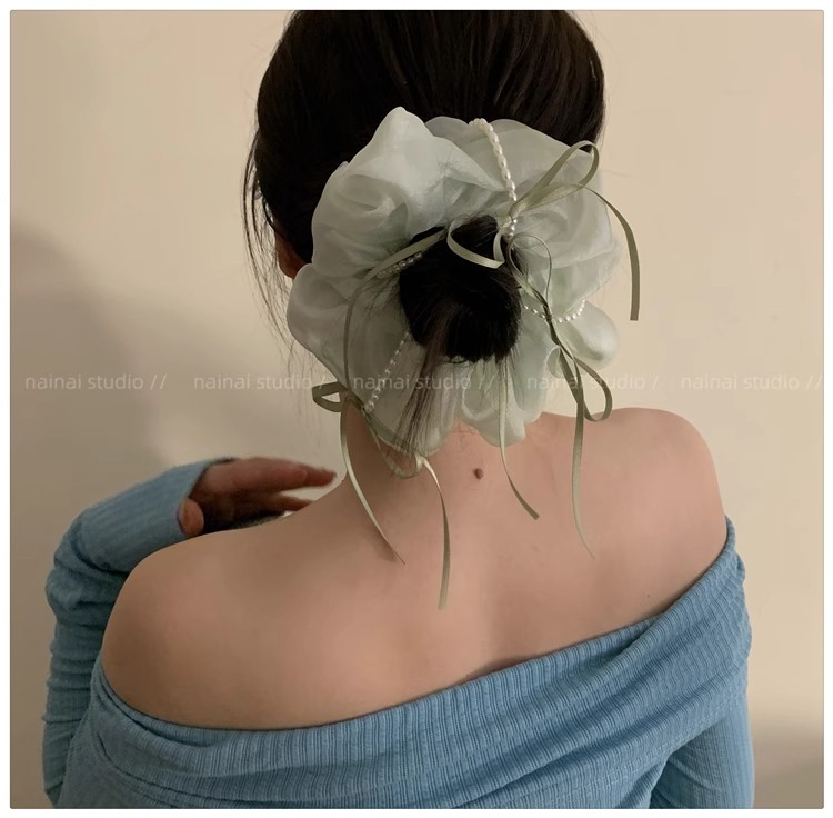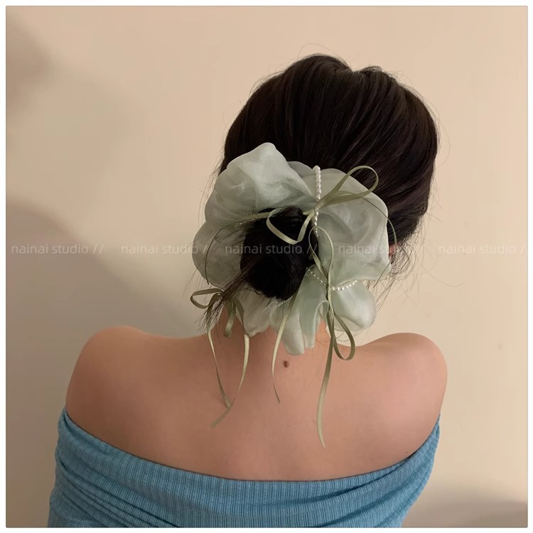 芭蕾风大肠发圈~ins韩系蝴蝶结珍珠发绳丸子头马尾高级感头绳发饰