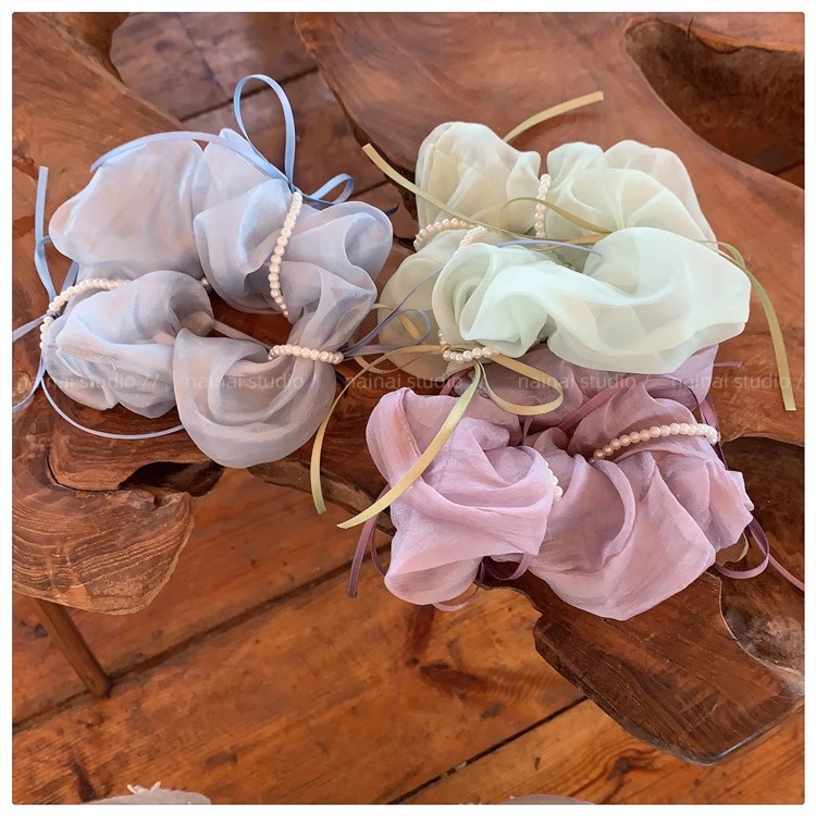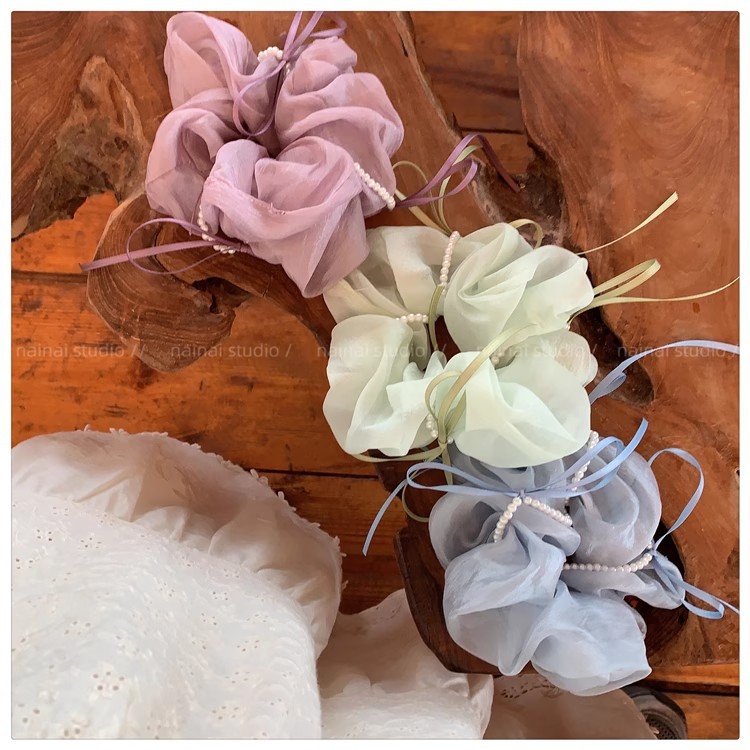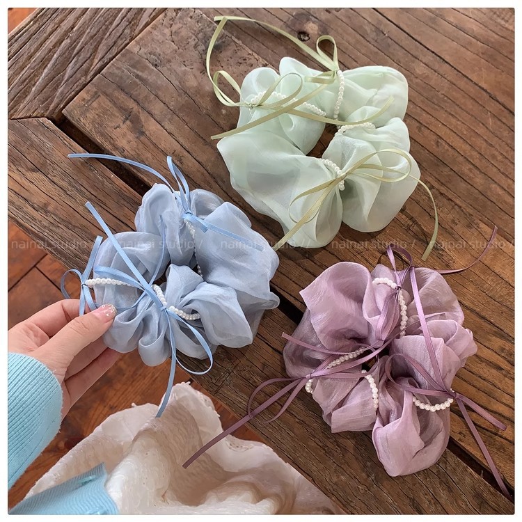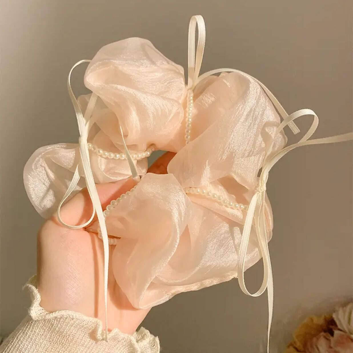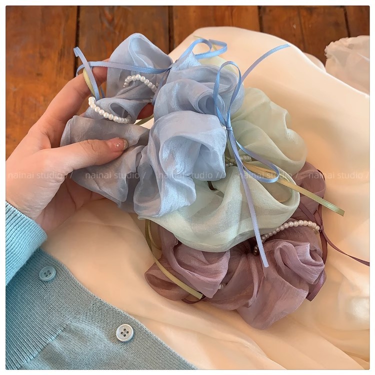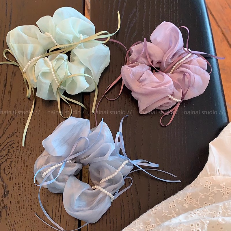 芭蕾风大肠发圈~ins韩系蝴蝶结珍珠发绳丸子头马尾高级感头绳发饰