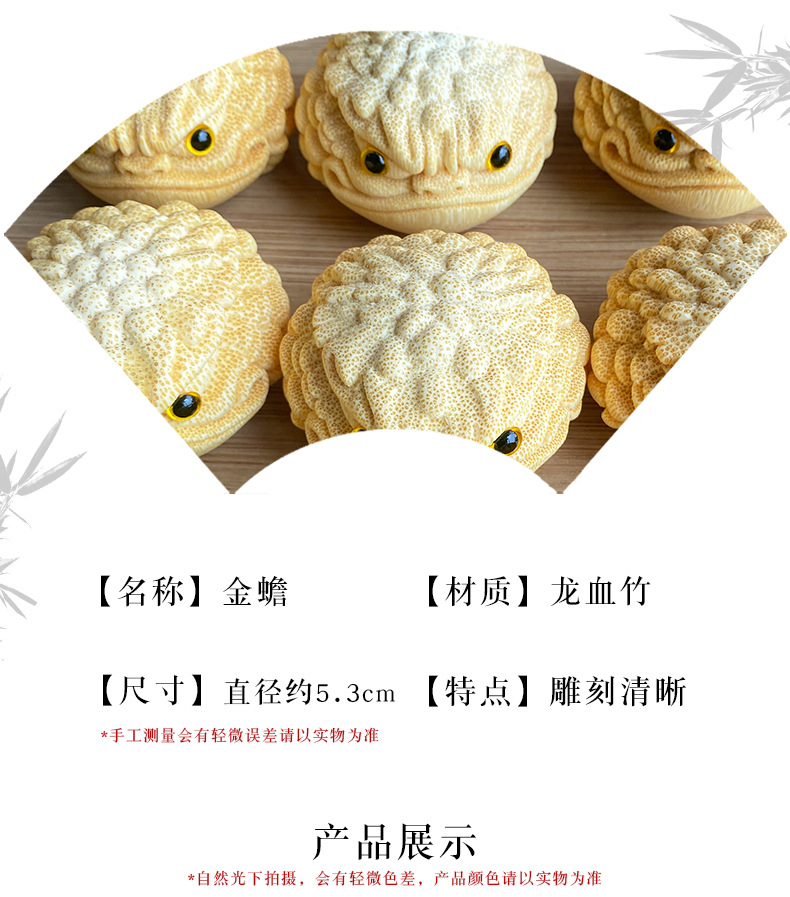 [玉节升]竹雕金蟾手把件龙血竹手把件三足金蟾男女款竹制手把件
