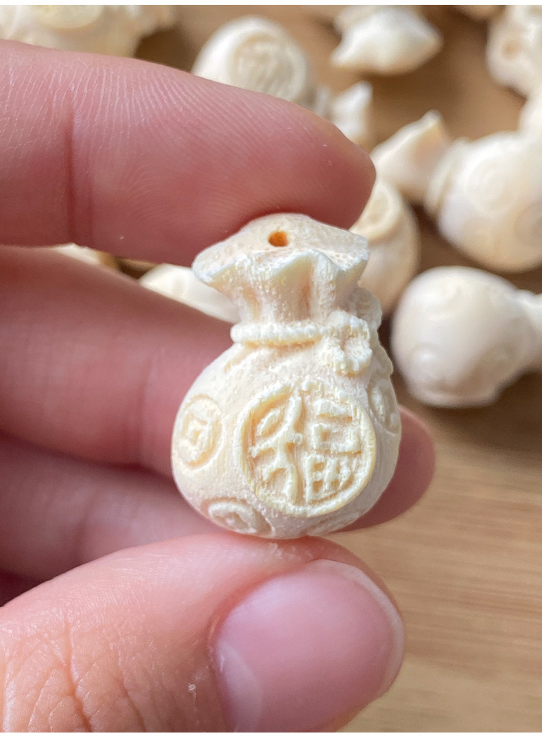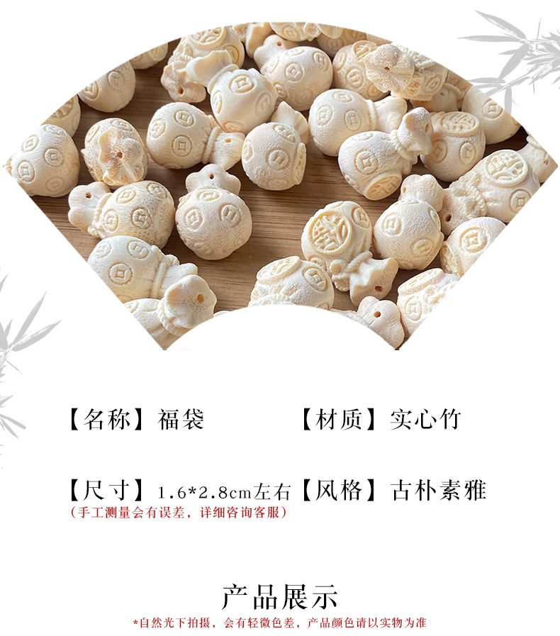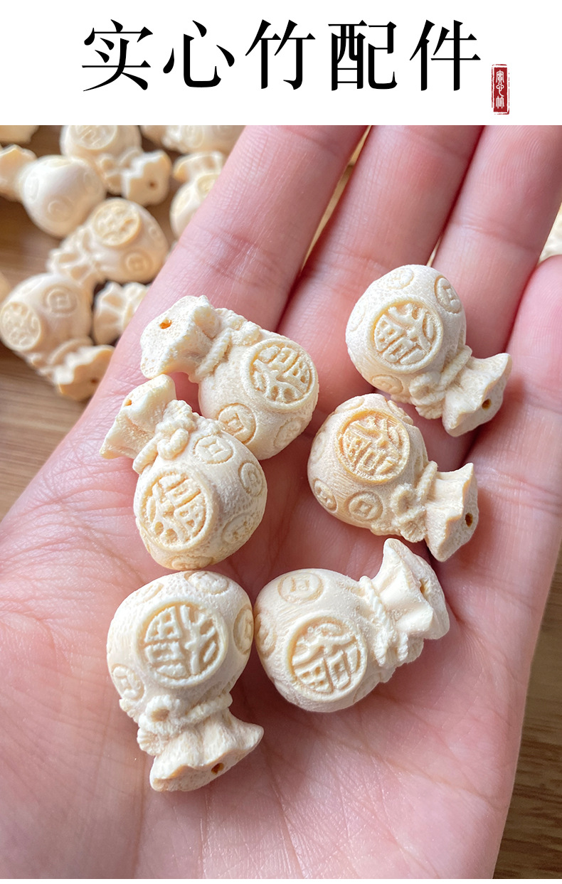 [玉节升]雕刻竹制小配件竹雕文玩手把件配件立雕小福袋配饰