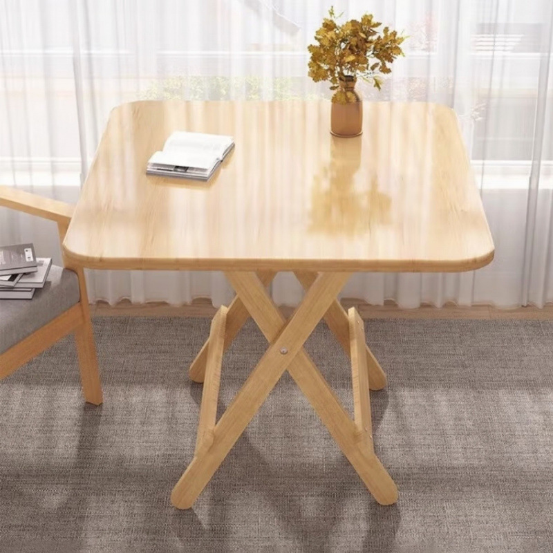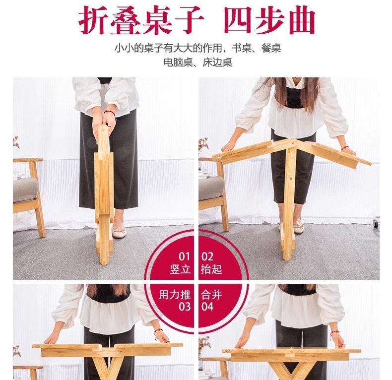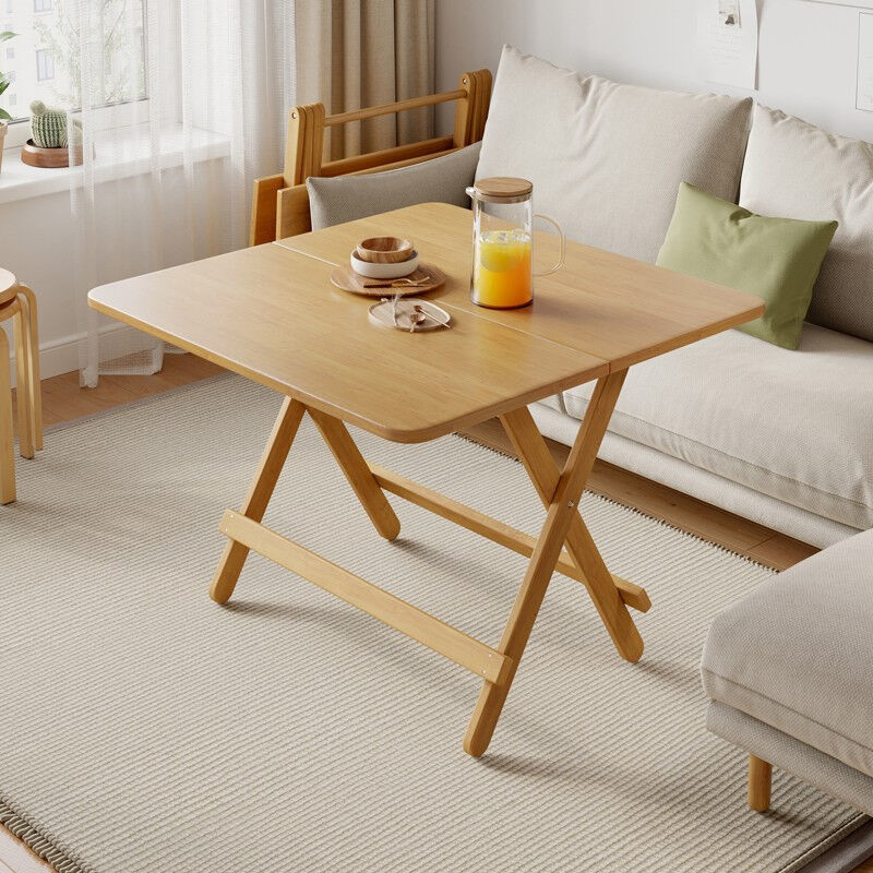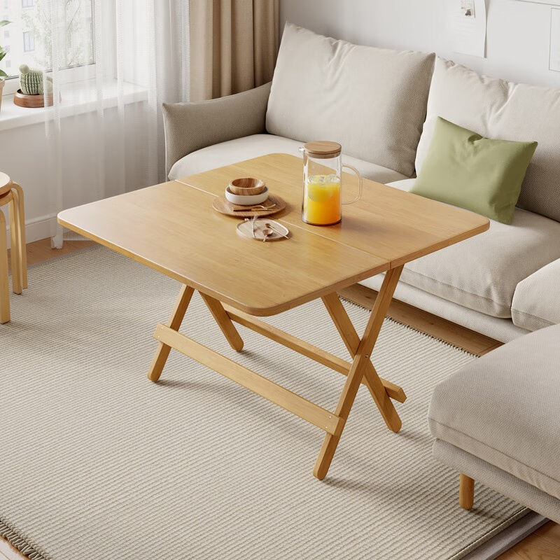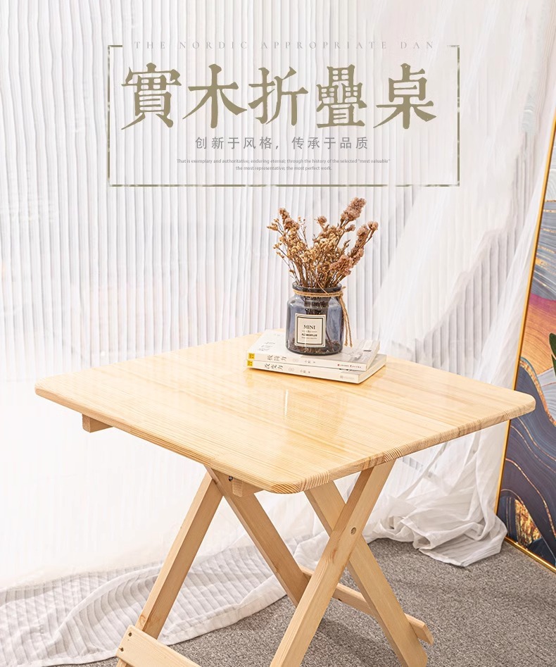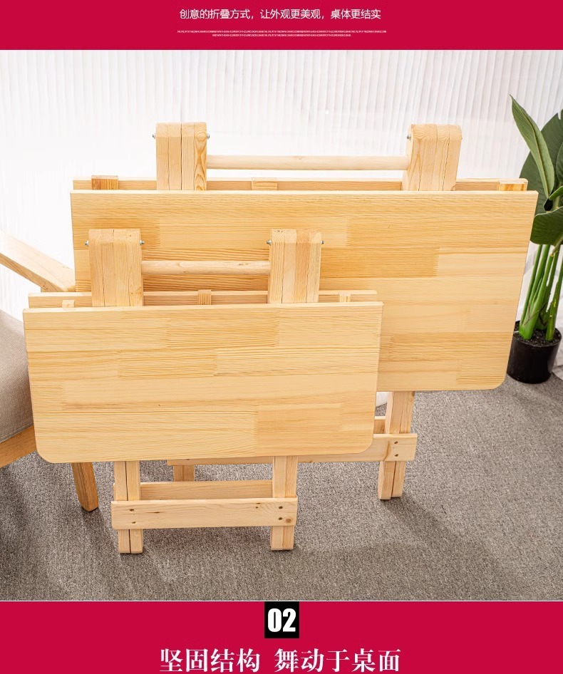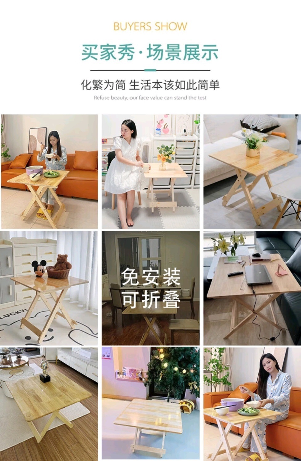 实木可折叠桌家用客厅简易便携式饭桌出租房正方形小户型吃饭桌子