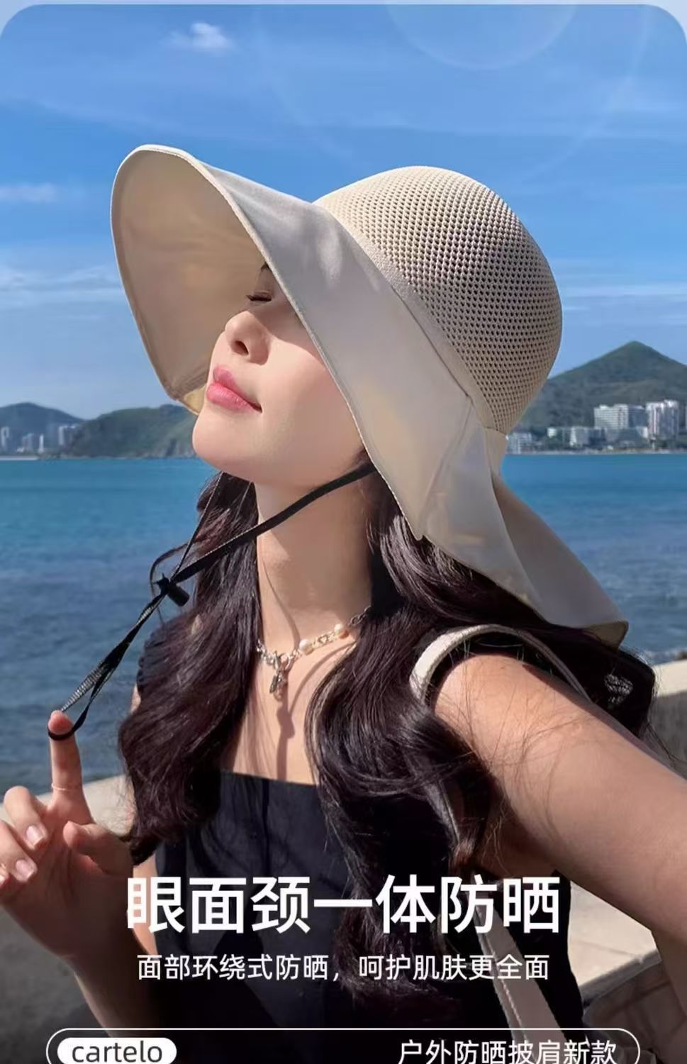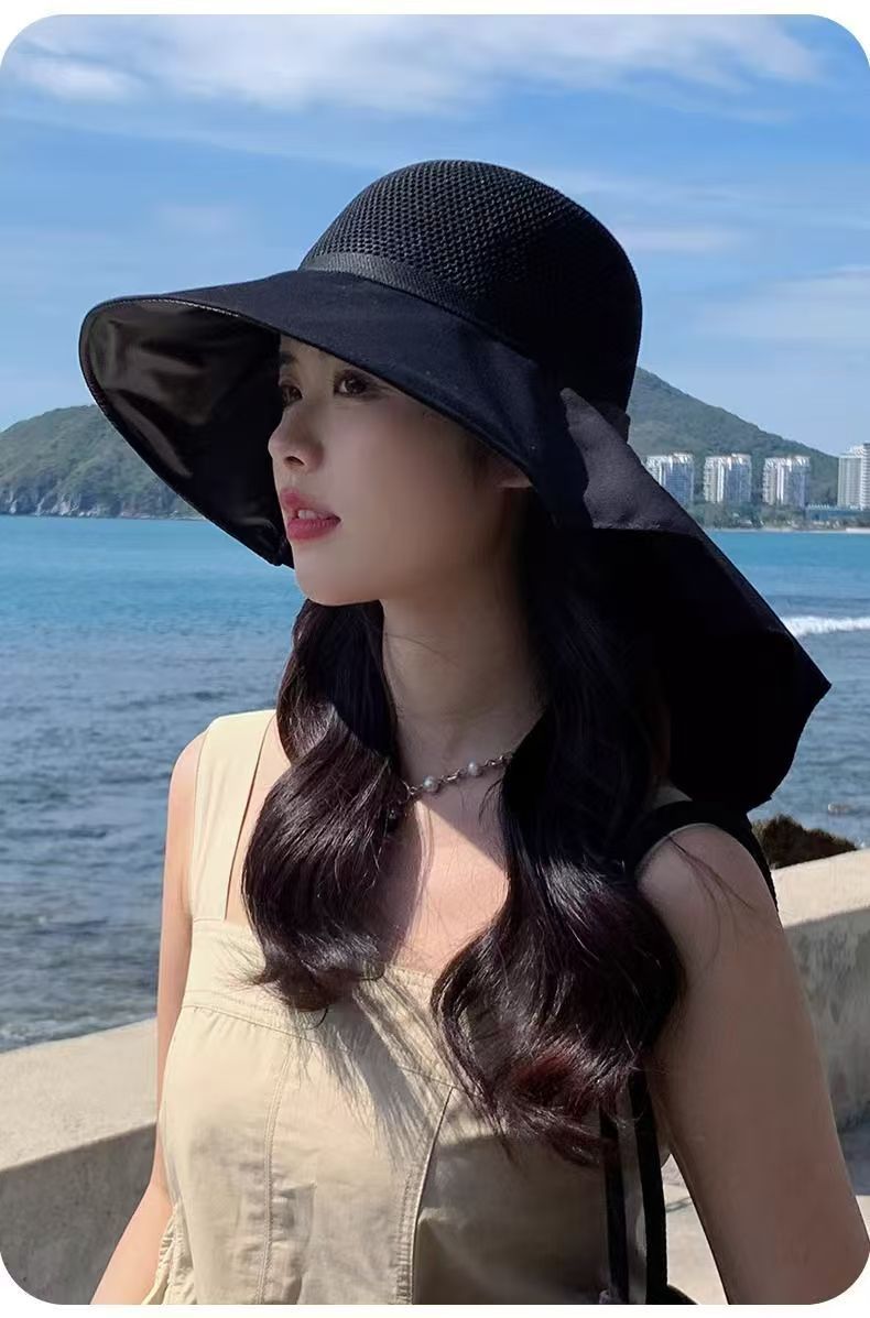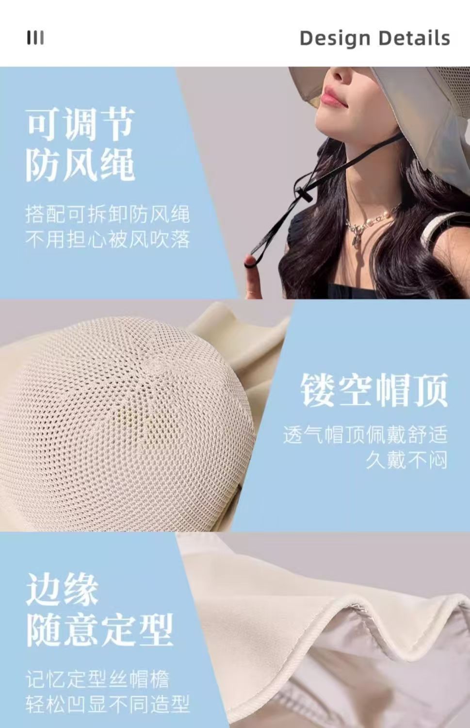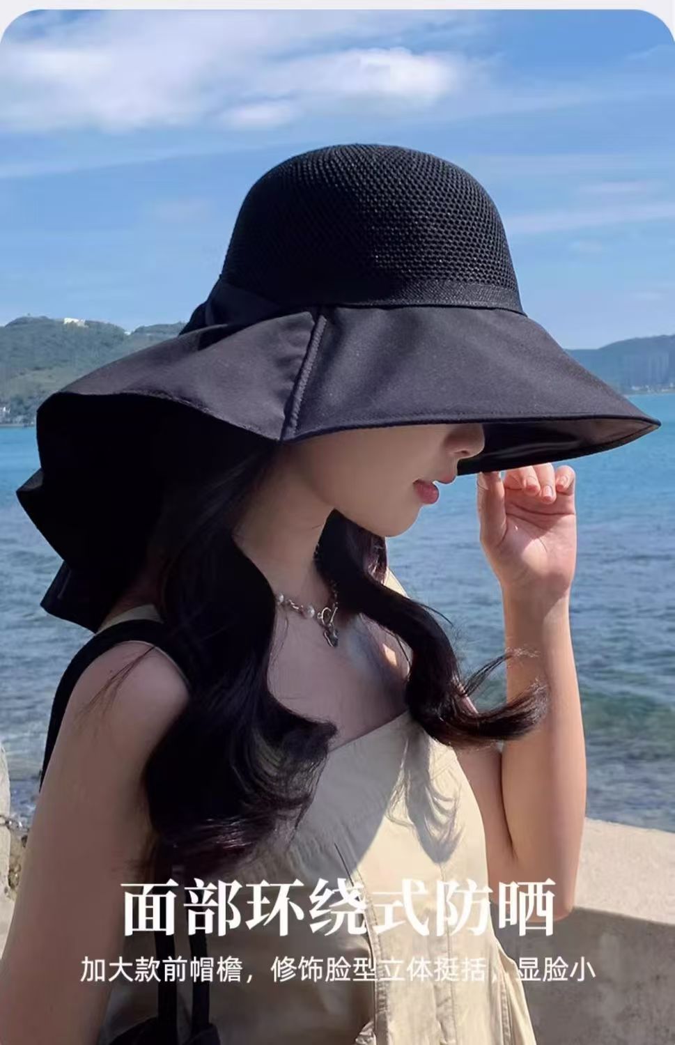 环绕式可折叠空顶防晒帽女户外大帽檐黑胶防紫外线夏季太阳遮阳帽