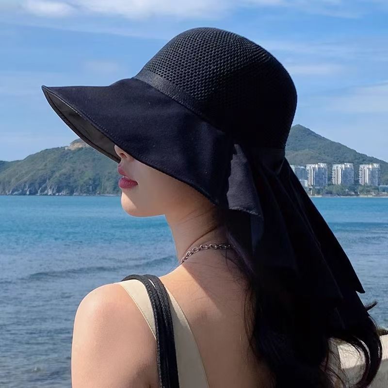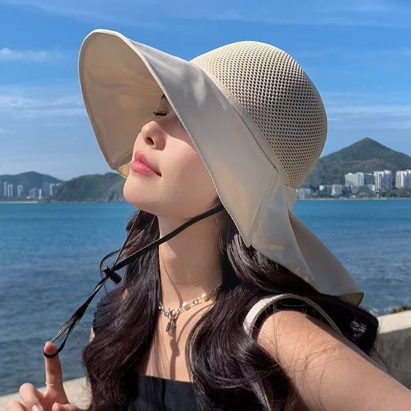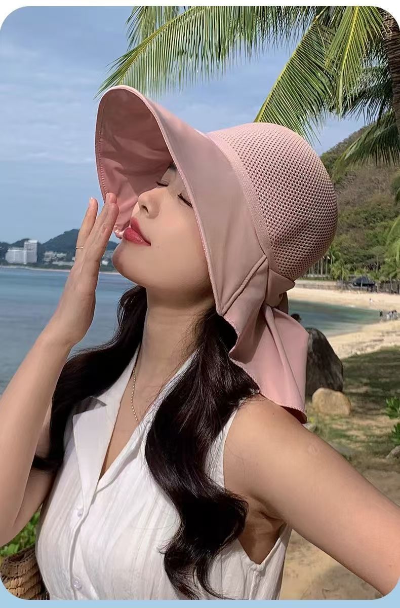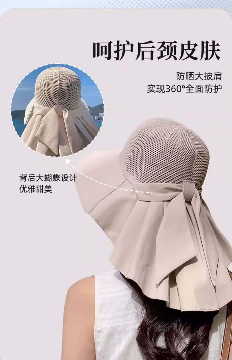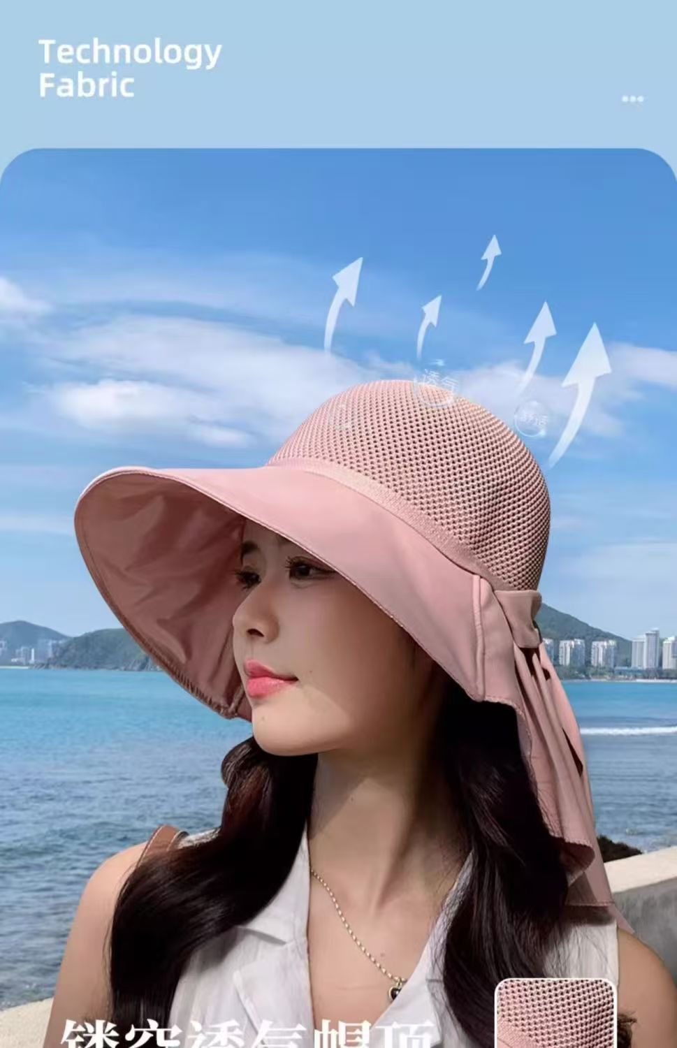 环绕式可折叠空顶防晒帽女户外大帽檐黑胶防紫外线夏季太阳遮阳帽
