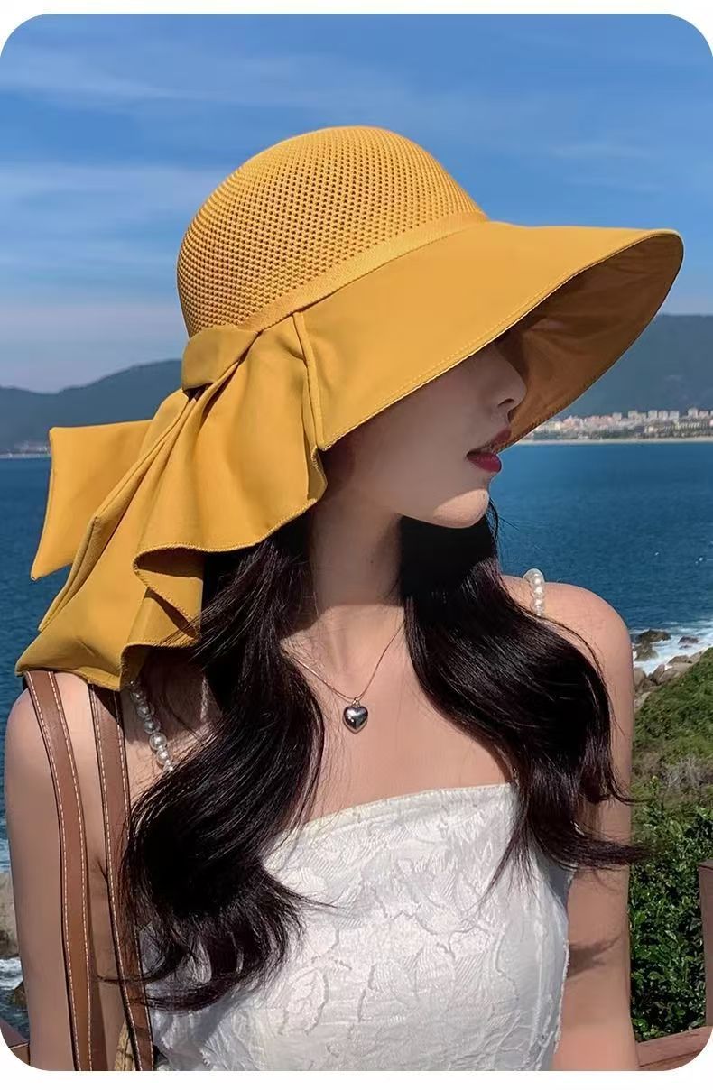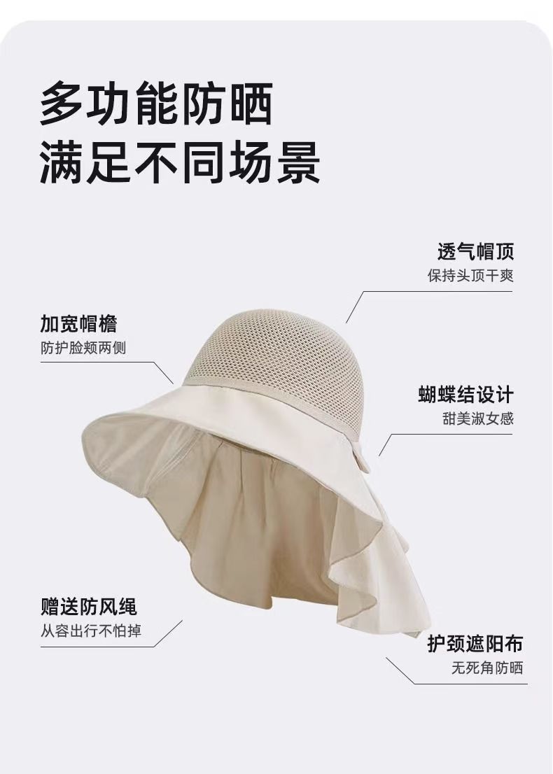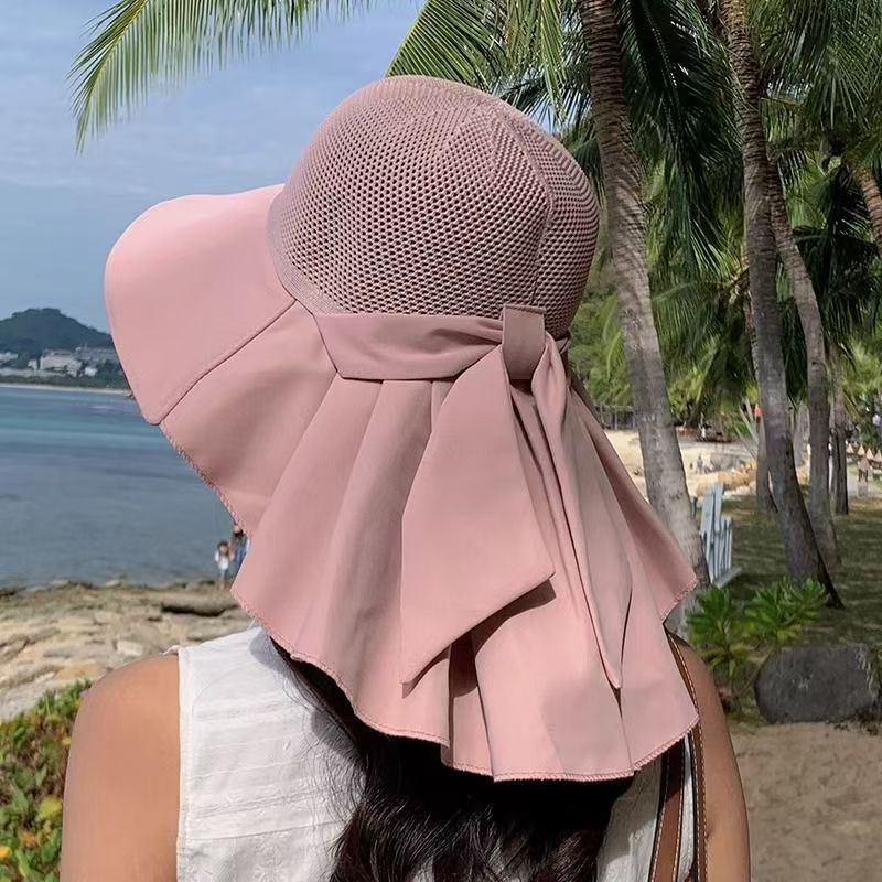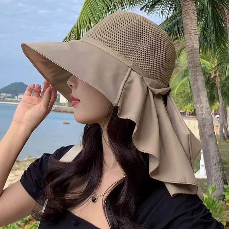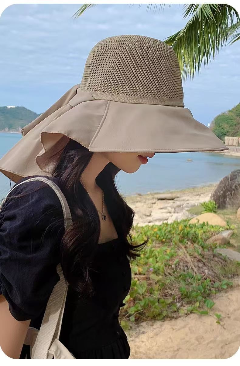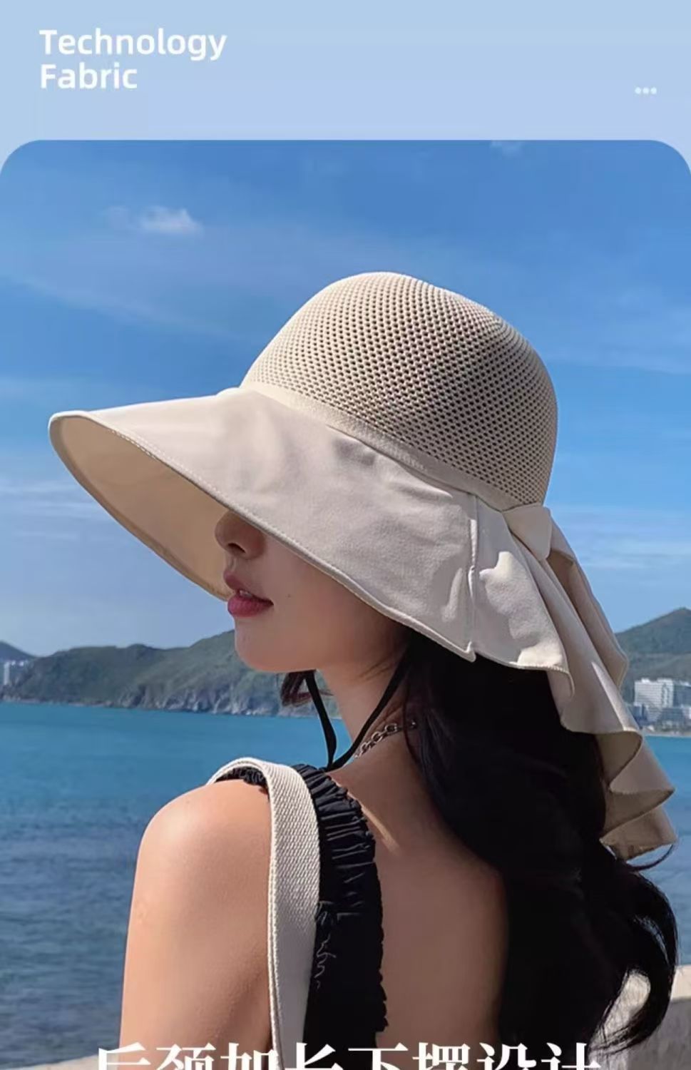 环绕式可折叠空顶防晒帽女户外大帽檐黑胶防紫外线夏季太阳遮阳帽