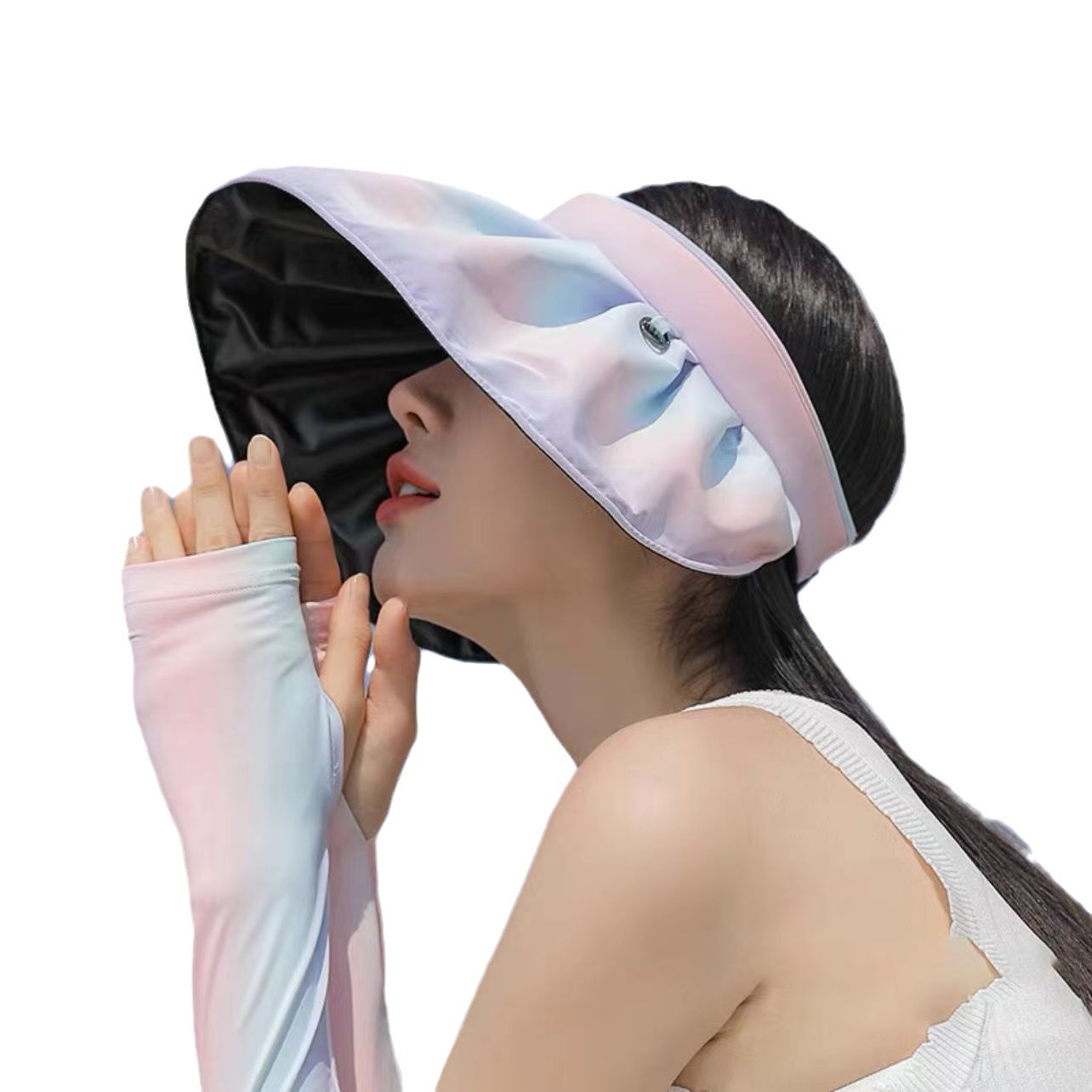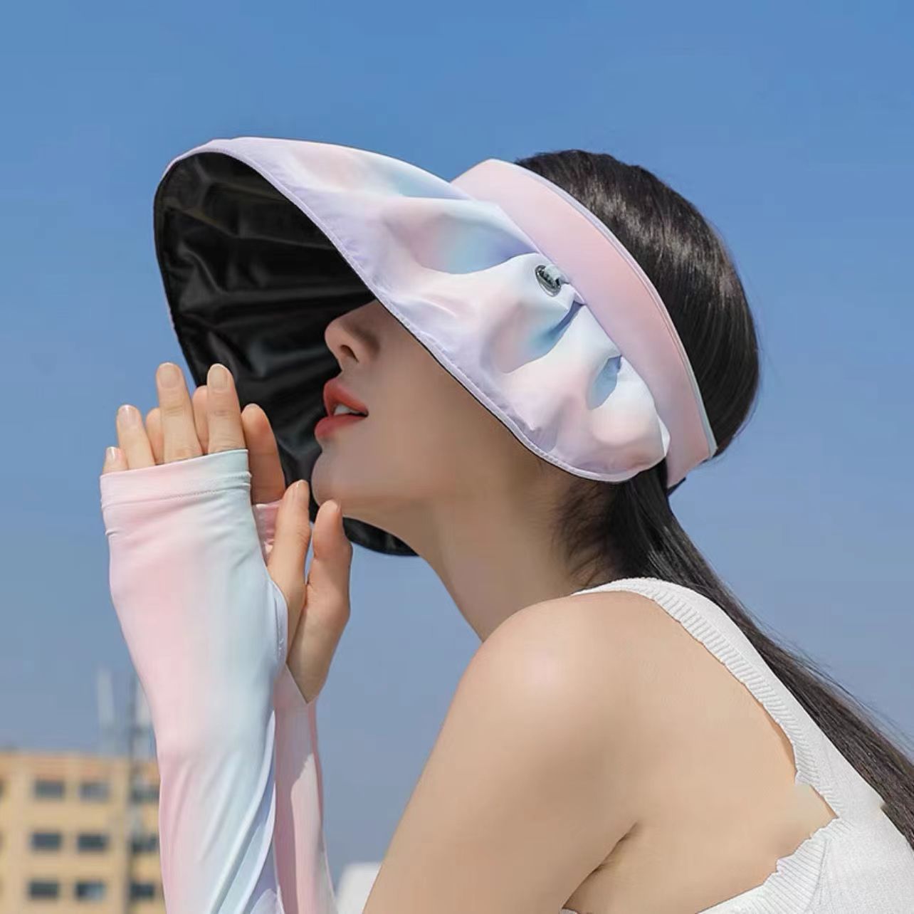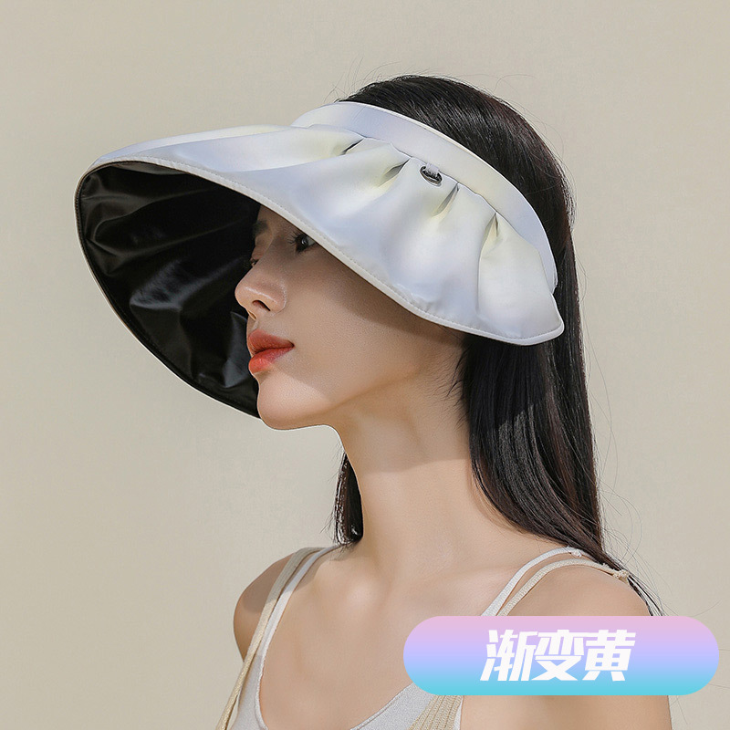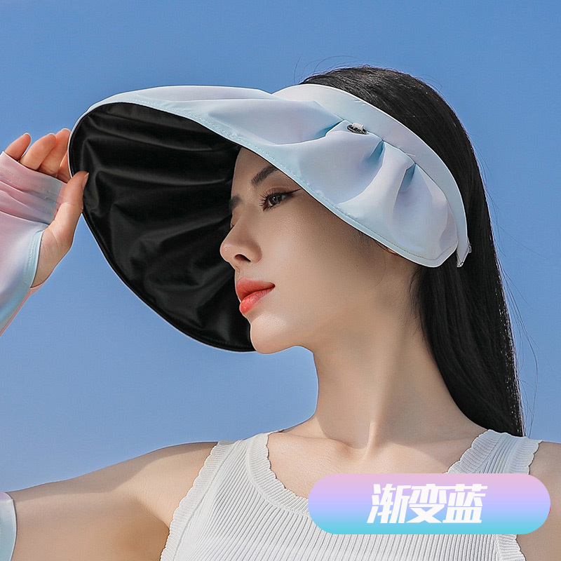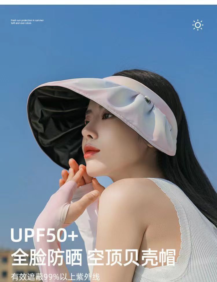 夏季贝壳帽彩虹渐变色系空顶太阳帽户外便携可卷发箍遮阳帽女