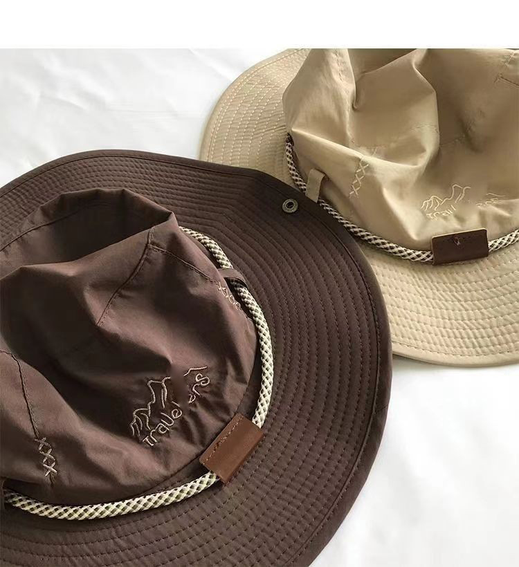 日系潮牌藤条渔夫帽子男女夏季透气防晒户外露营登山钓鱼帽户外