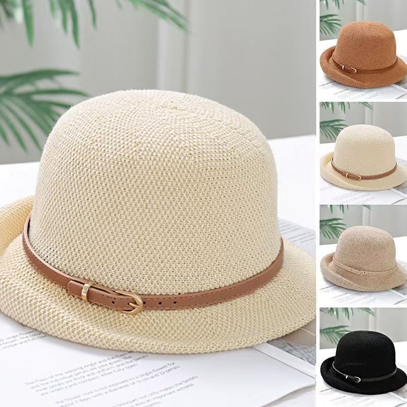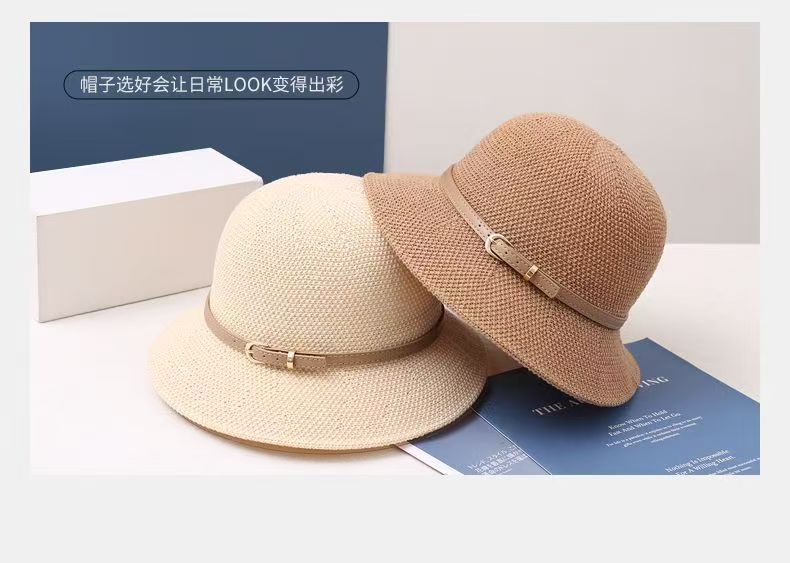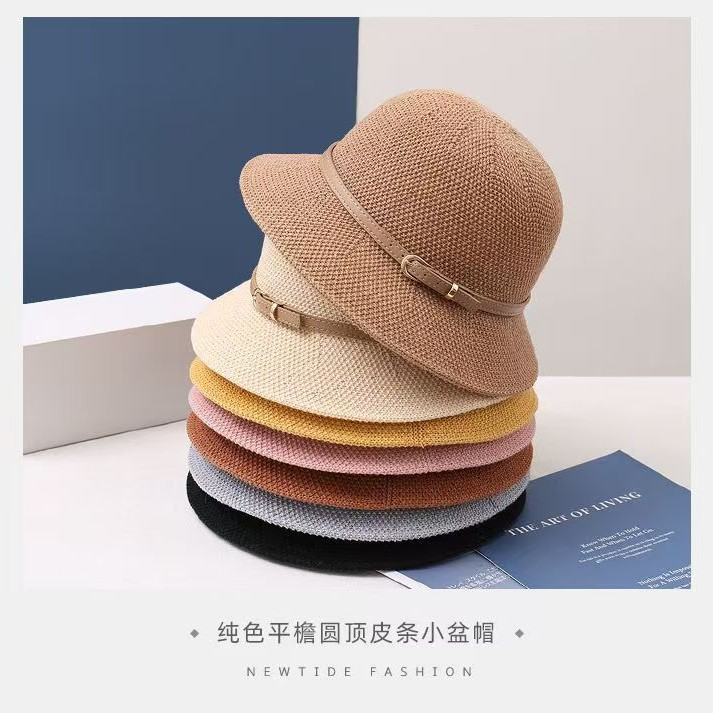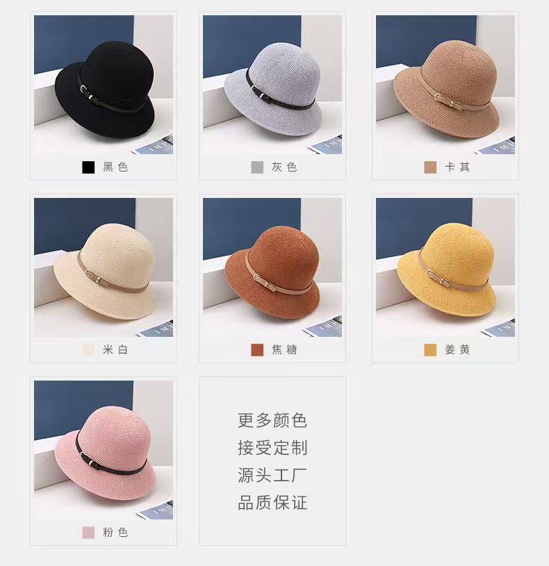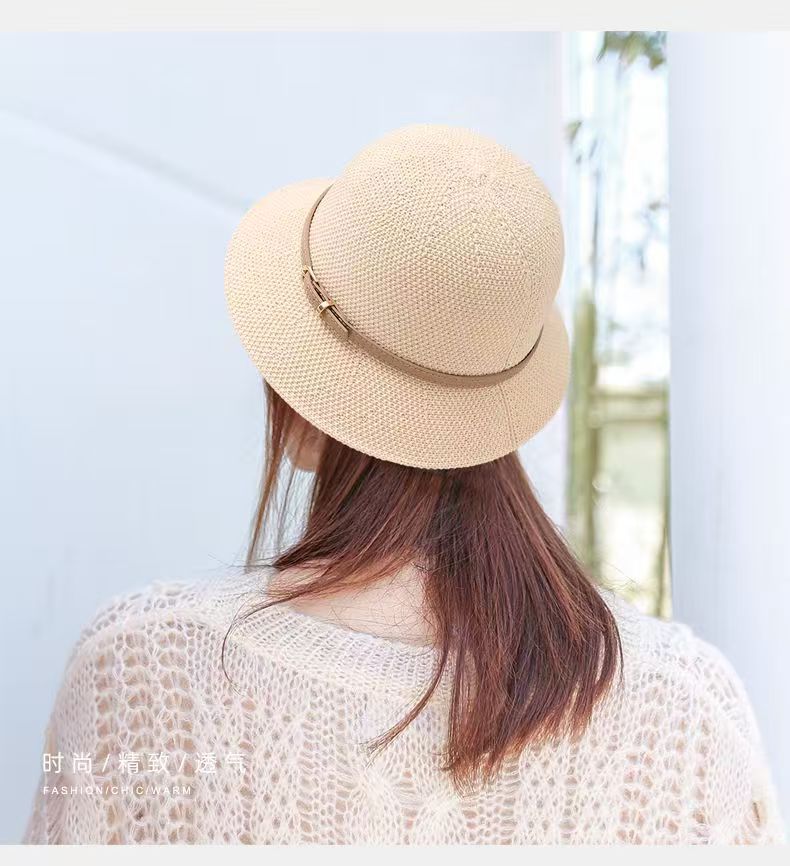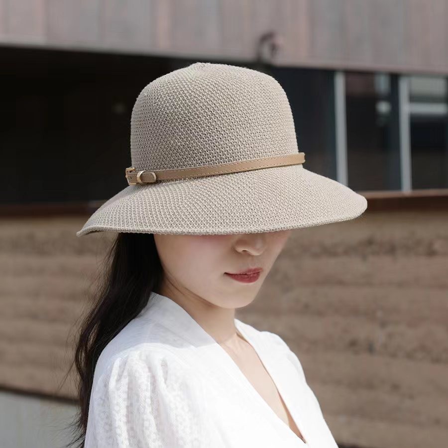 新款春夏遮阳防晒太阳帽女士时尚礼帽百搭洋气盆帽针织休闲渔夫帽